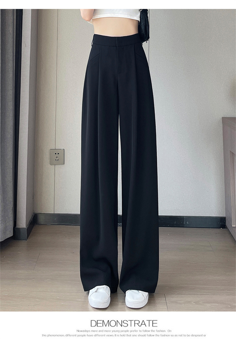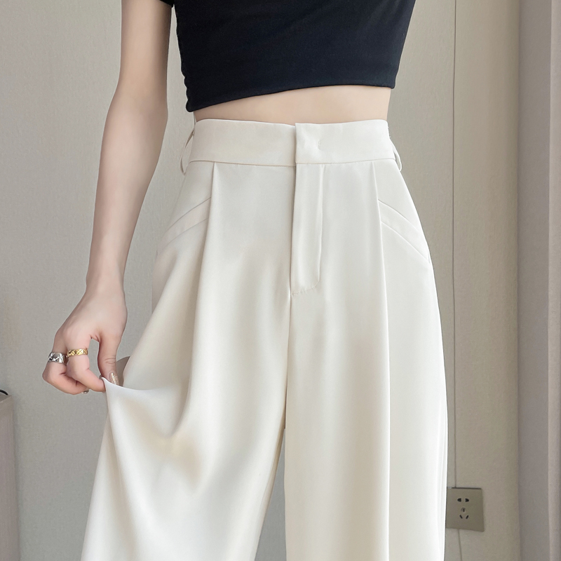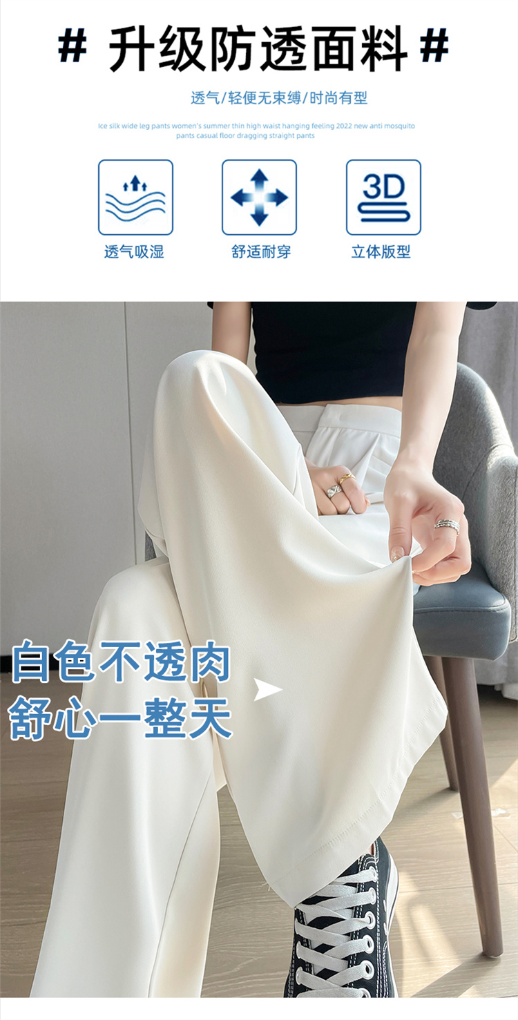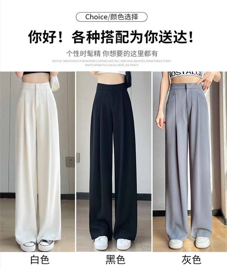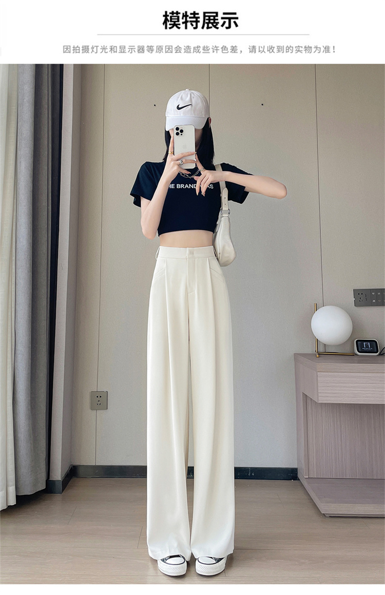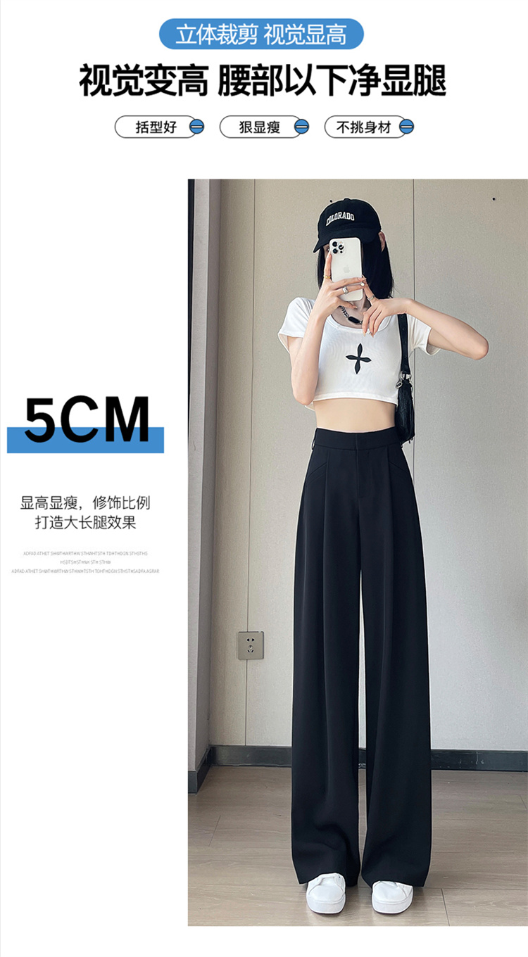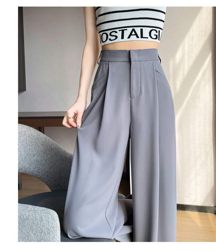 RY70062# 实拍2026夏季新款冰丝西装裤高腰窄版阔腿裤直筒薄款休闲拖地裤女