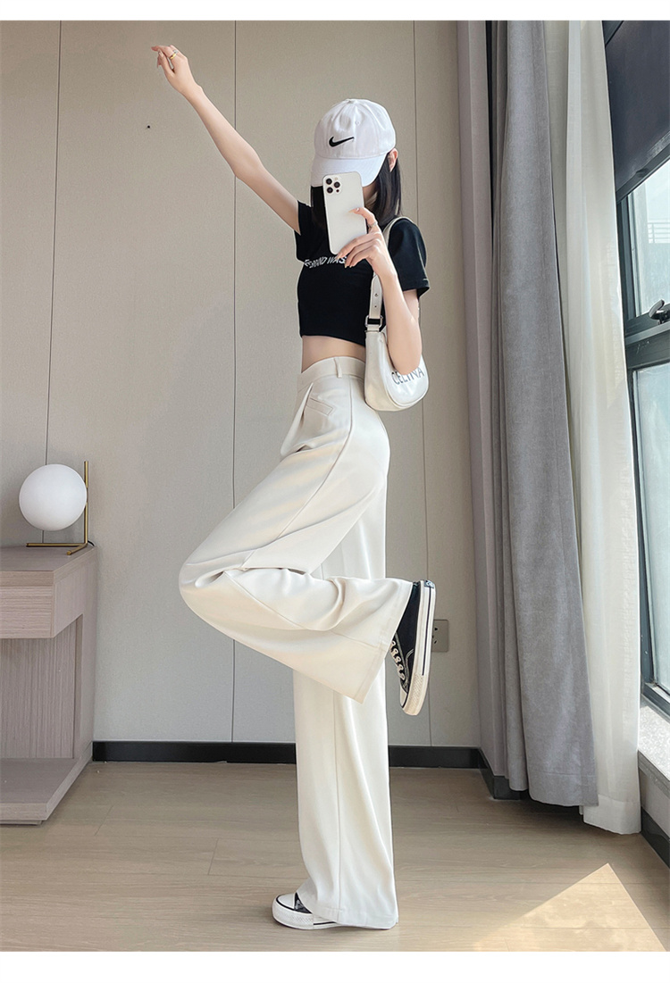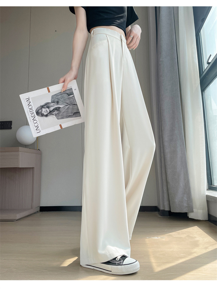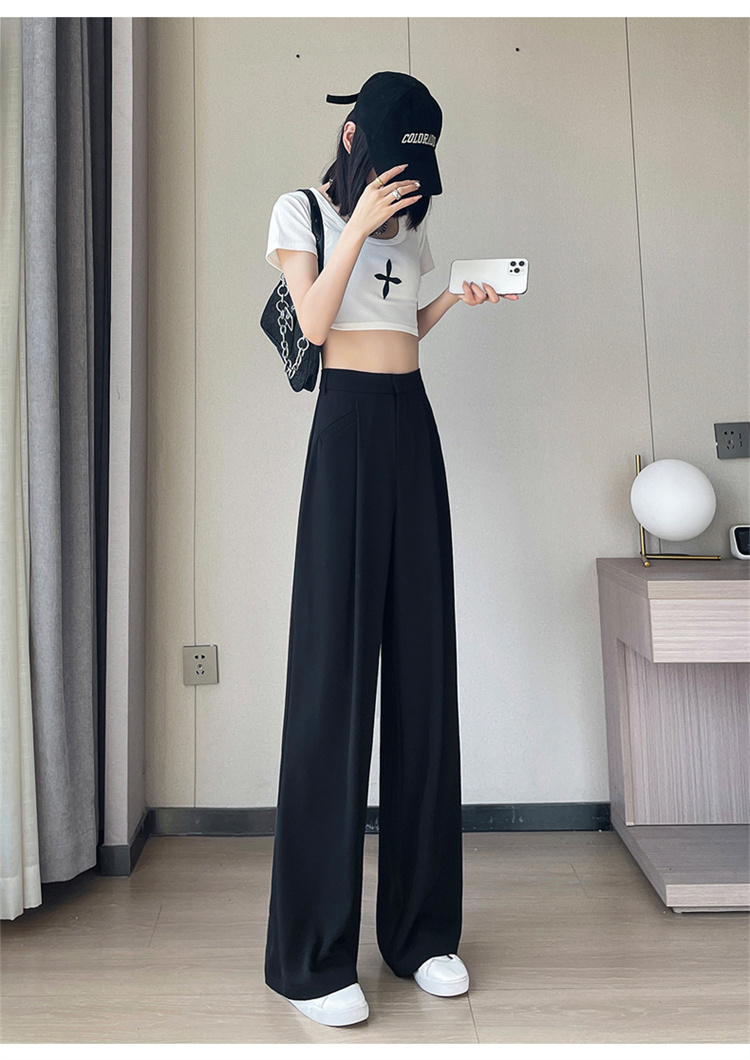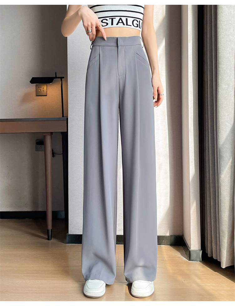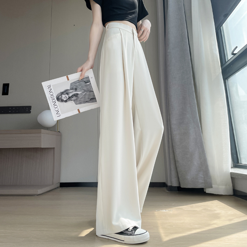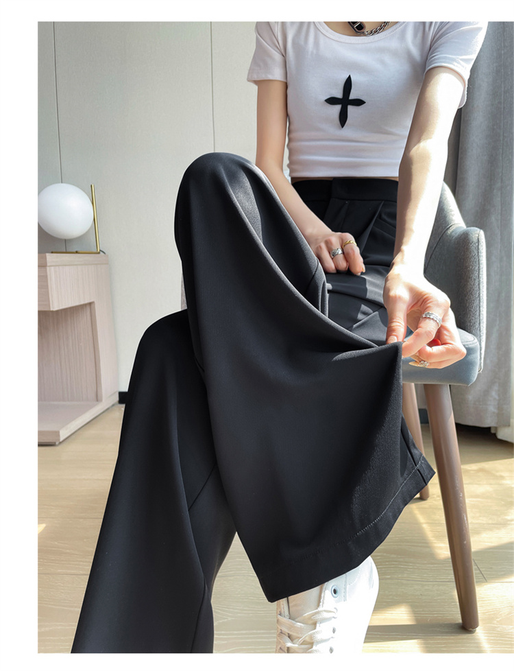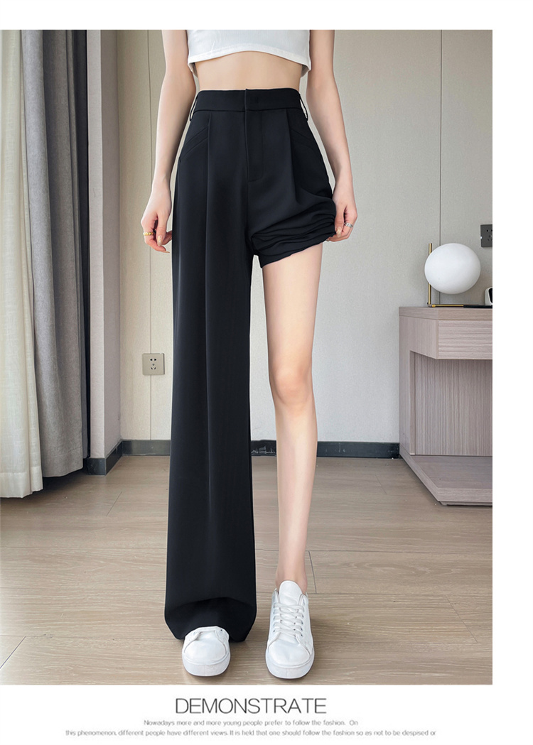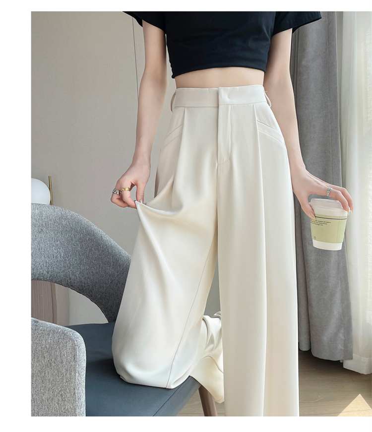 RY70062# 实拍2026夏季新款冰丝西装裤高腰窄版阔腿裤直筒薄款休闲拖地裤女