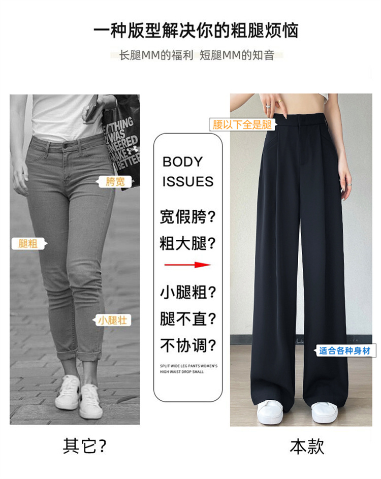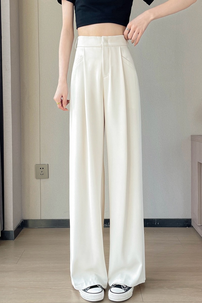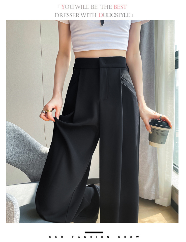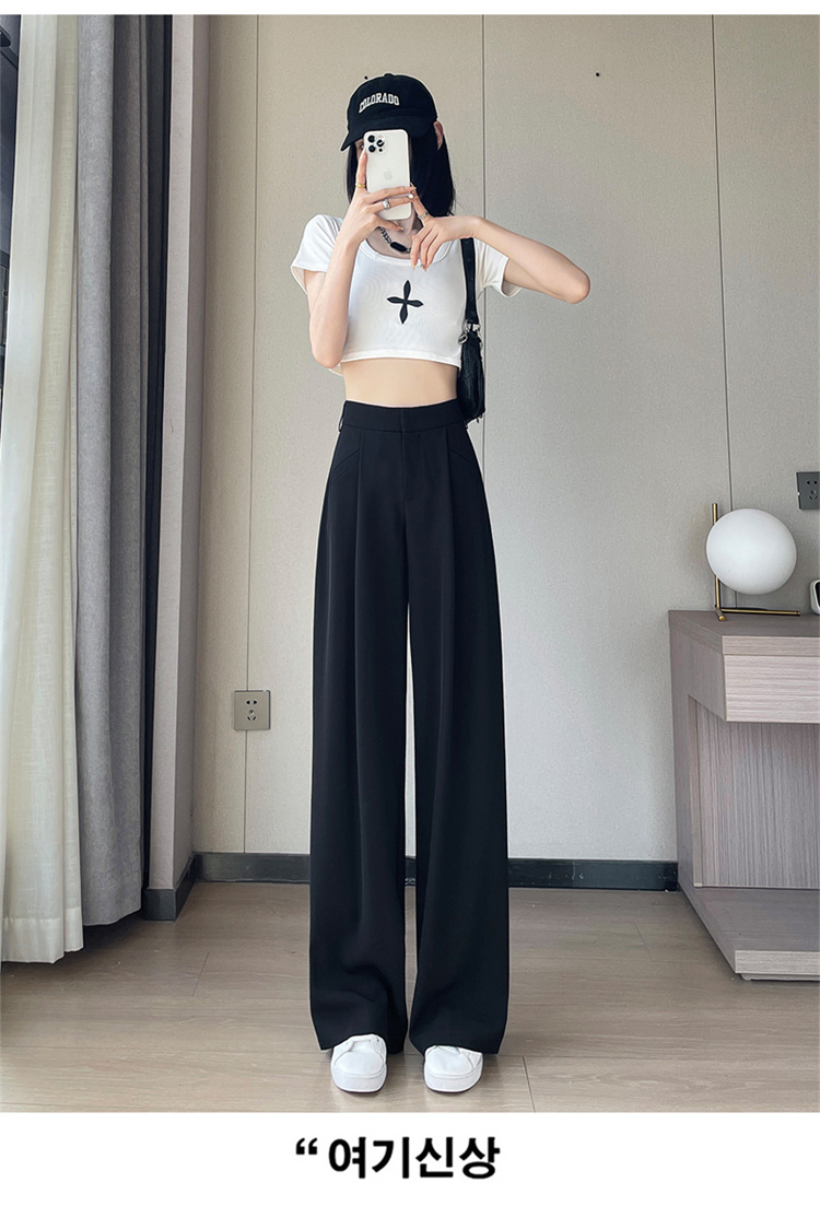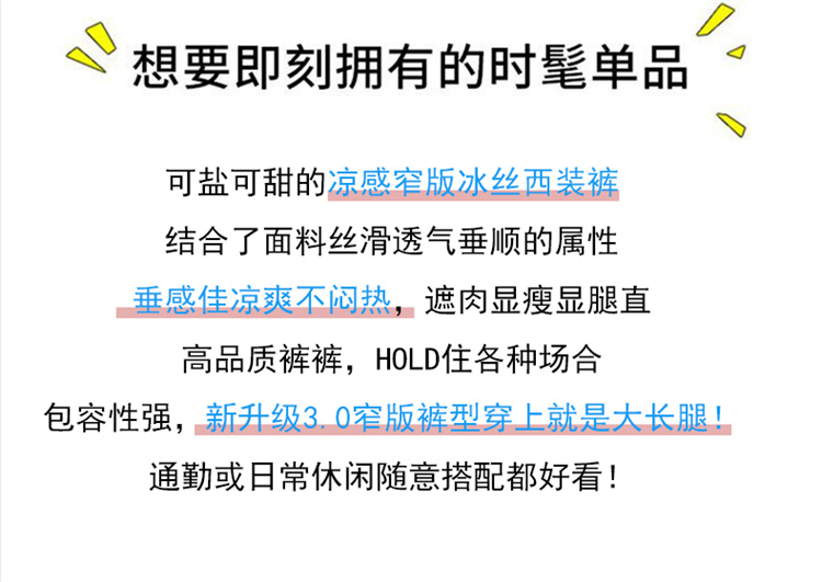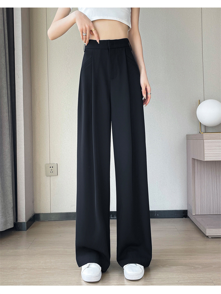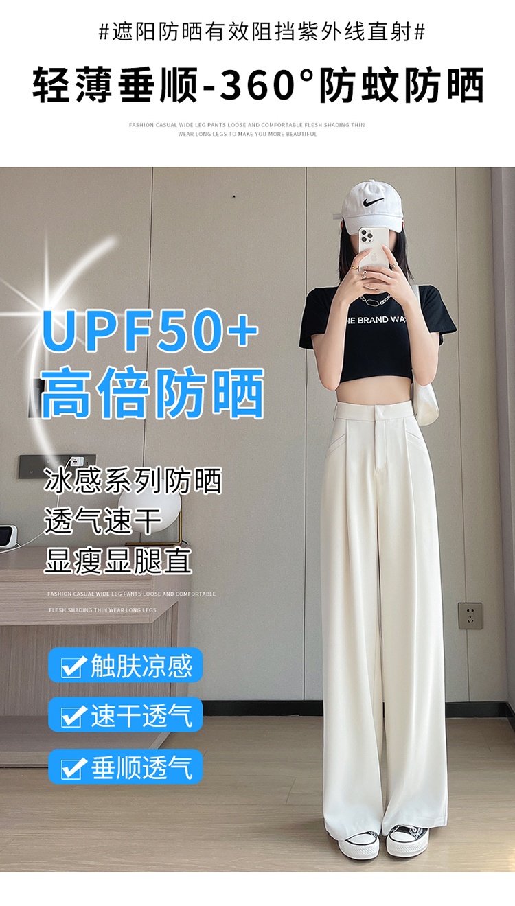 RY70062# 实拍2026夏季新款冰丝西装裤高腰窄版阔腿裤直筒薄款休闲拖地裤女