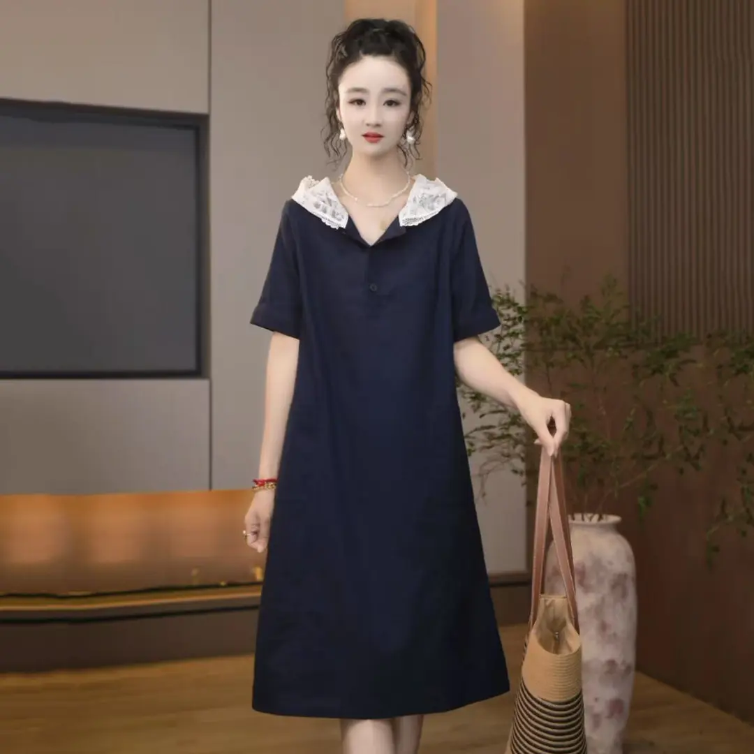 RY70064# 含棉设计感短袖牛仔连衣裙女士2026夏季新款洋气中长款裙子