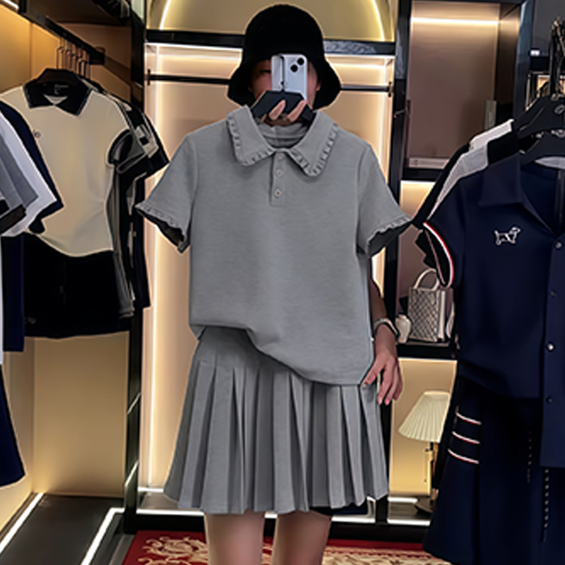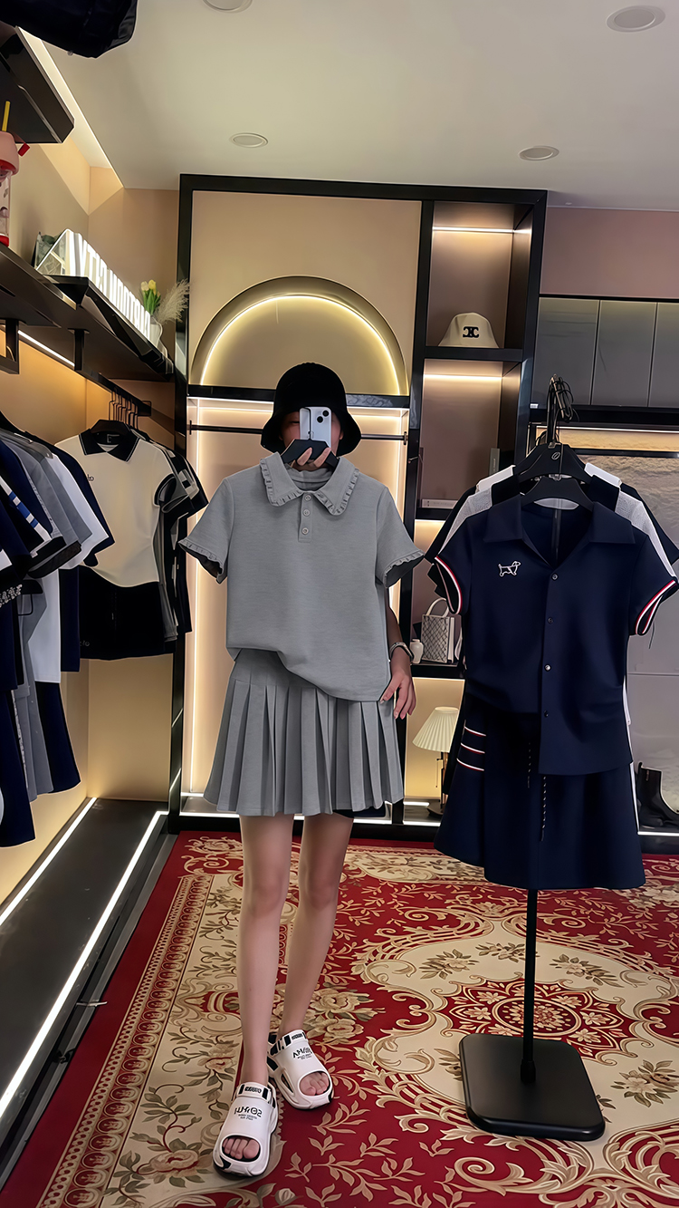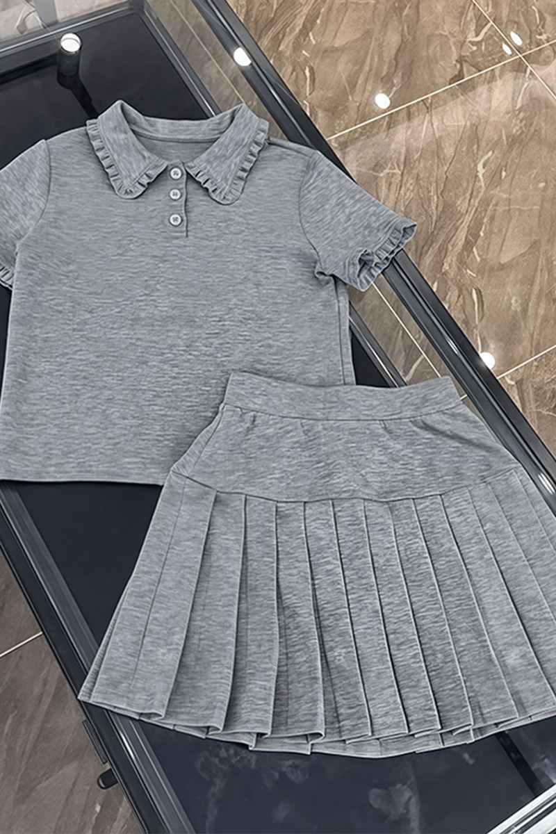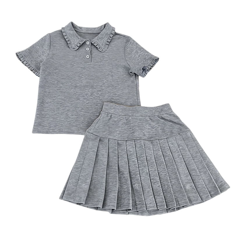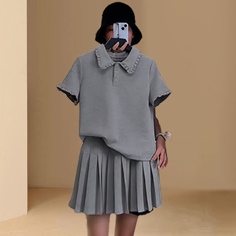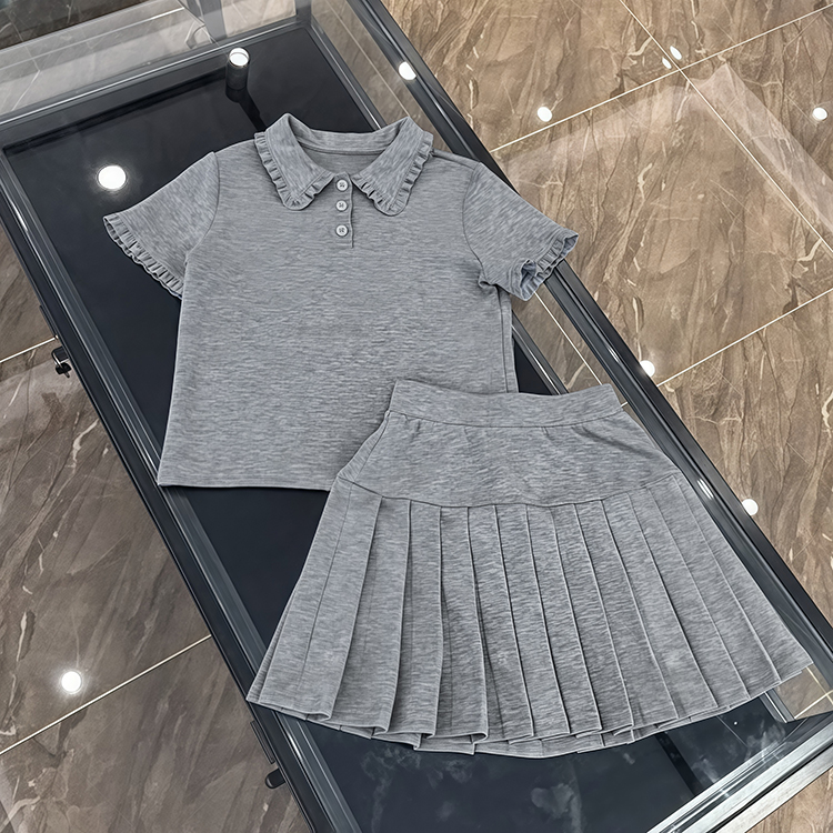 RY70066# 高含棉小个子韩系套装女2026夏季新款短袖上衣百褶裙两件套