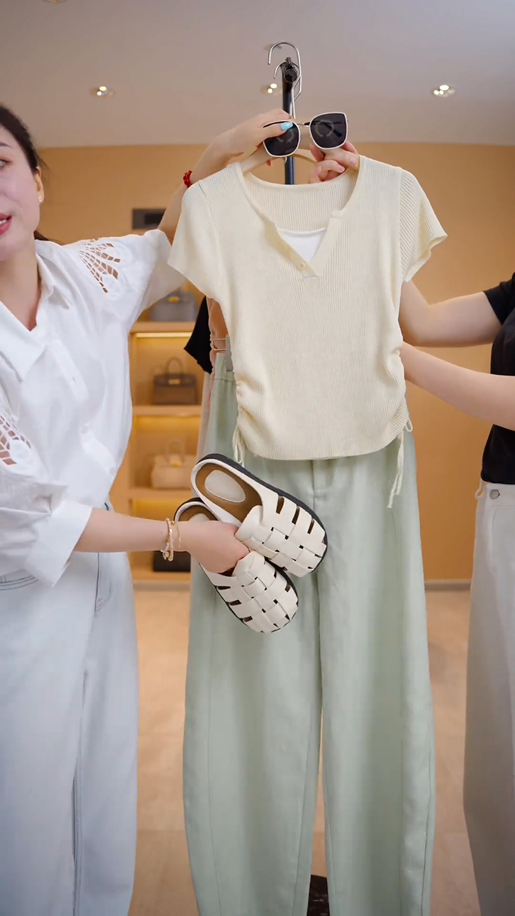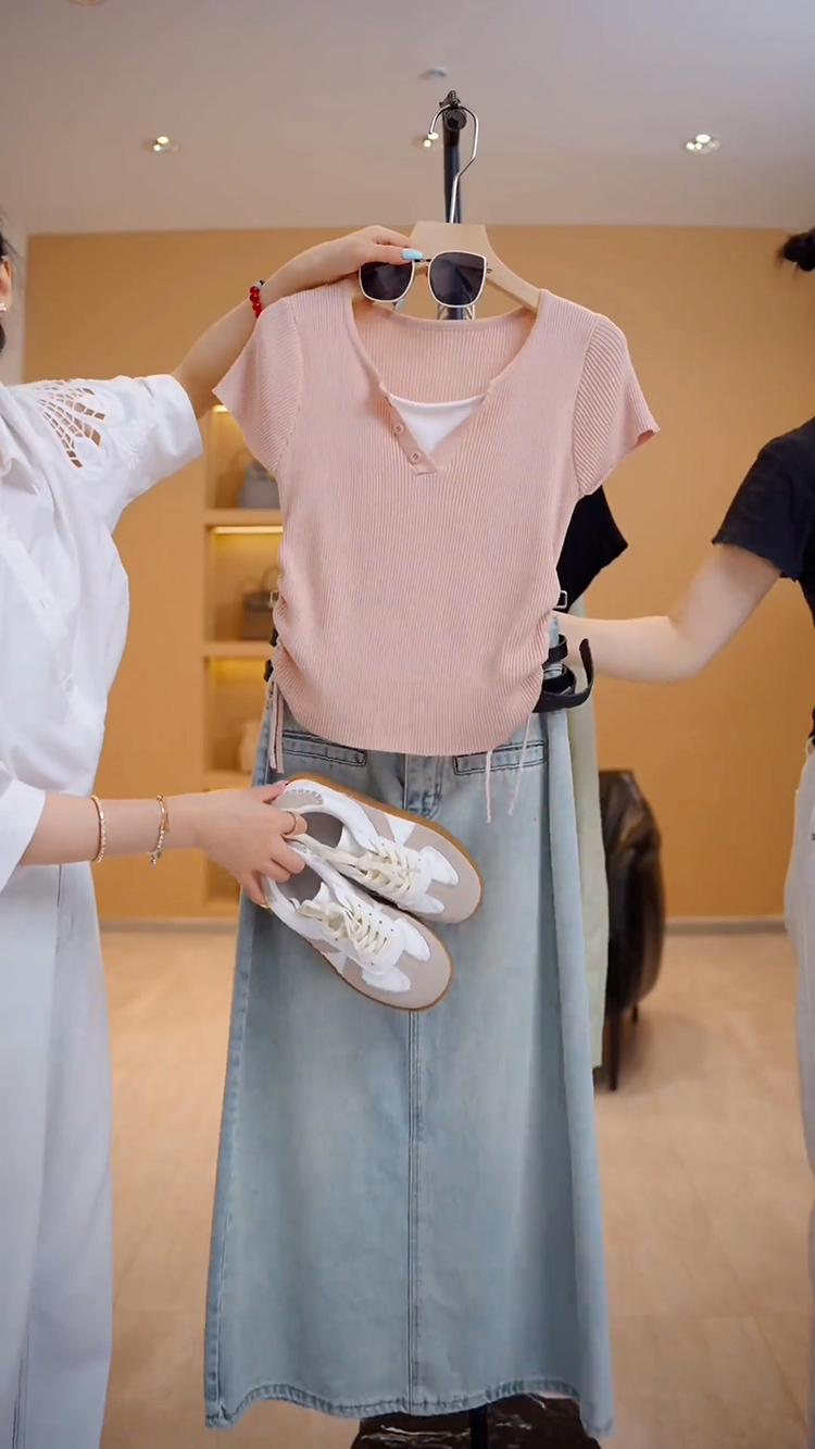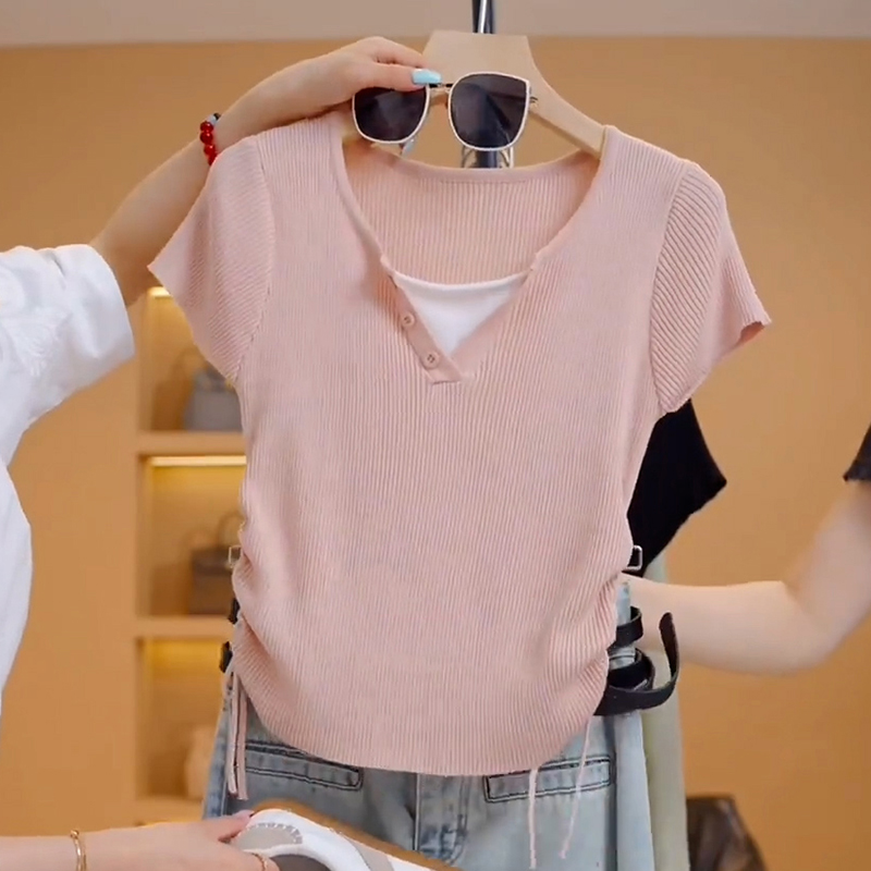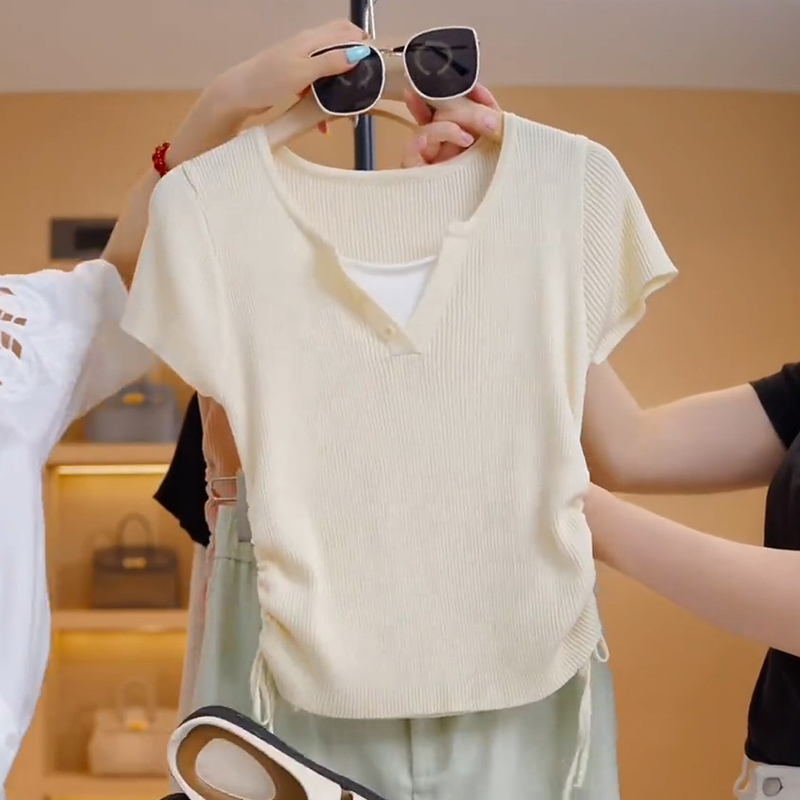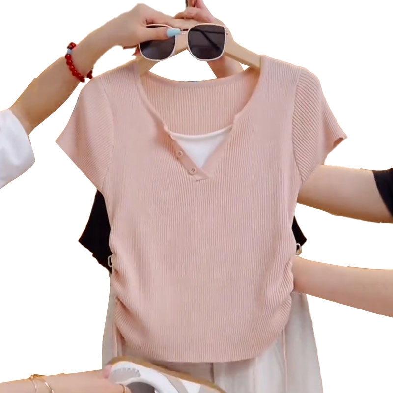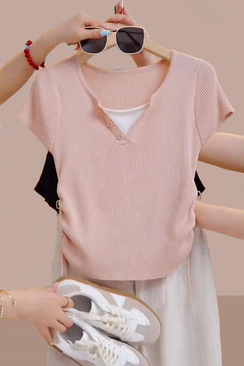 RY70087# 高含棉设计感短袖t恤女士2026夏季新款时尚收腰假两件上衣
