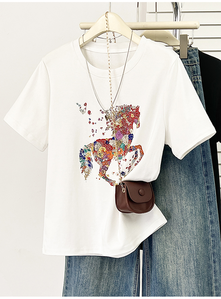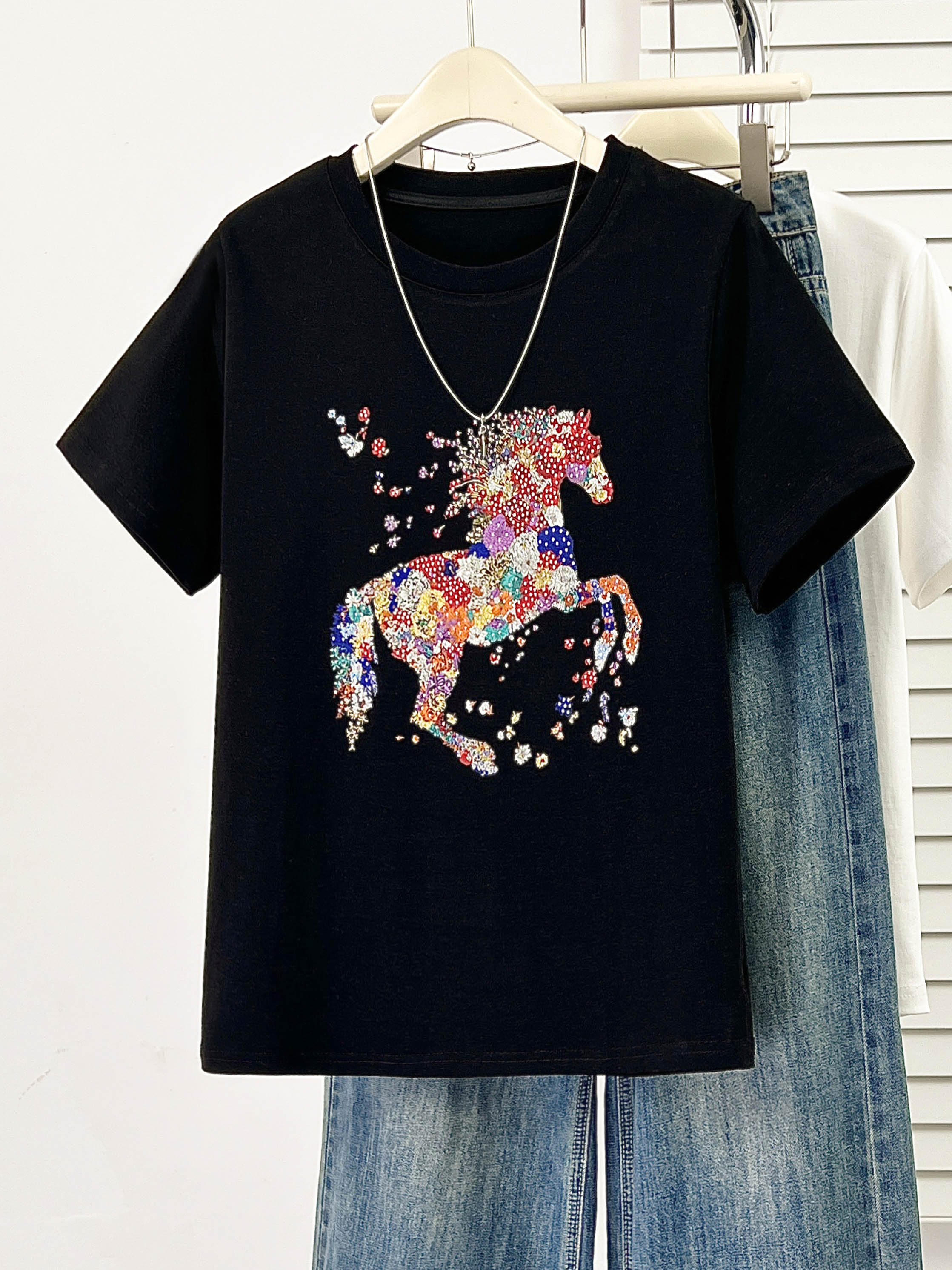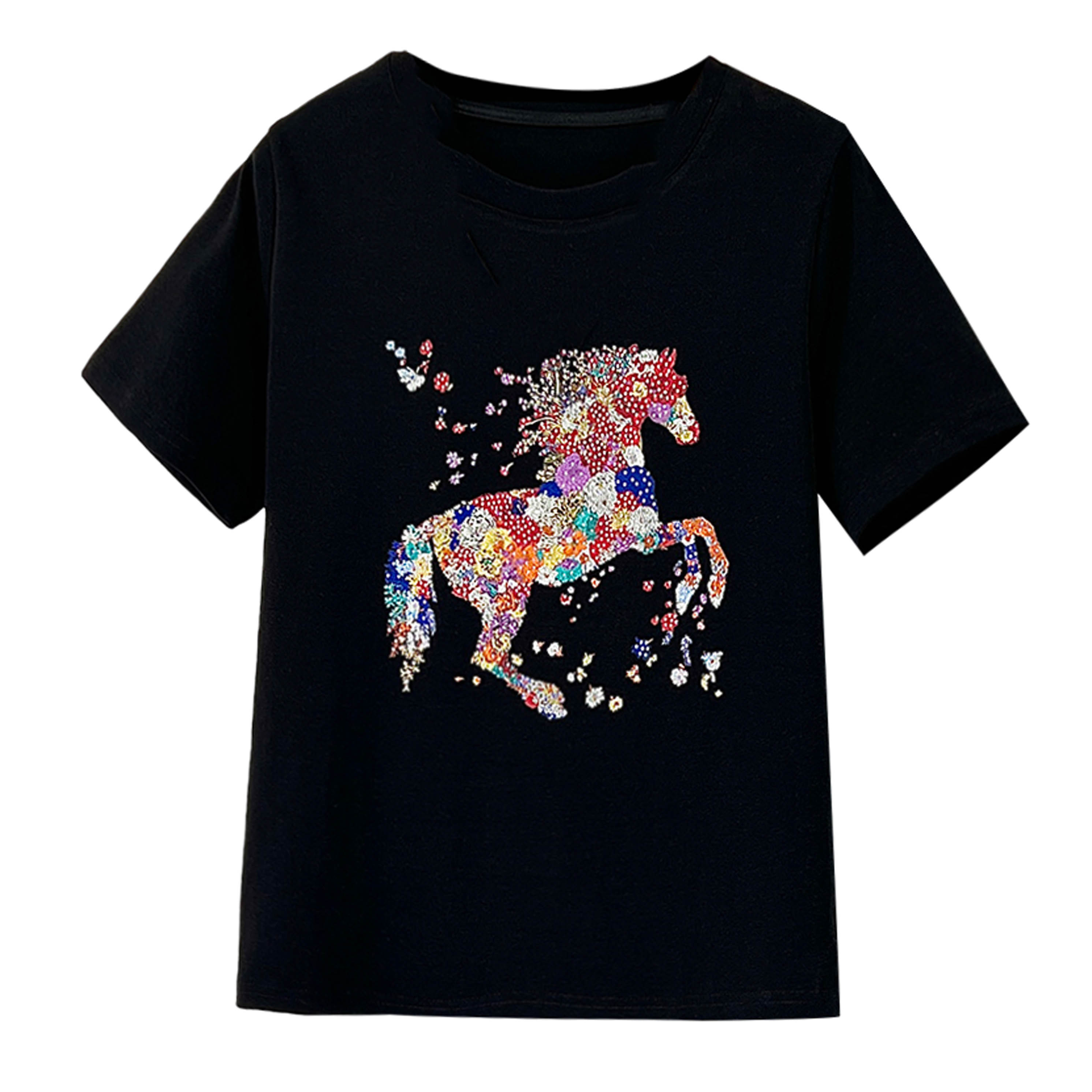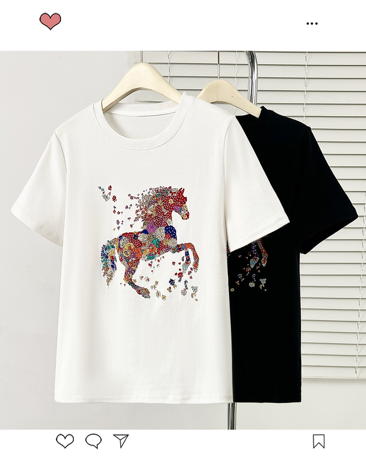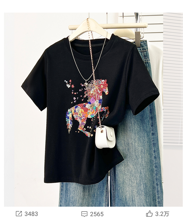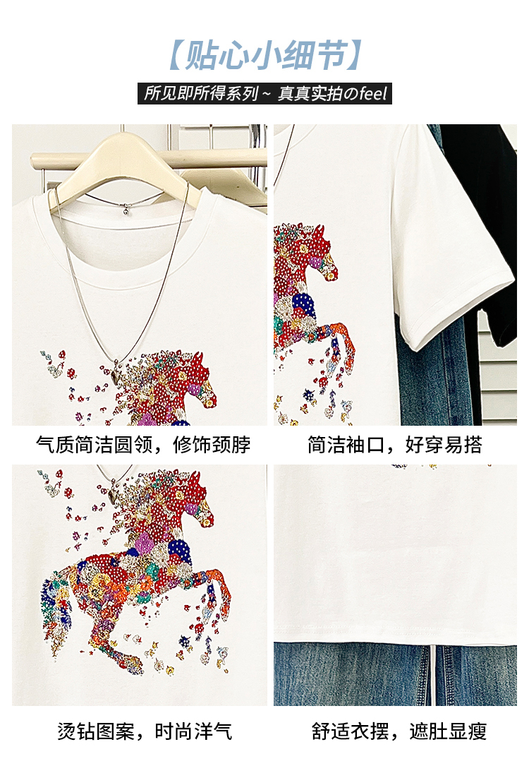 RY70091# 实拍大码女装短袖T恤女2026年夏季新款休闲百搭圆领简约显瘦上衣