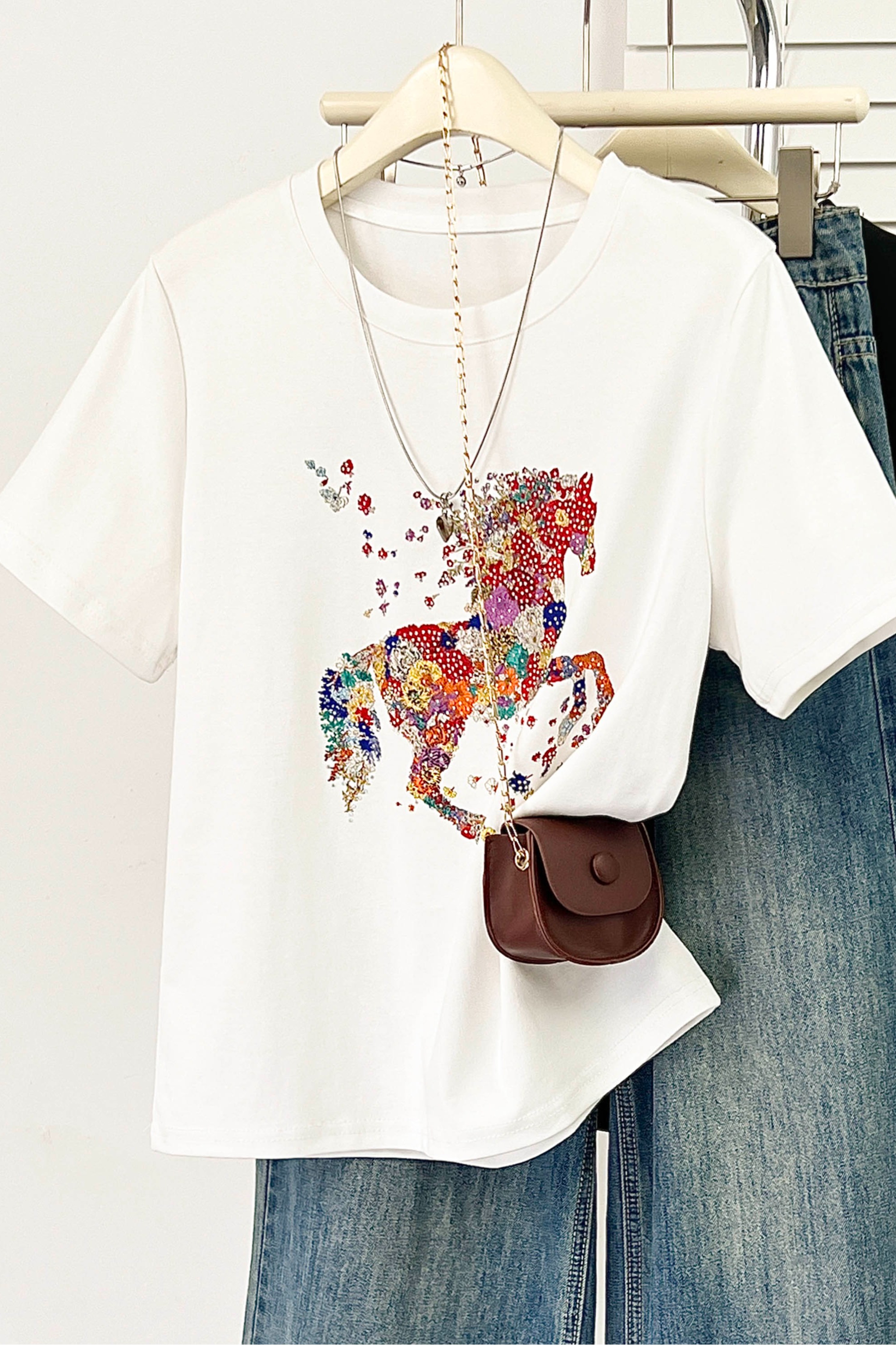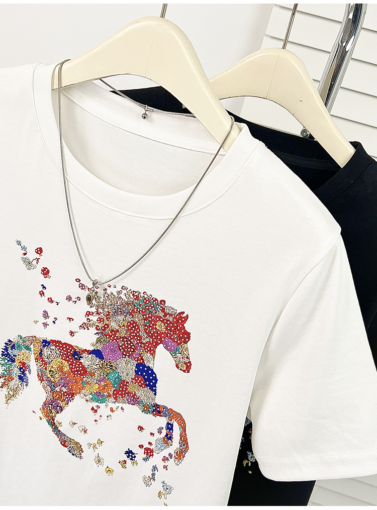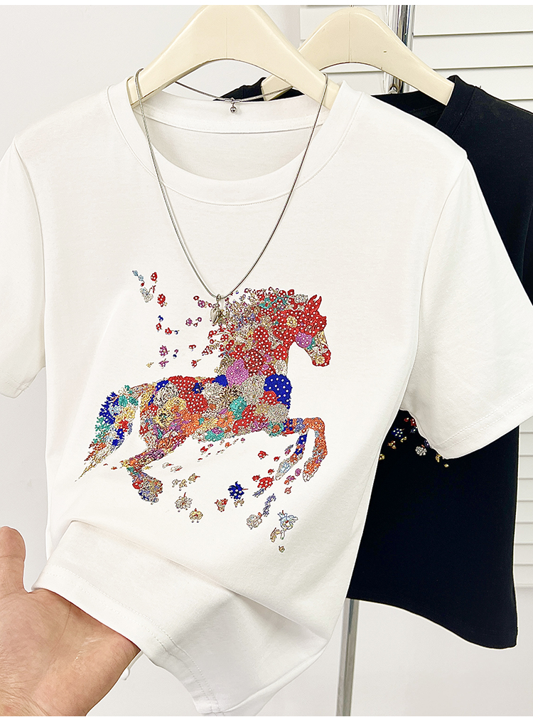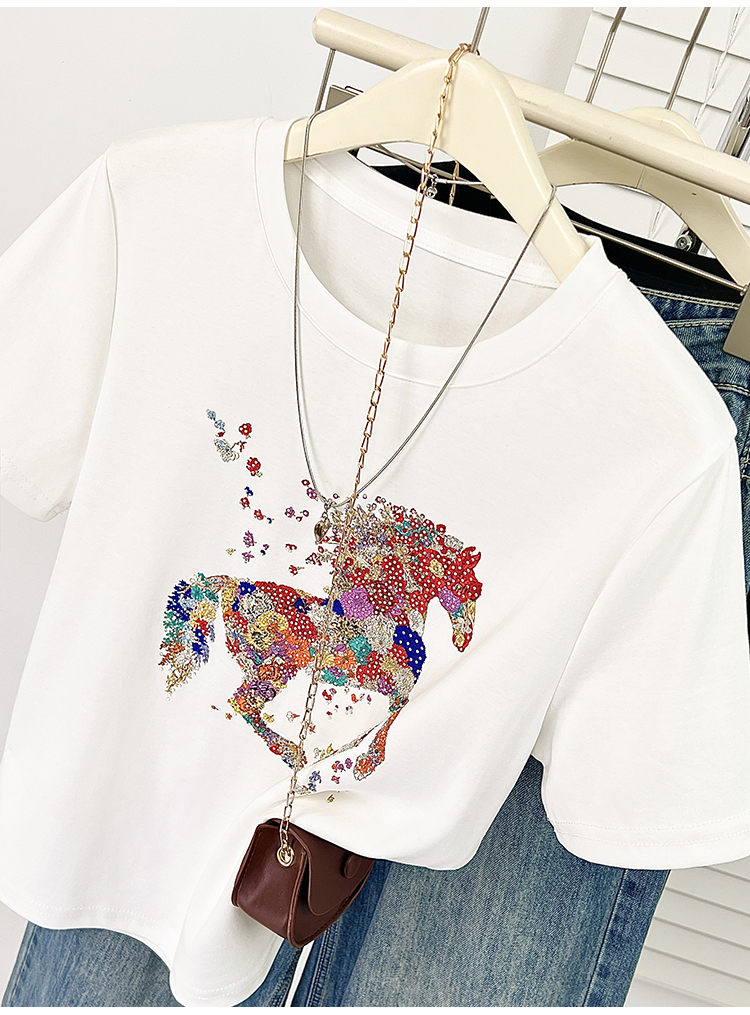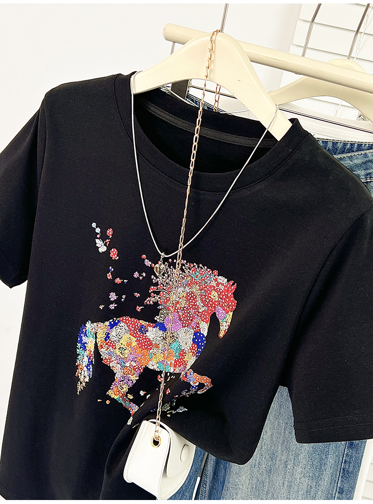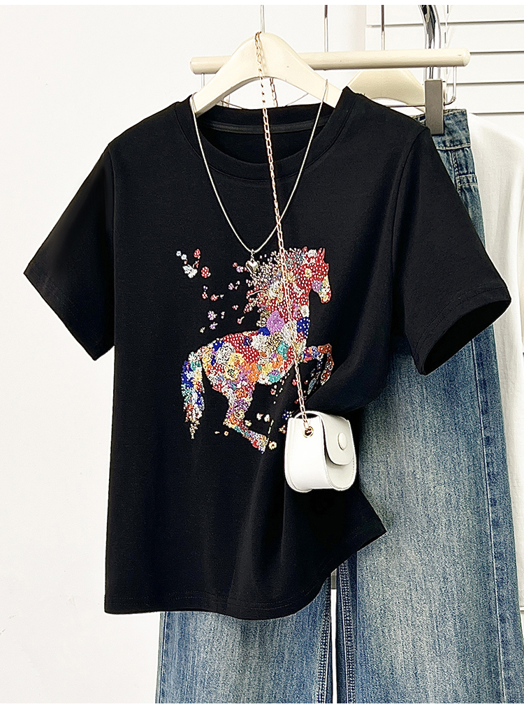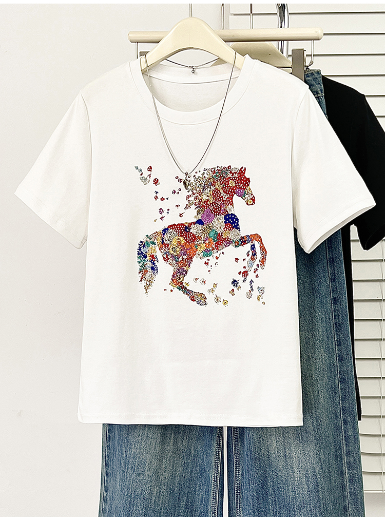 RY70091# 实拍大码女装短袖T恤女2026年夏季新款休闲百搭圆领简约显瘦上衣