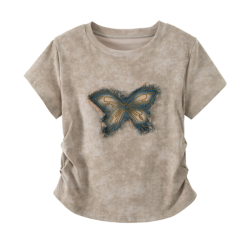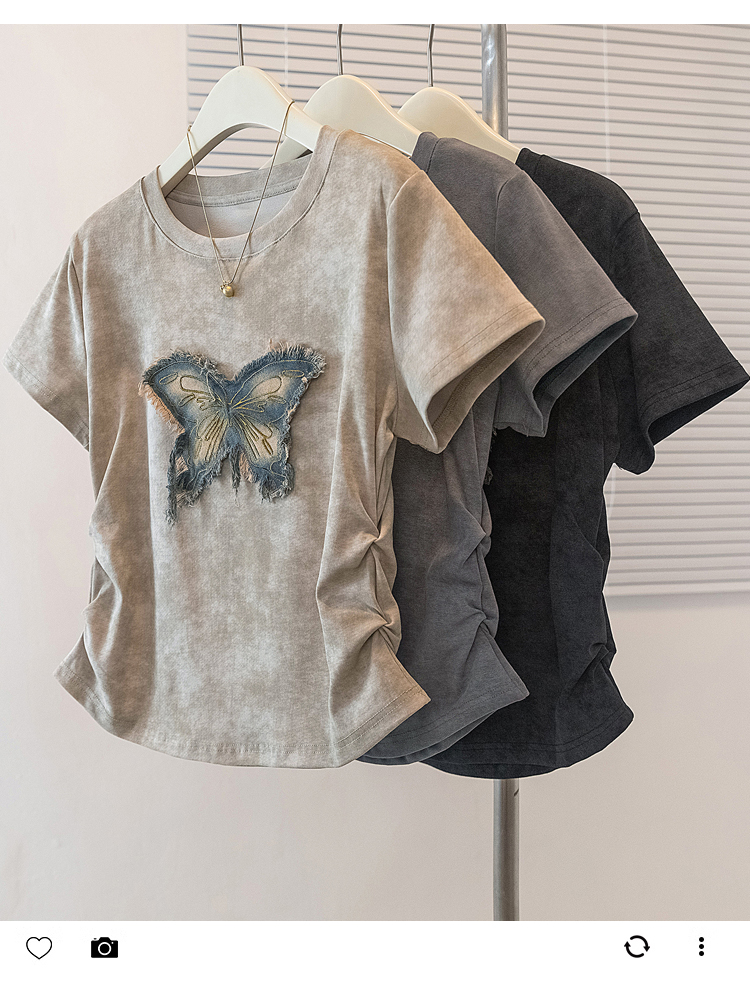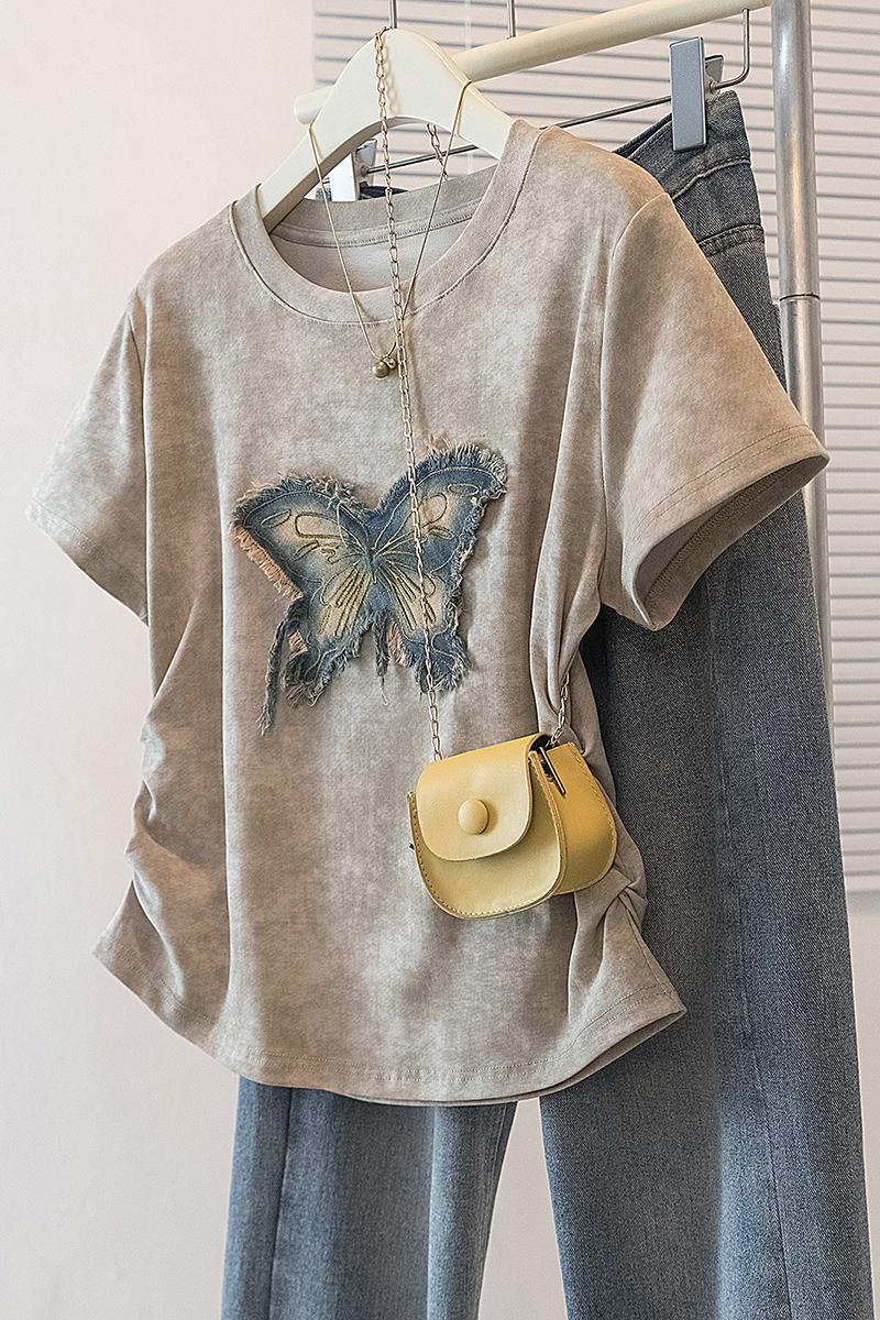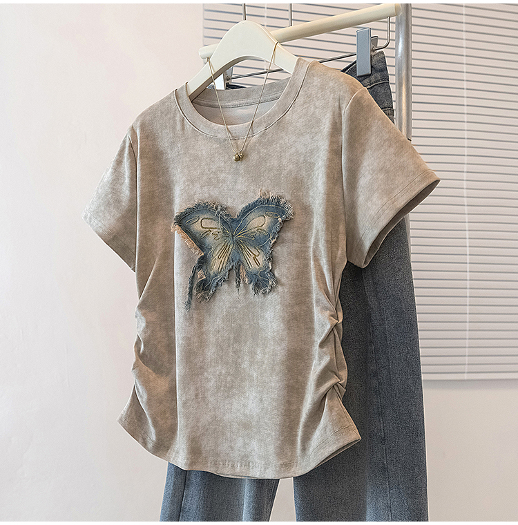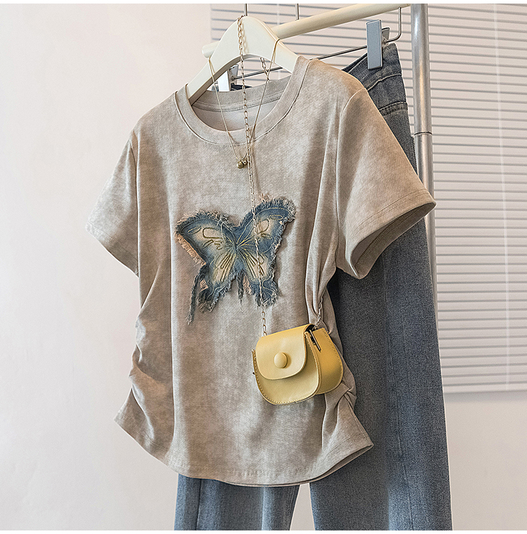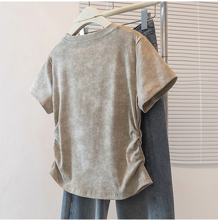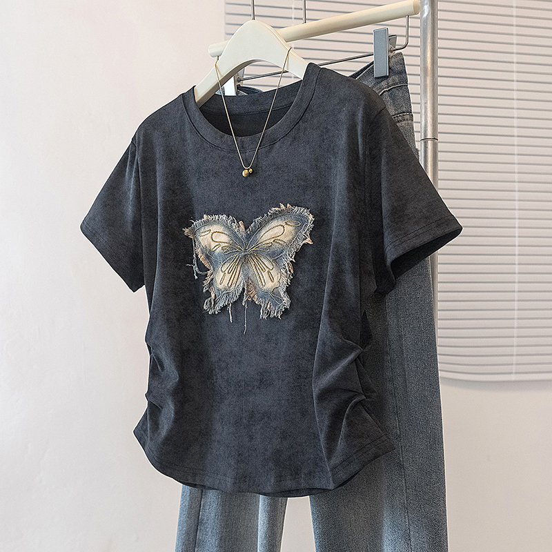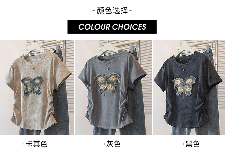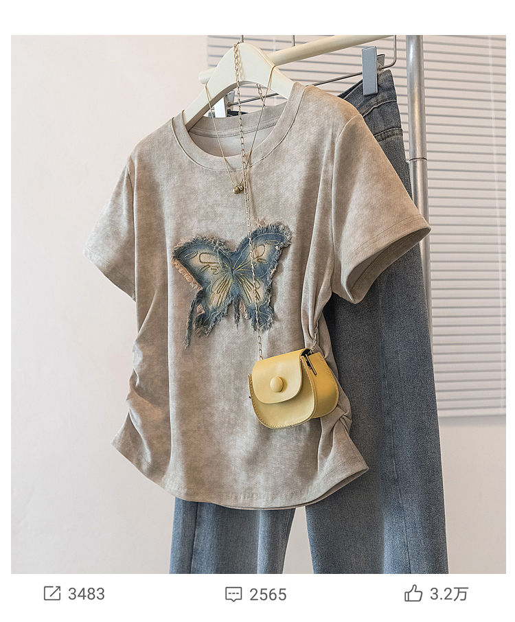 RY70097# 实拍大码女装韩版流行短袖上衣胖妹妹宽松收腰显瘦百搭休闲t恤夏