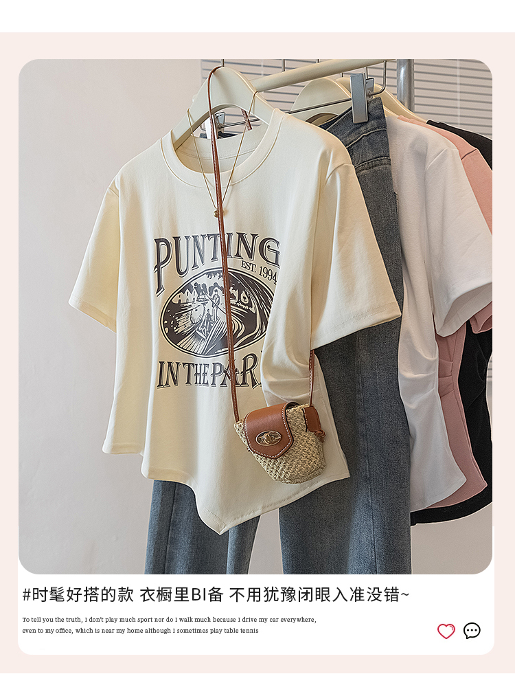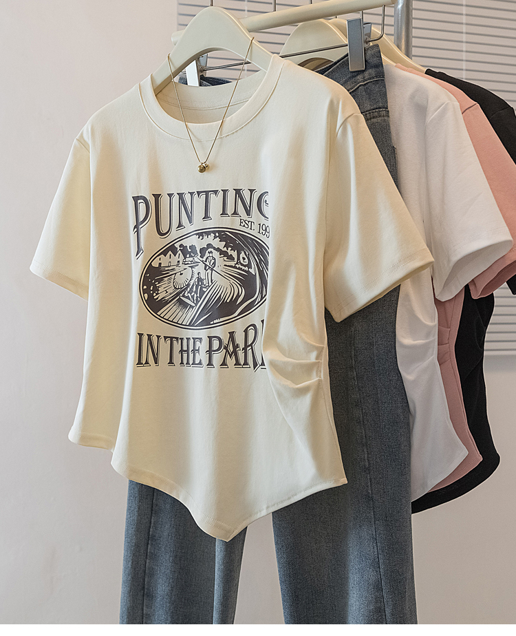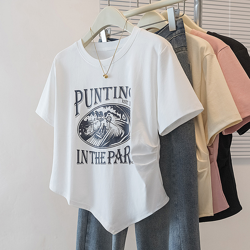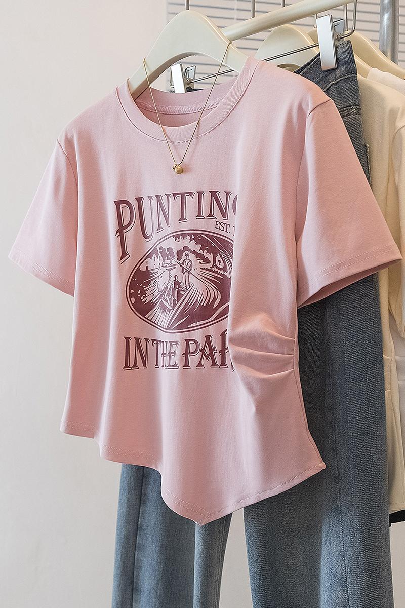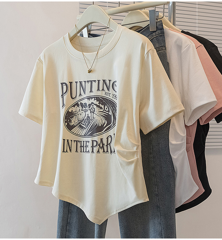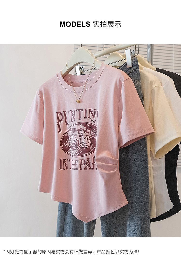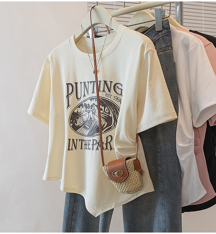 RY70102# 实拍大码女装韩流行印花短袖t恤夏胖妹妹宽松遮肉显瘦洋气上衣潮