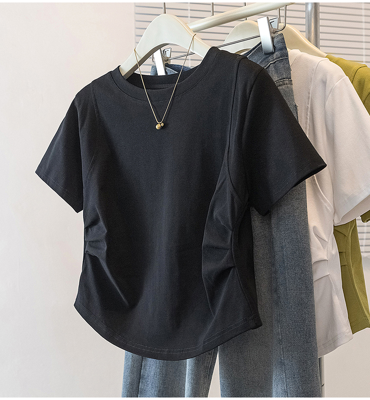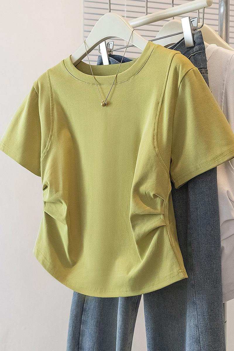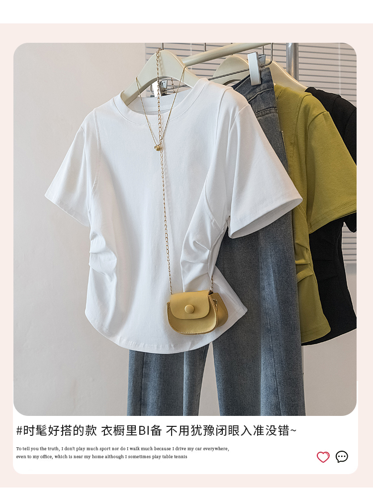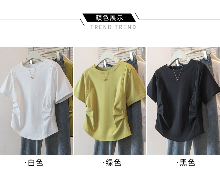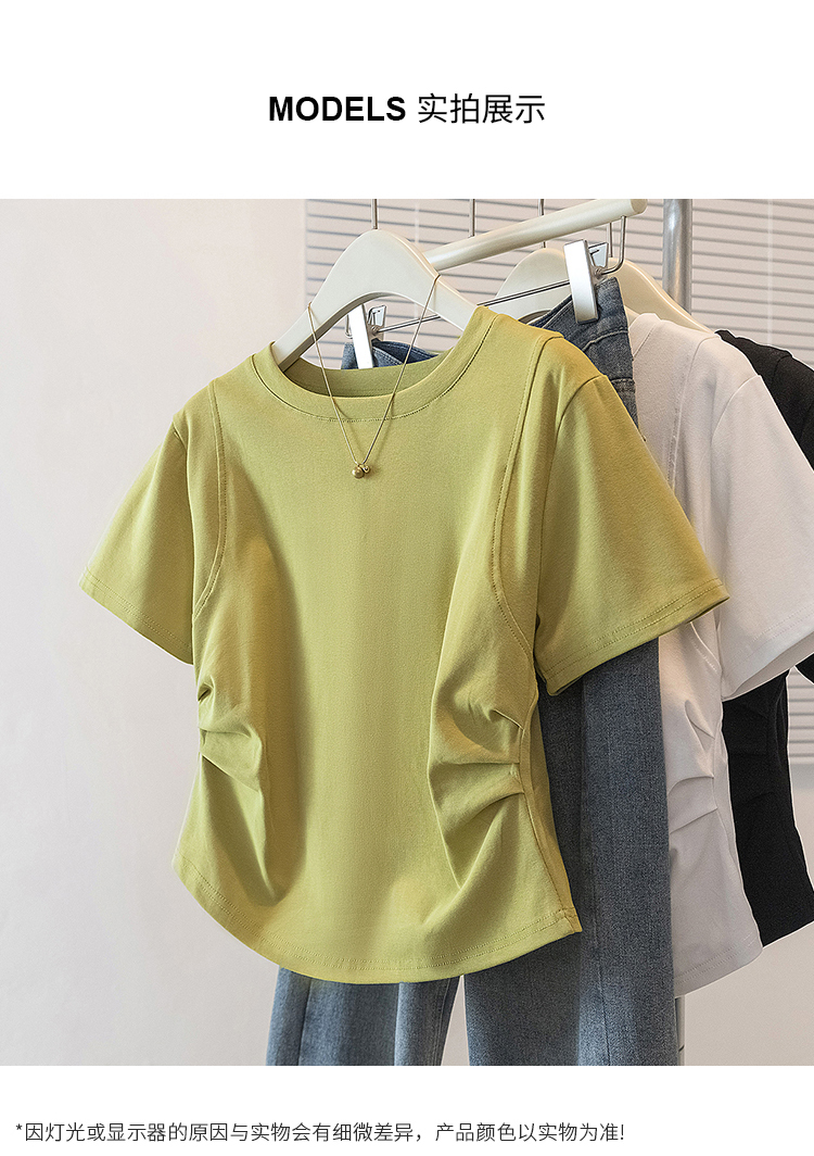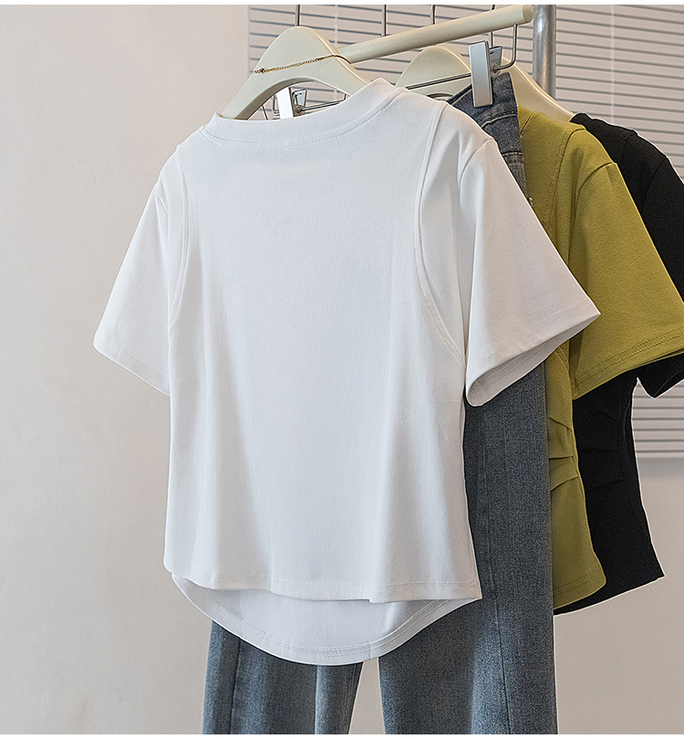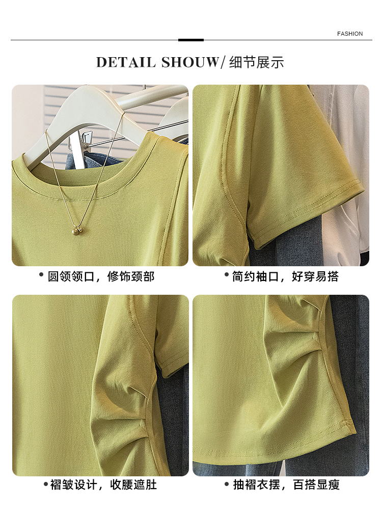 RY70103# 实拍大码女装韩版圆领流行短袖t恤夏胖妹妹收腰显瘦洋气百搭上衣