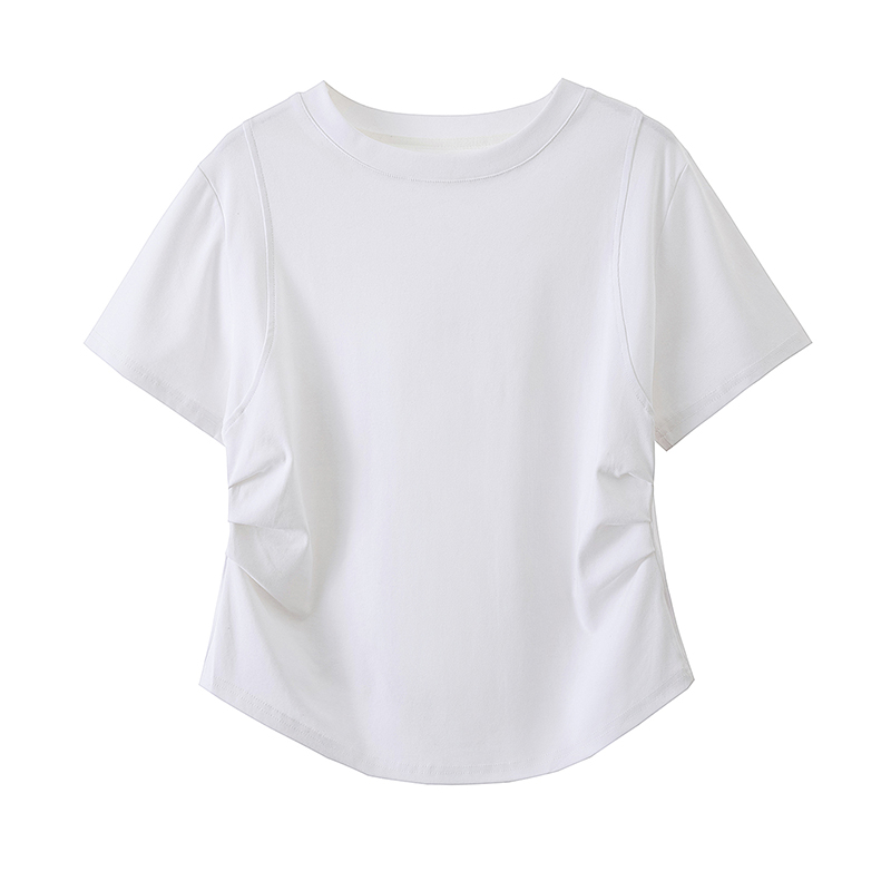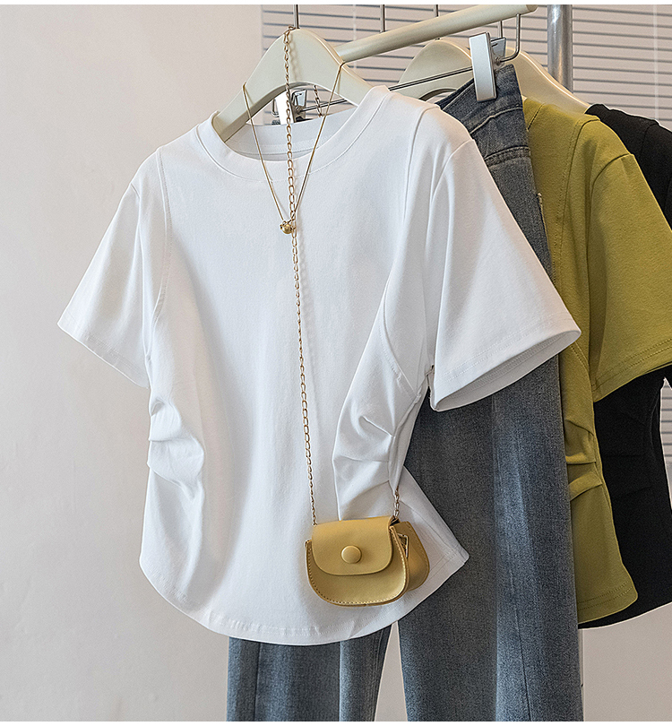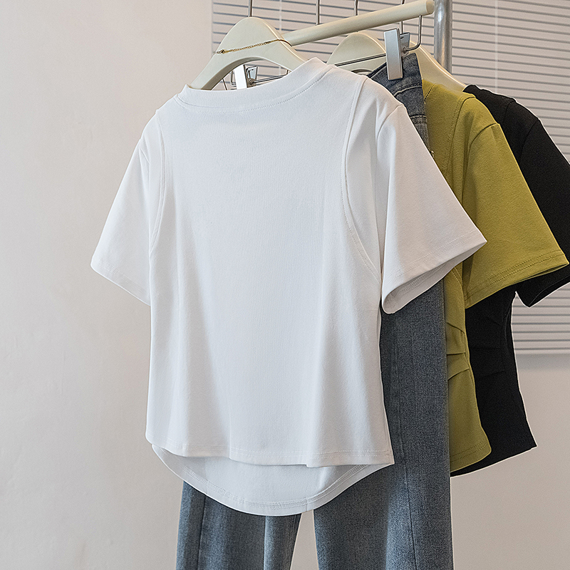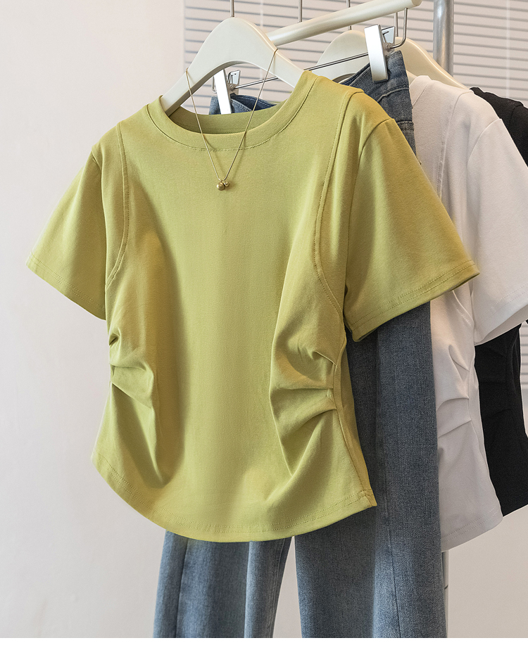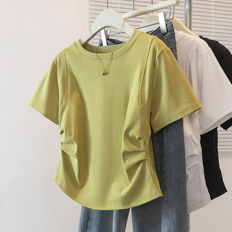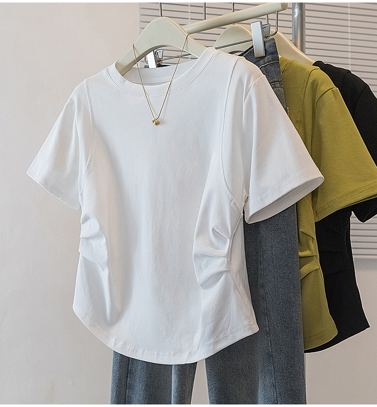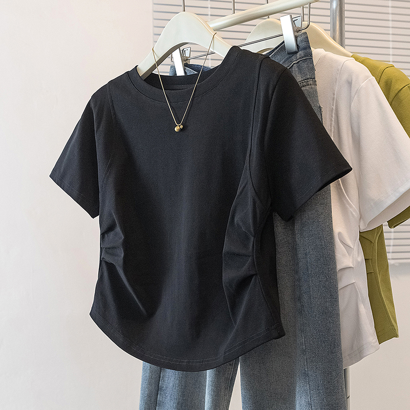 RY70103# 实拍大码女装韩版圆领流行短袖t恤夏胖妹妹收腰显瘦洋气百搭上衣