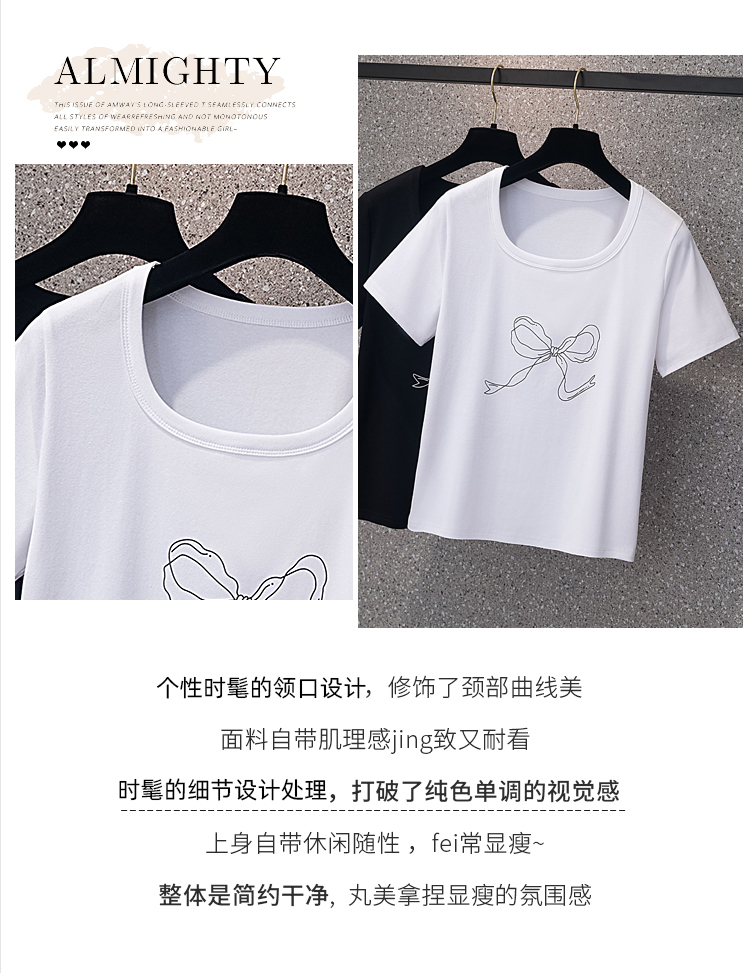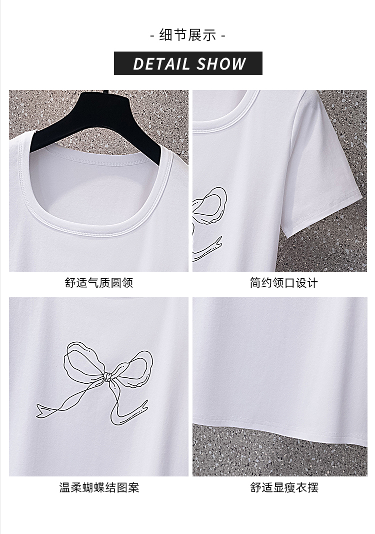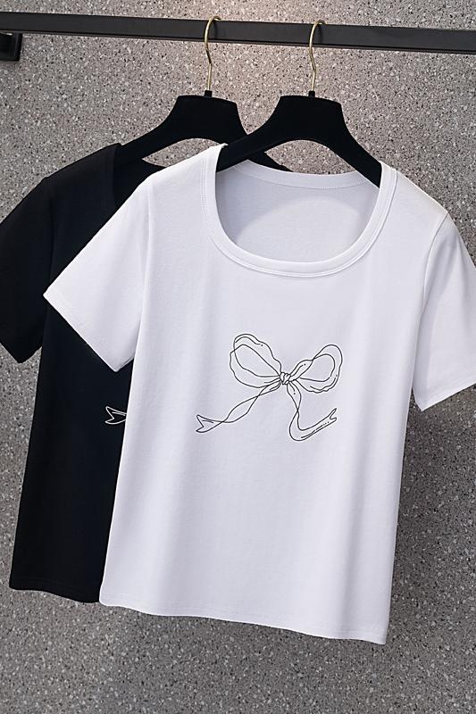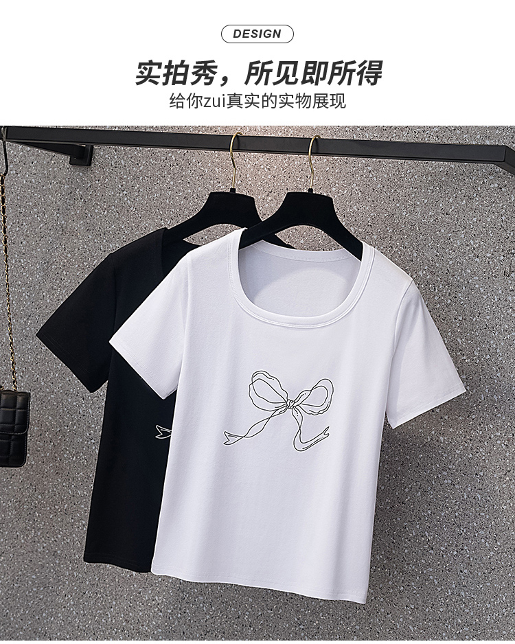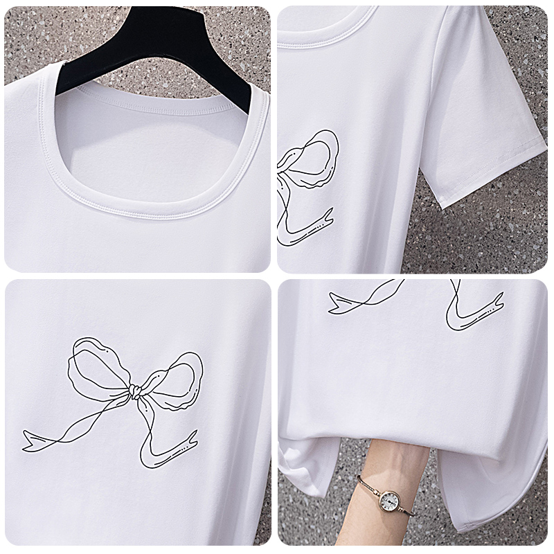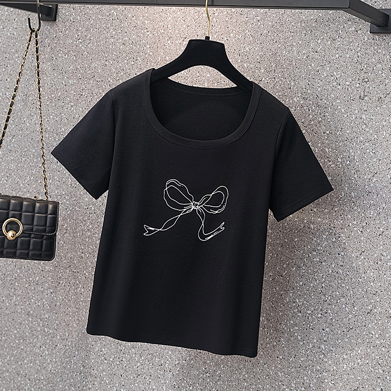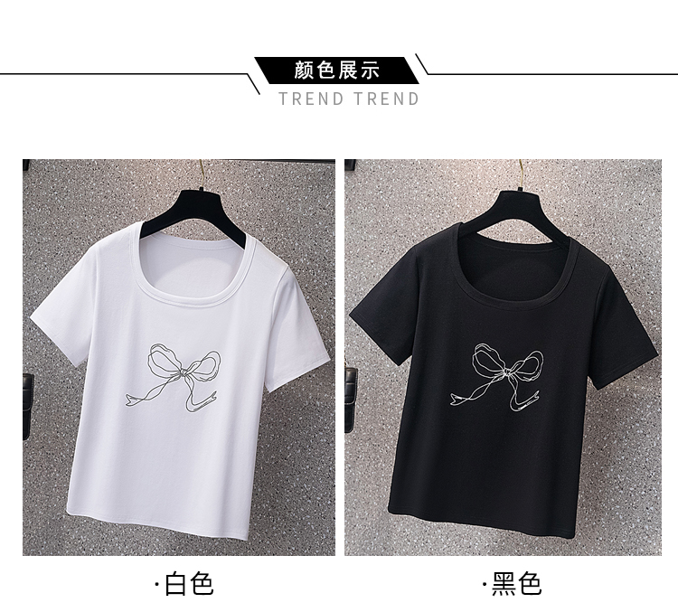 RY70104# 实拍大码女装韩版简约蝴蝶结套头t恤女胖mm宽松百搭简约上衣夏季