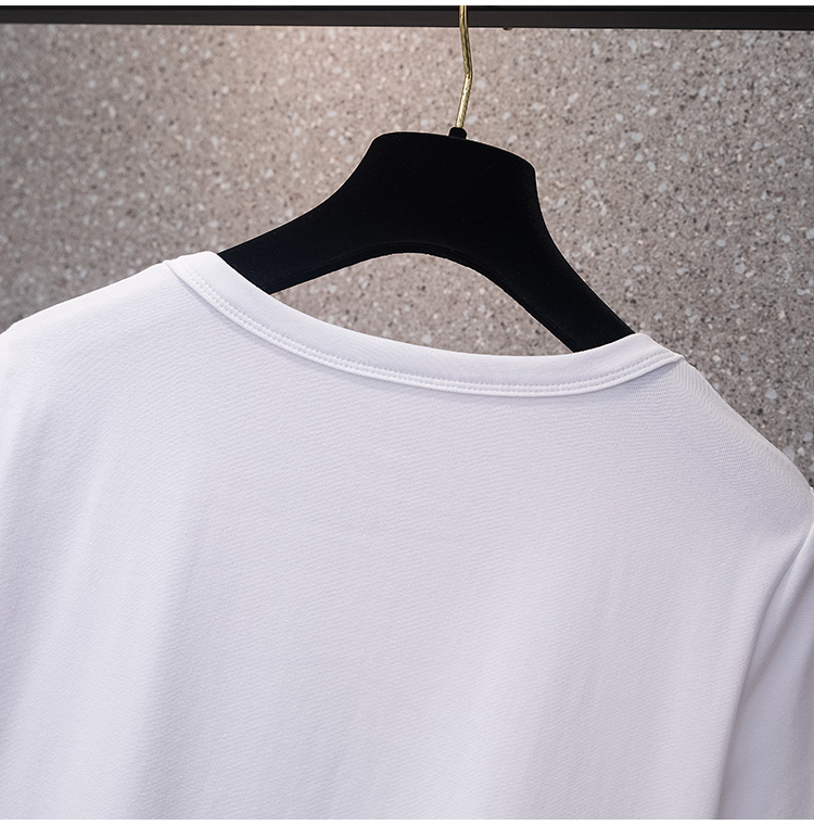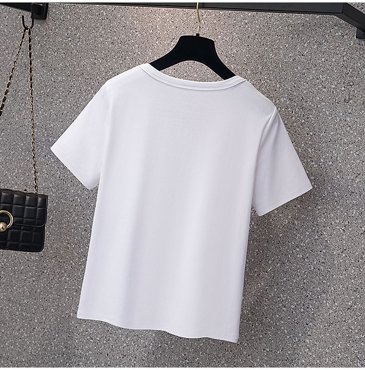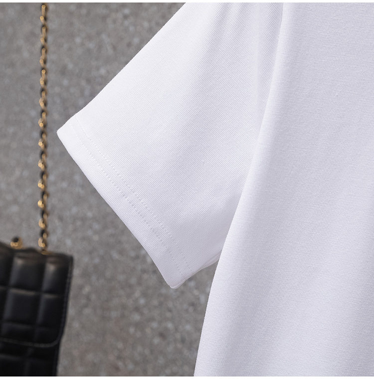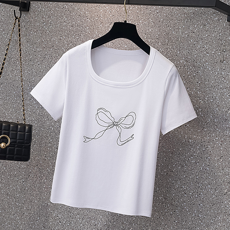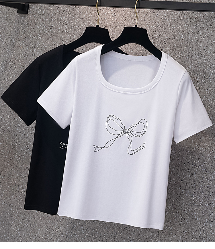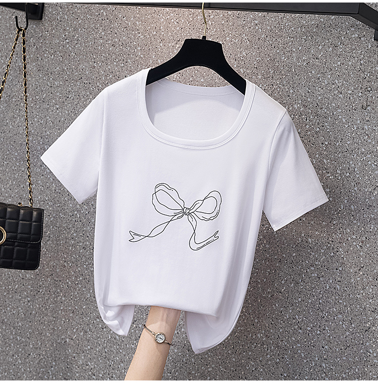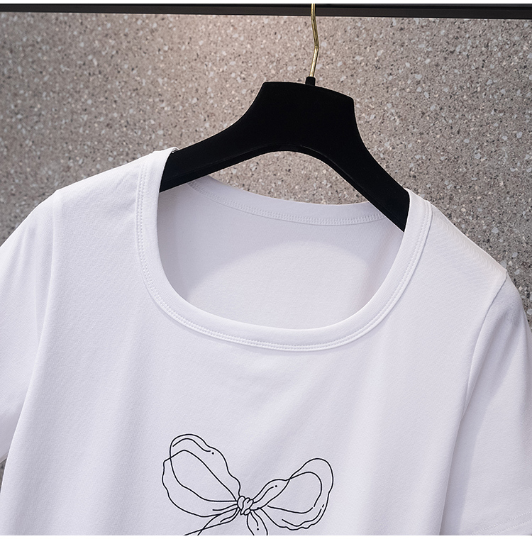 RY70104# 实拍大码女装韩版简约蝴蝶结套头t恤女胖mm宽松百搭简约上衣夏季