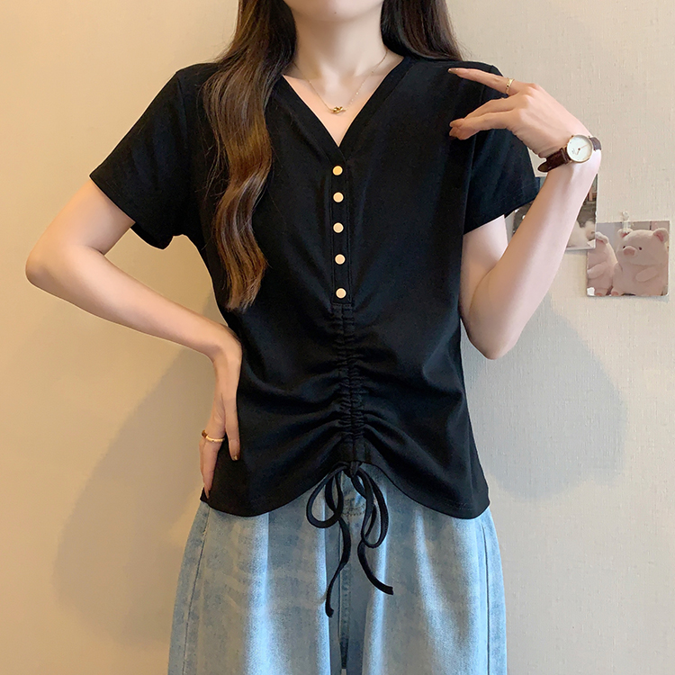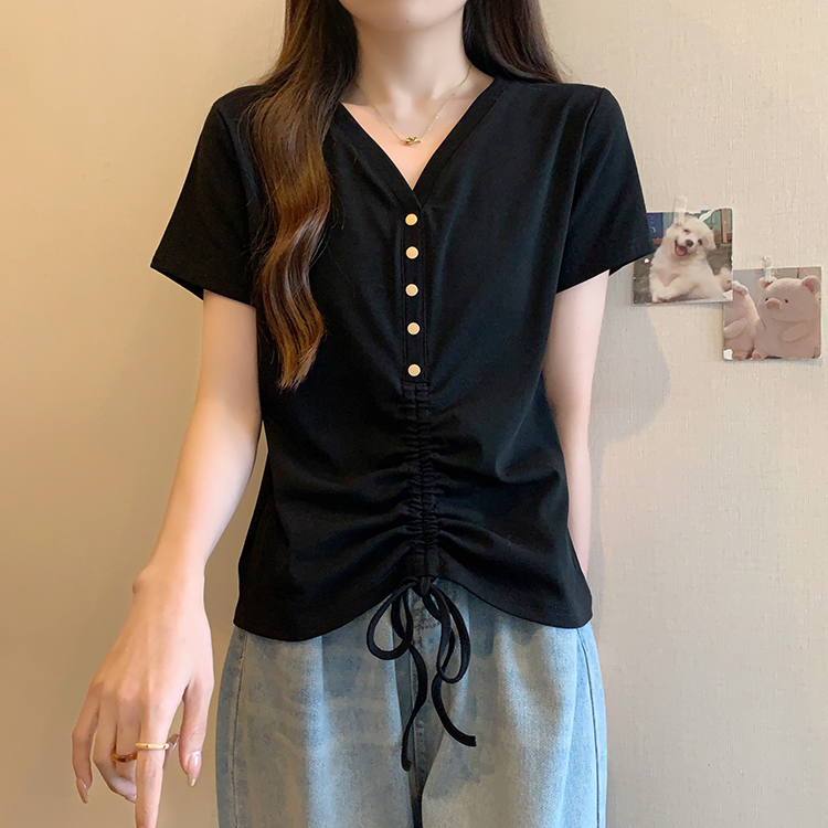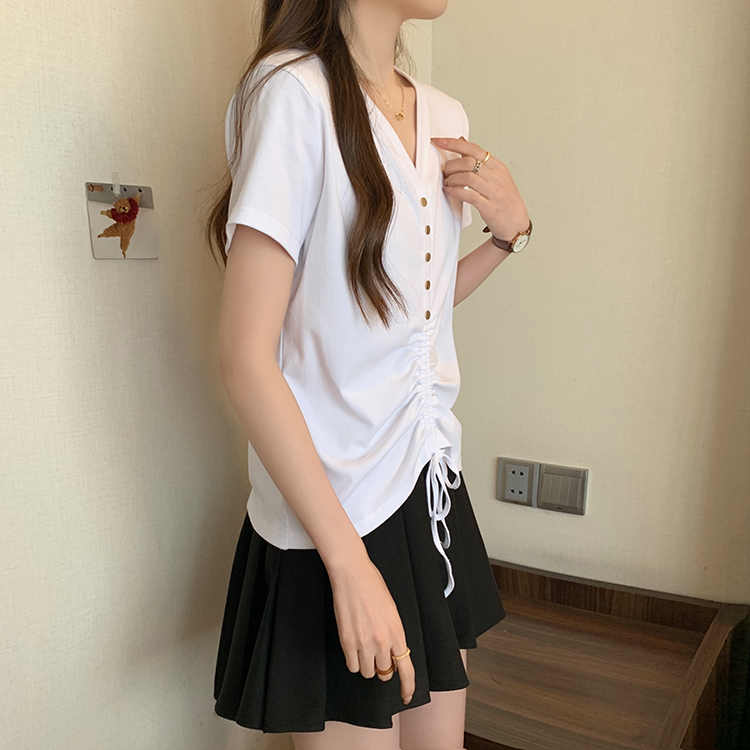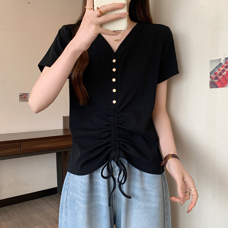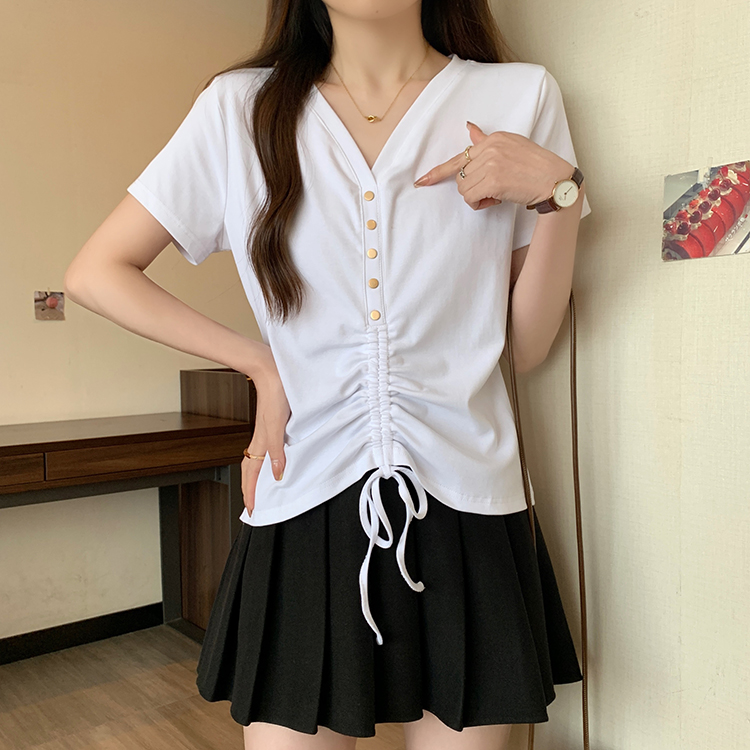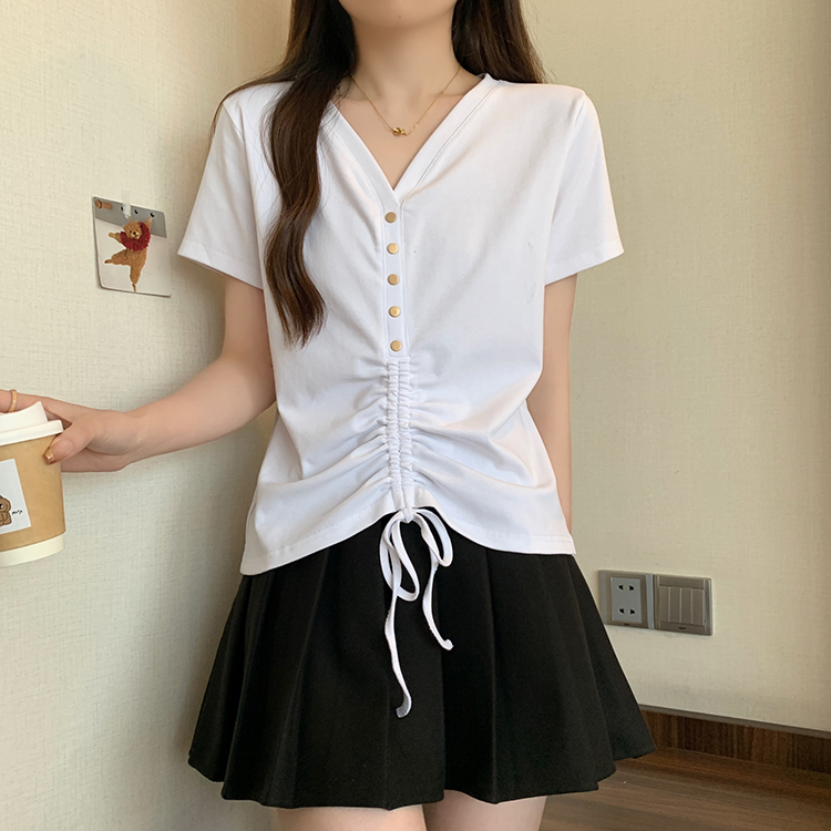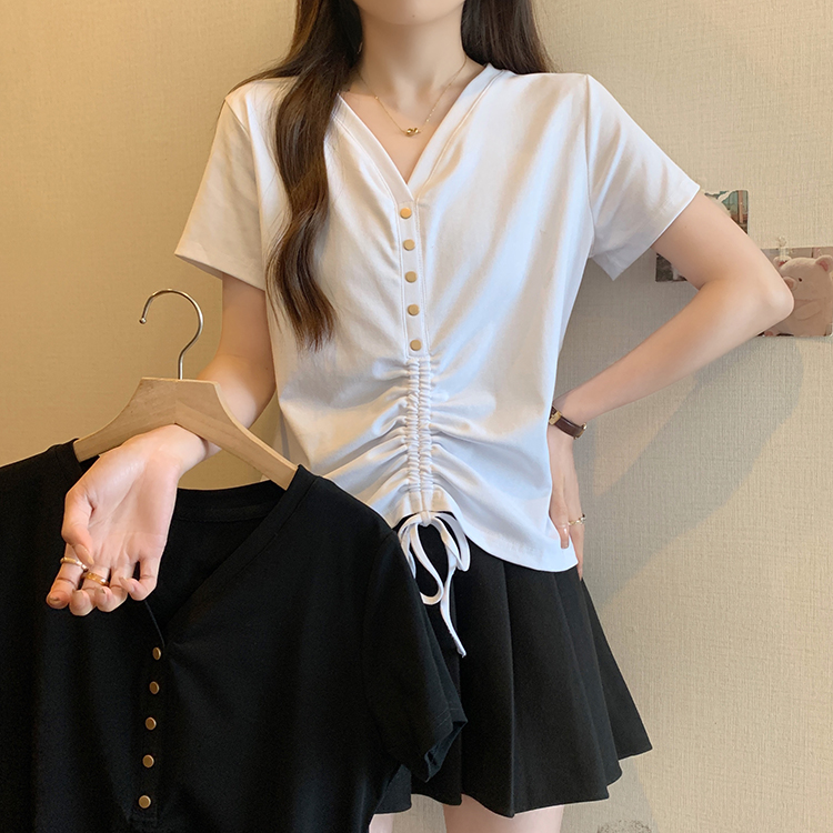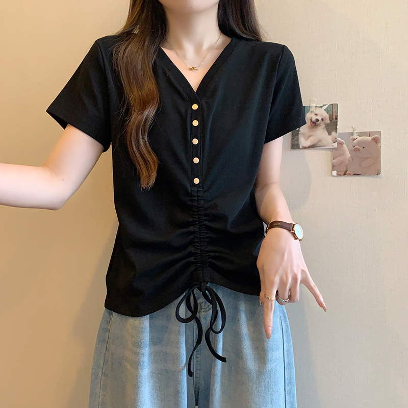 RY70111# 实拍大码不规则褶皱短袖t恤女夏胖MM宽松遮肉设计感小众辣妹上衣