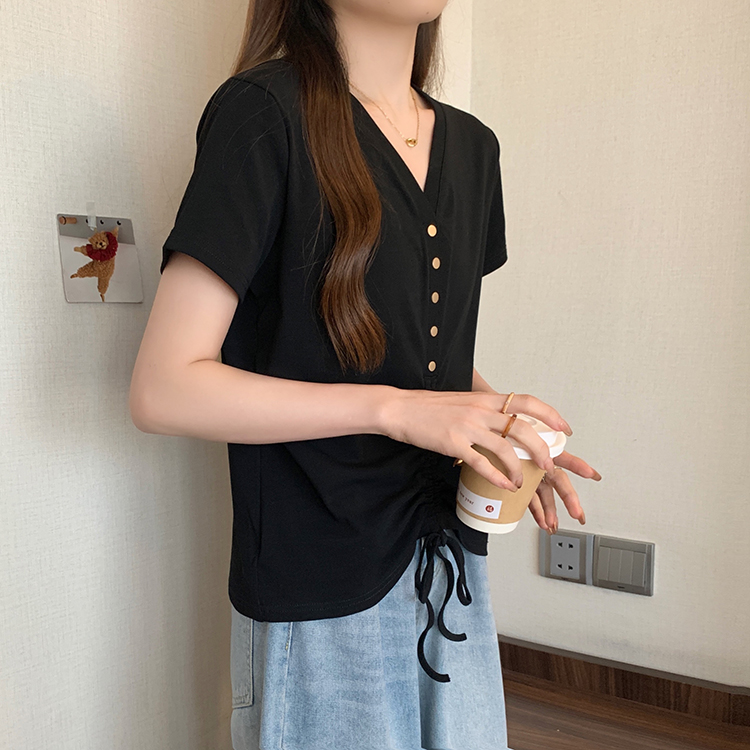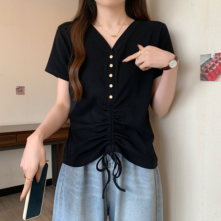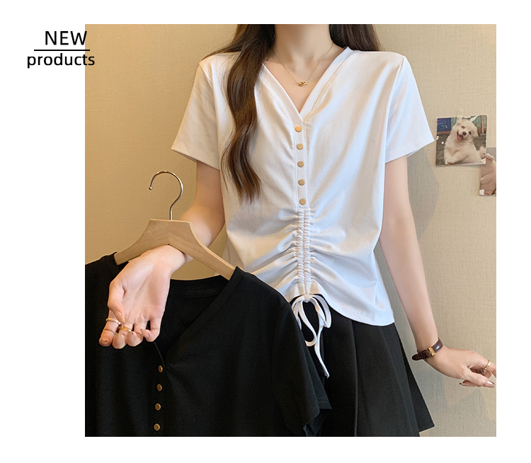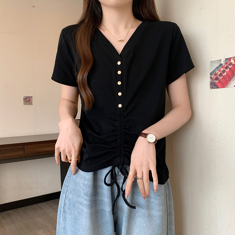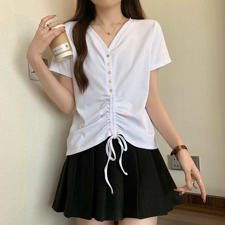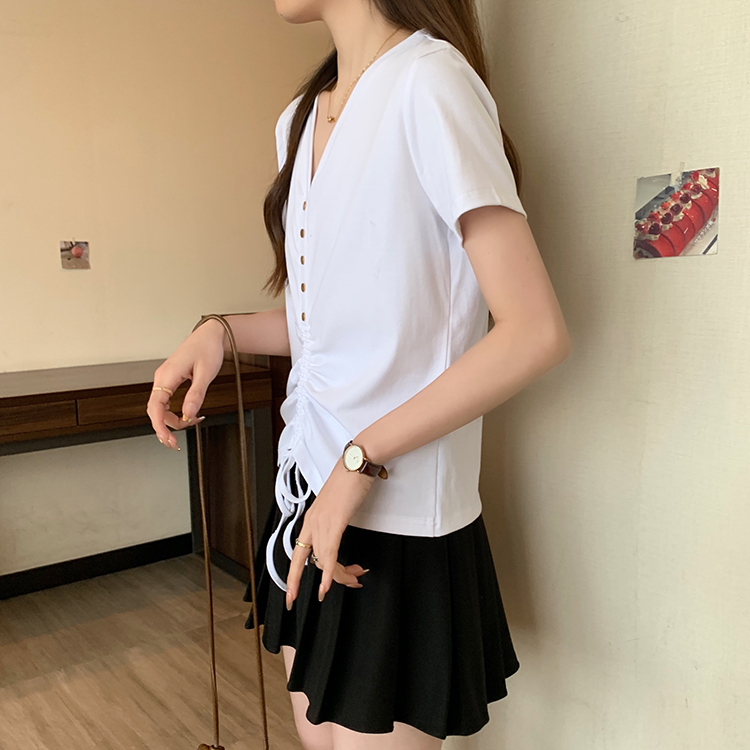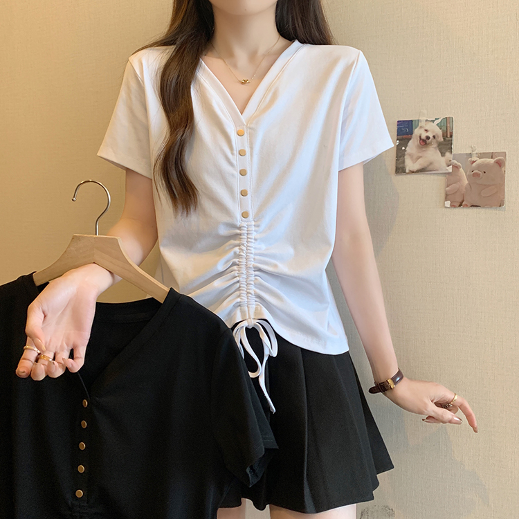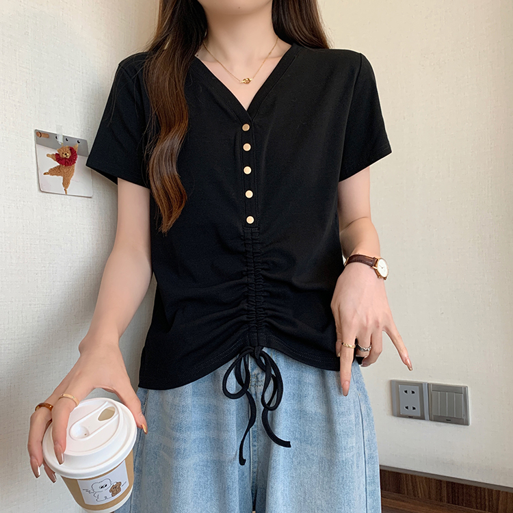 RY70111# 实拍大码不规则褶皱短袖t恤女夏胖MM宽松遮肉设计感小众辣妹上衣