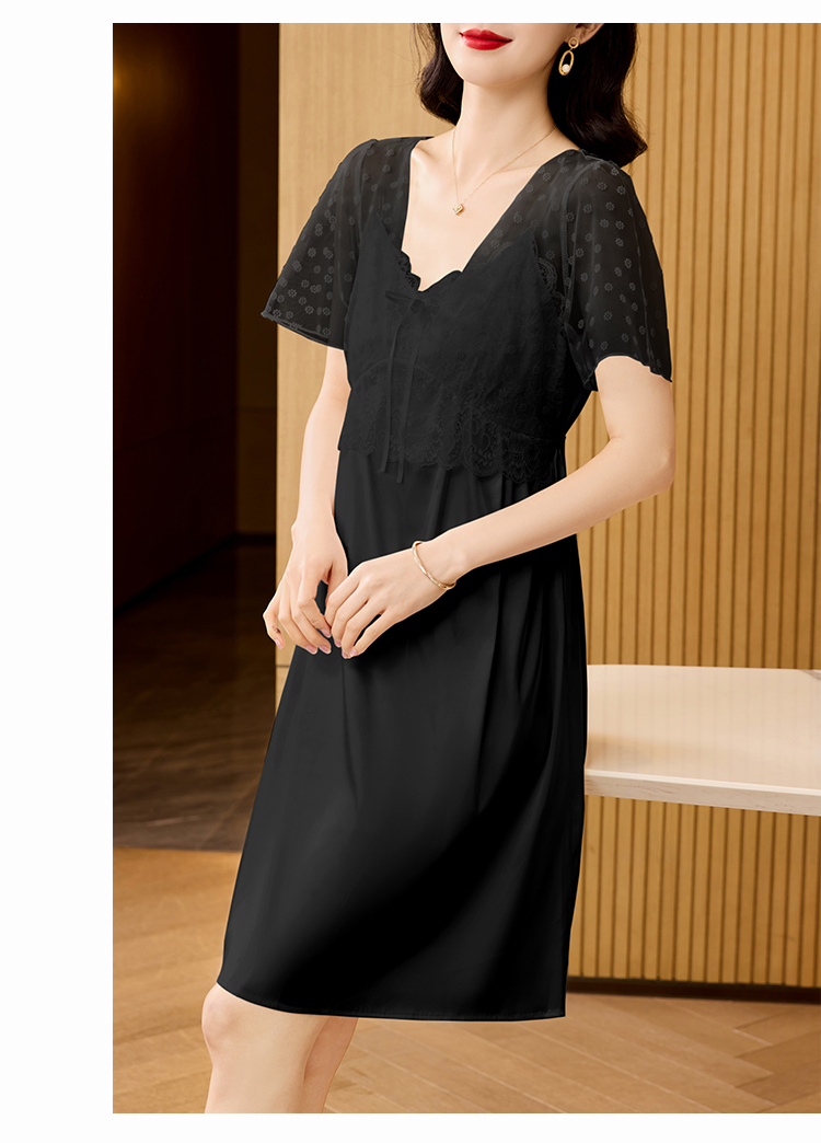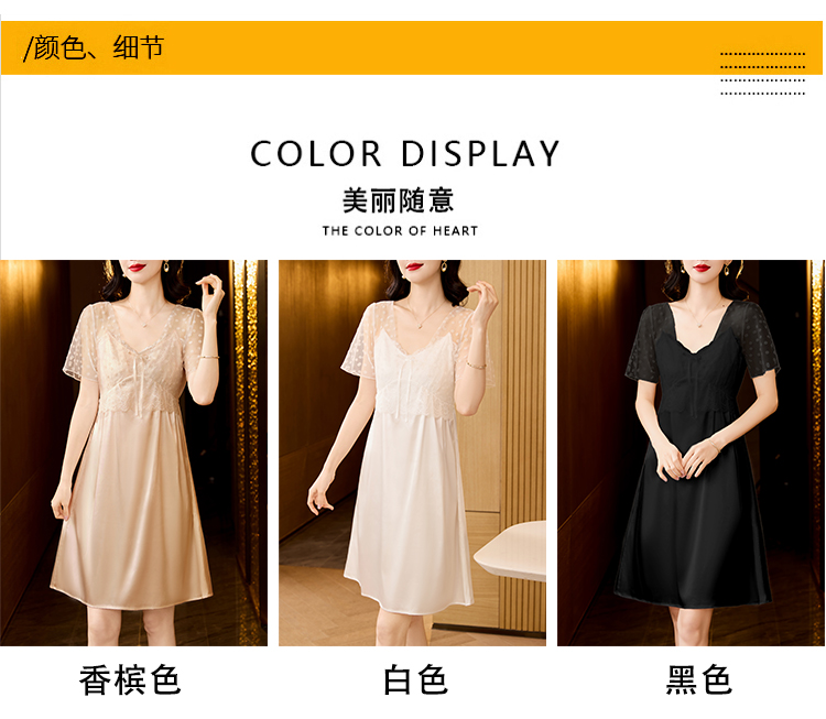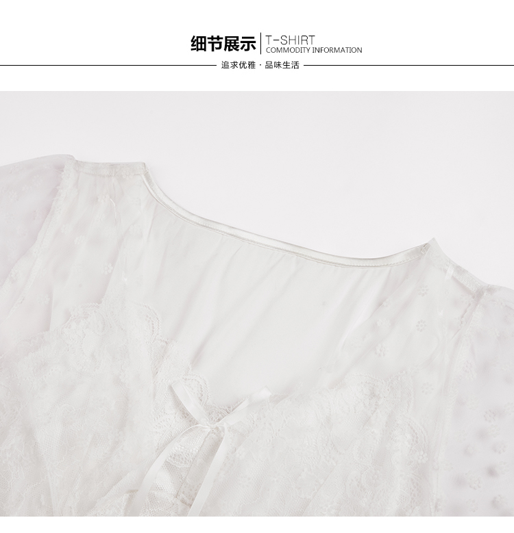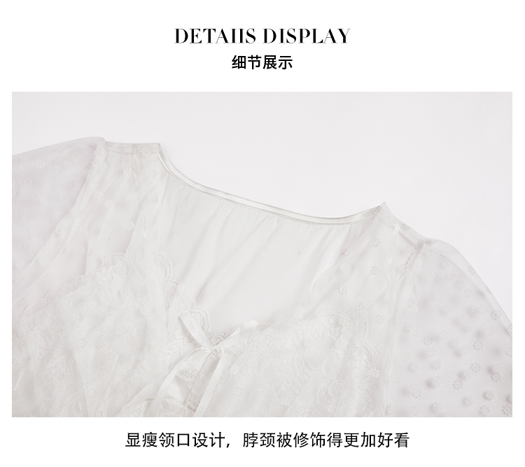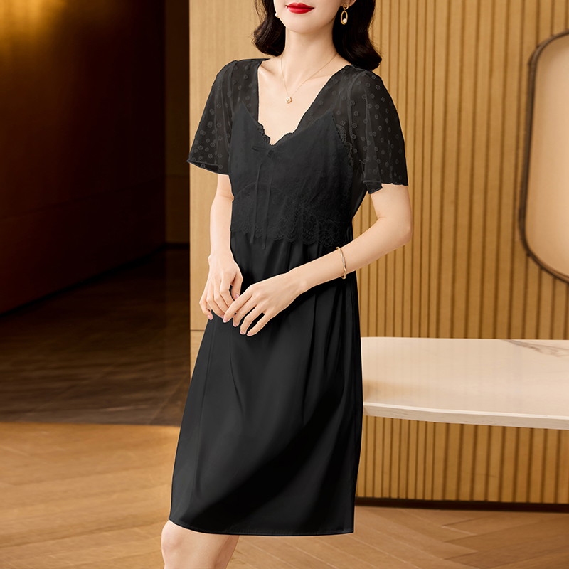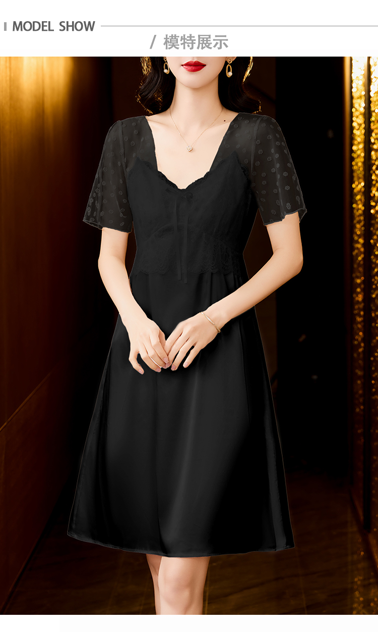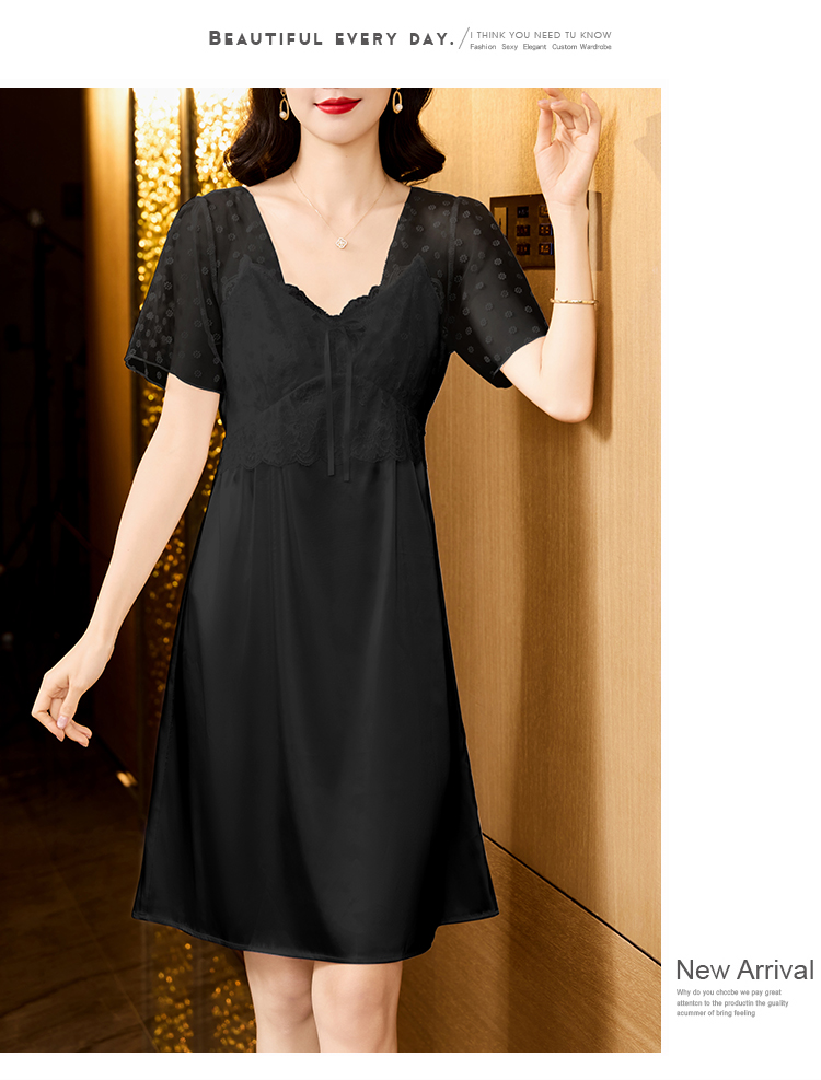 RY70112# 实拍2026新款夏甜美V领蕾丝刺绣网纱飞飞袖带胸垫短袖冰丝睡裙女