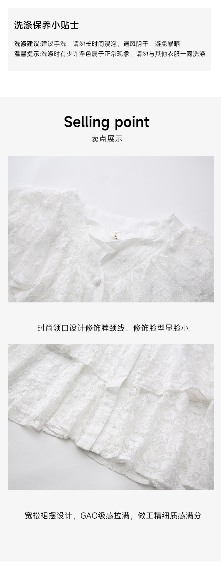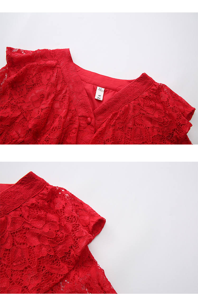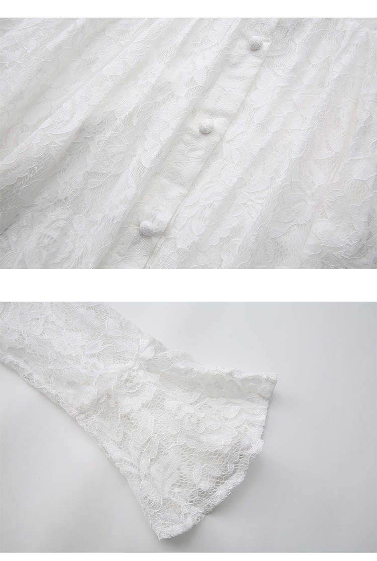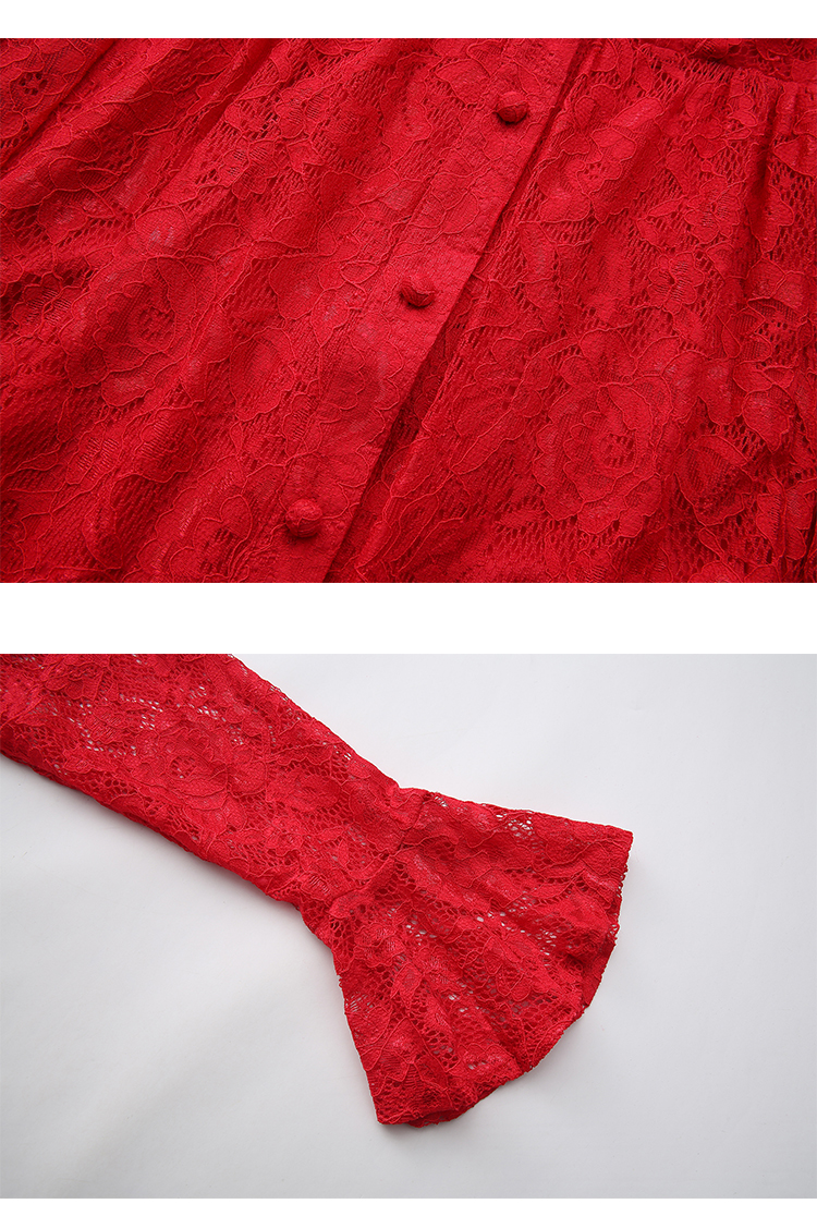 RY70120# 春新款复古蕾丝荷叶边喇叭袖长款连衣裙
