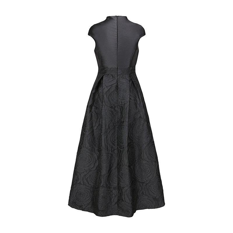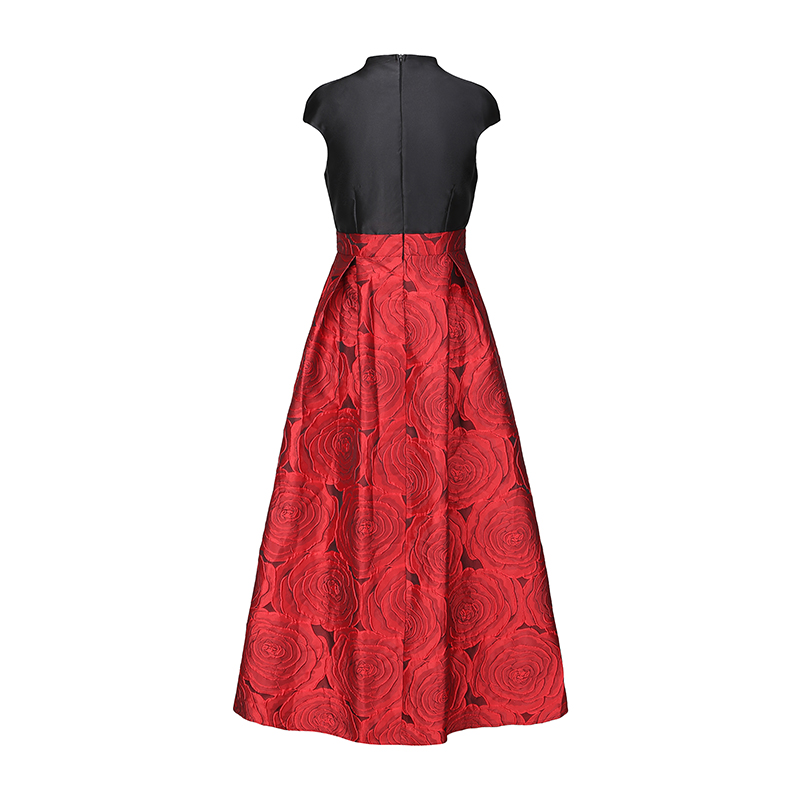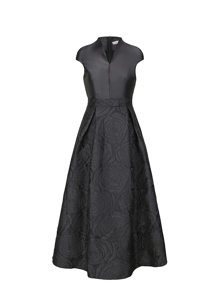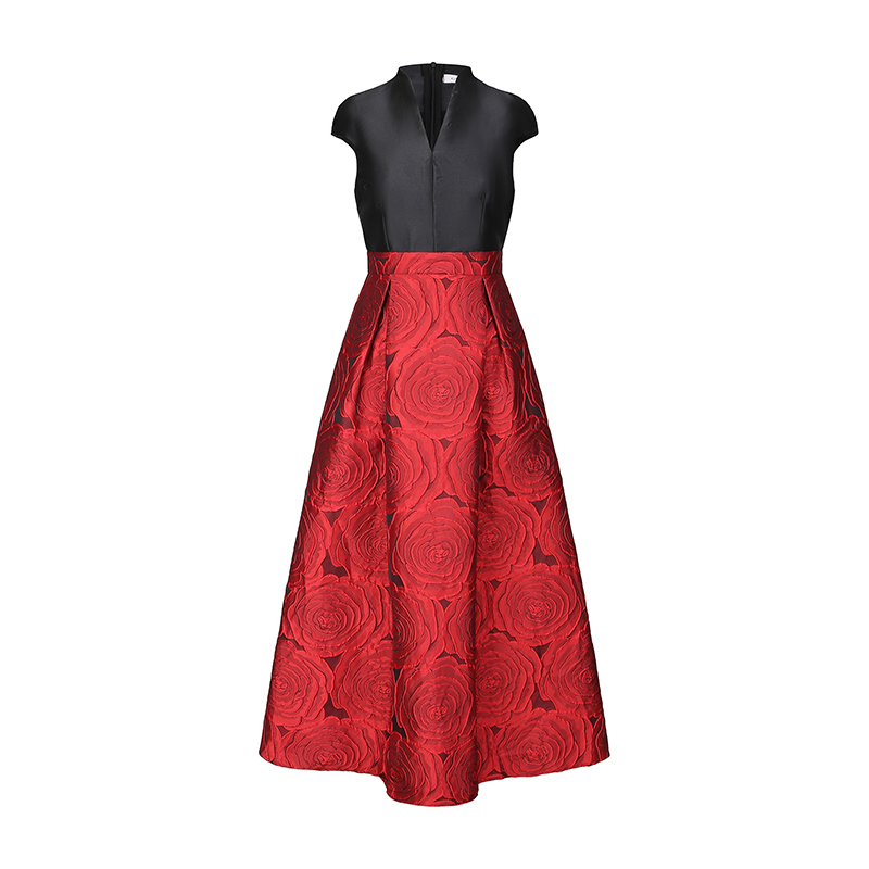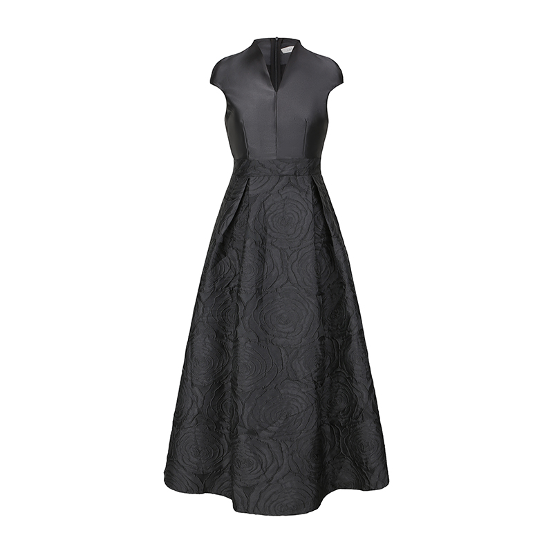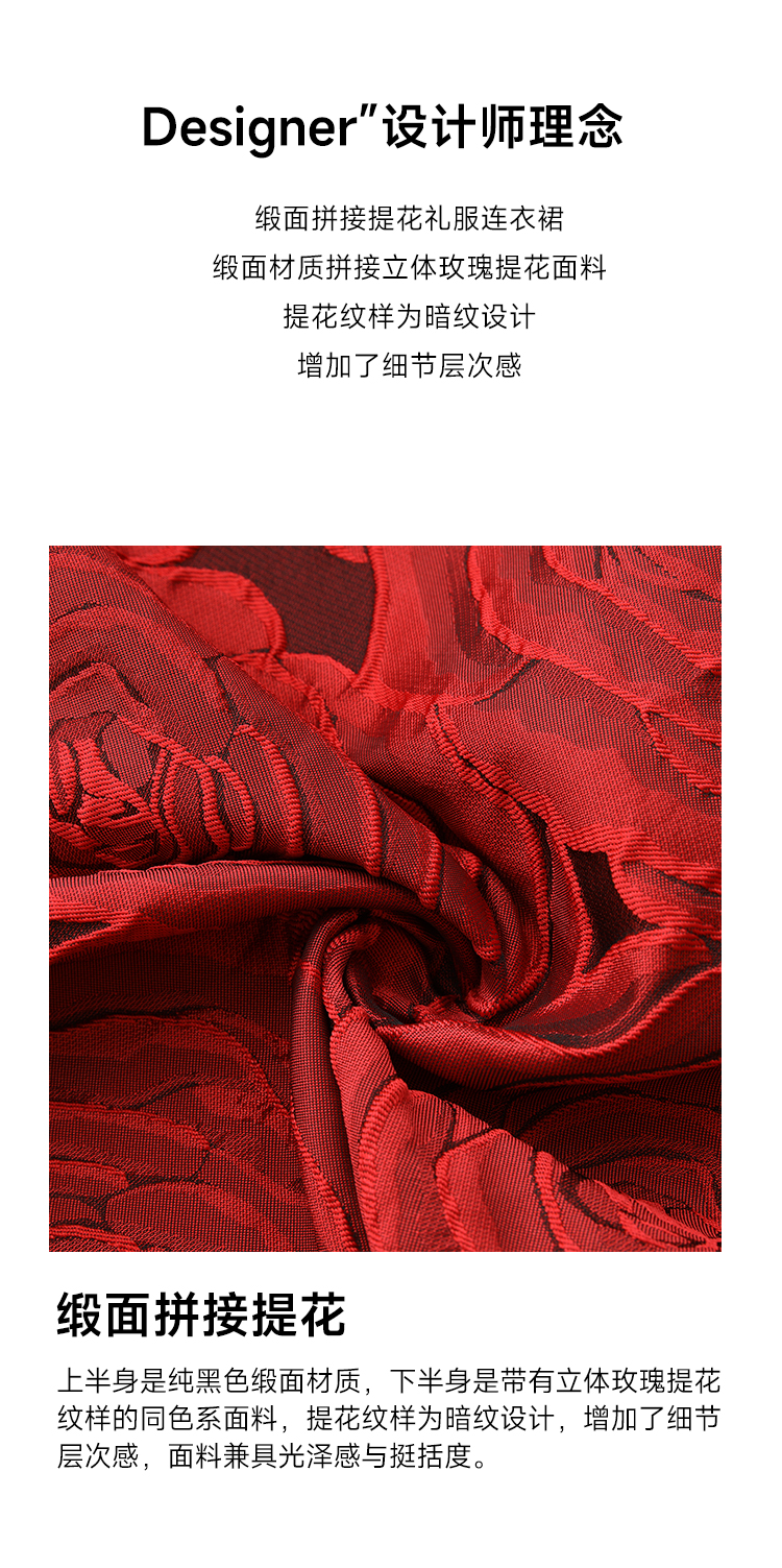 RY70123# 春新款高贵优雅V领拼接提花婚宴礼服连衣裙