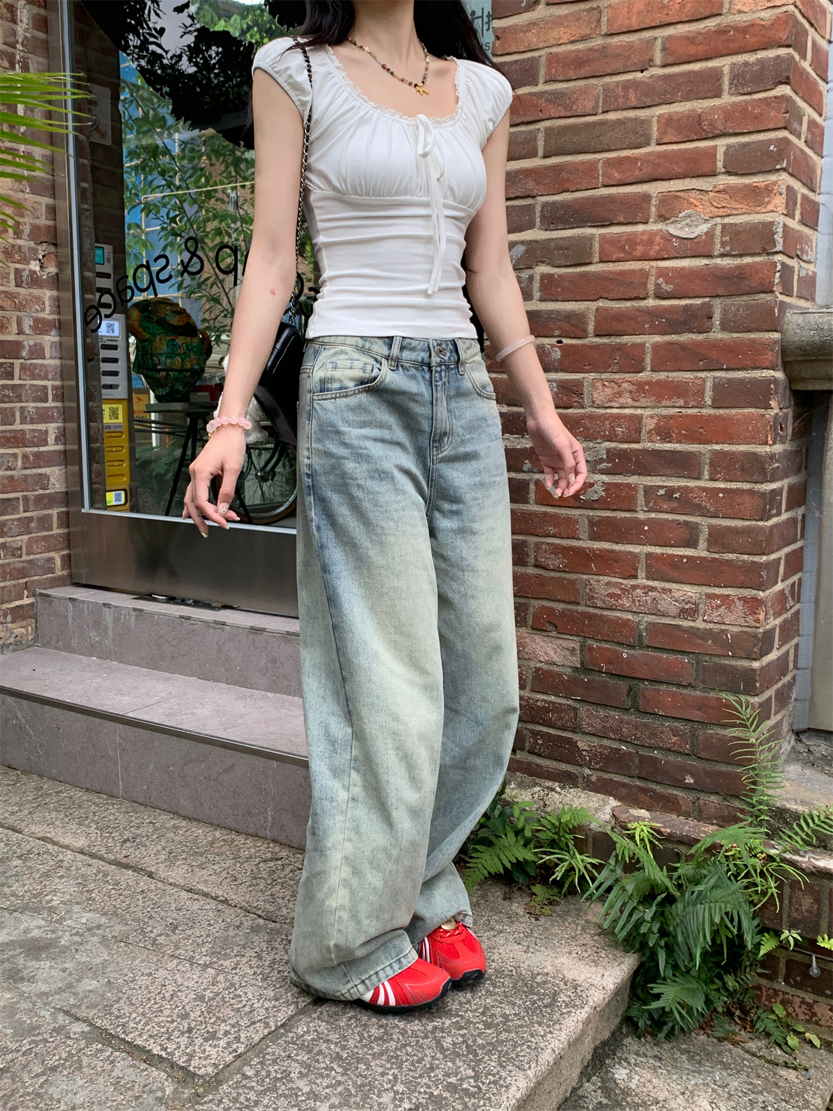 RM31855#新款美式复古高腰设计感毛边宽松显瘦牛仔阔腿裤女