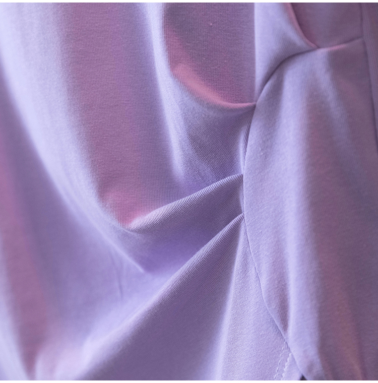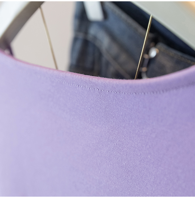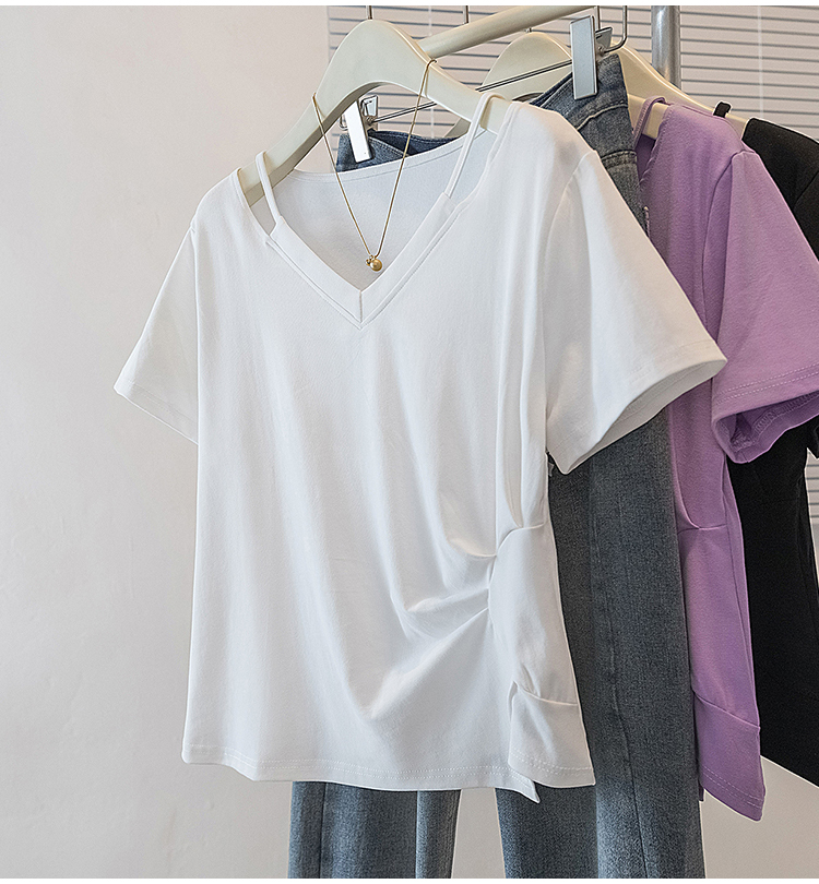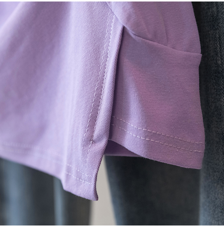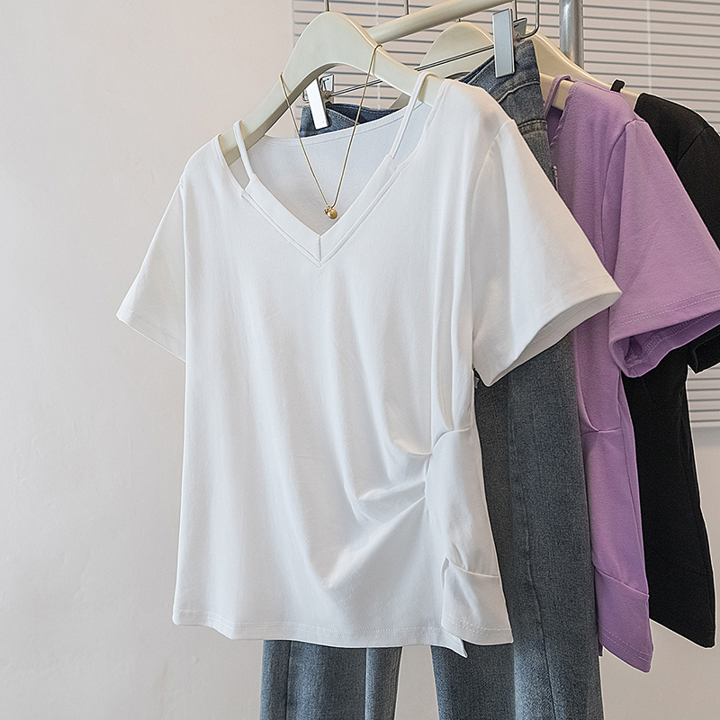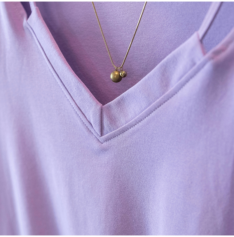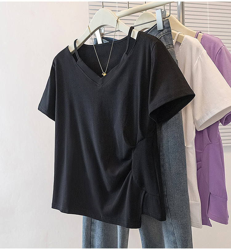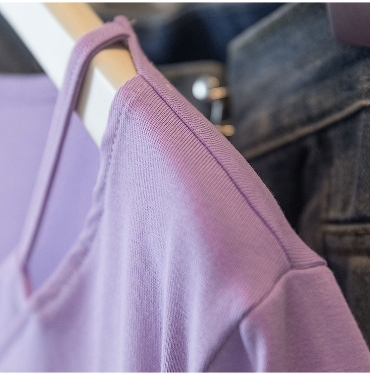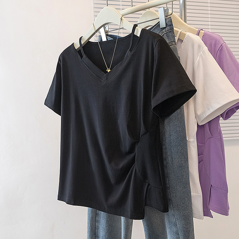 RY70142# 实拍大码女装韩版流行紫色V领短袖t恤夏胖妹妹宽松显瘦休闲上衣潮