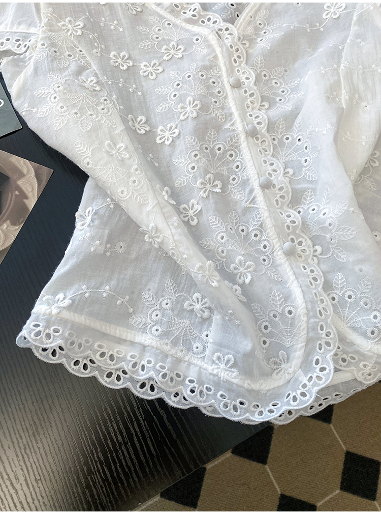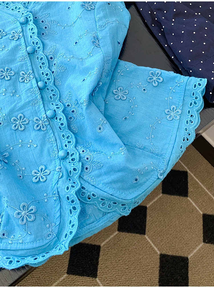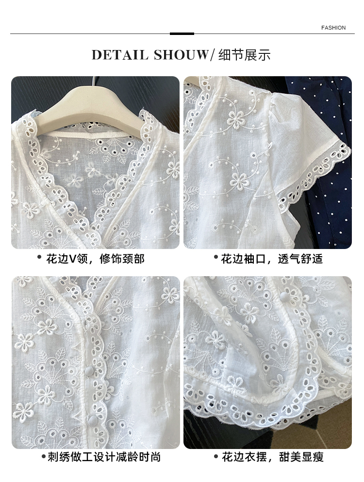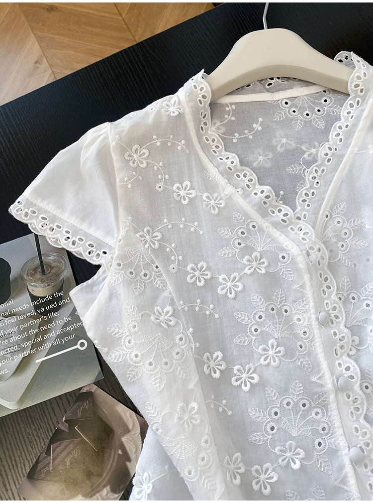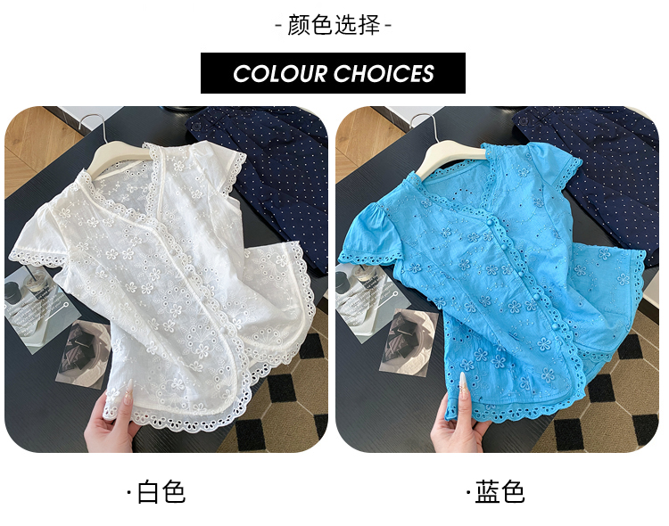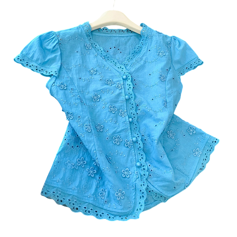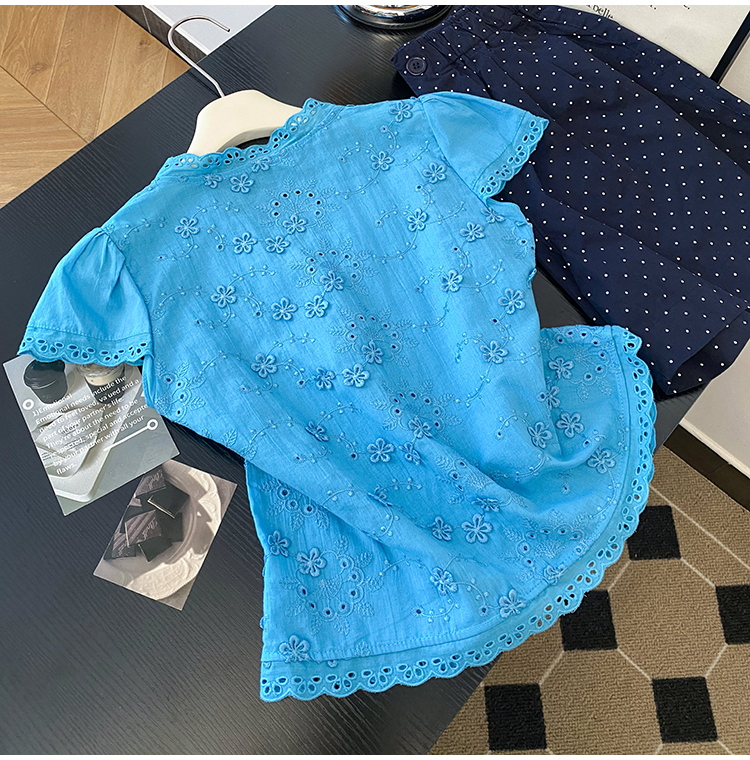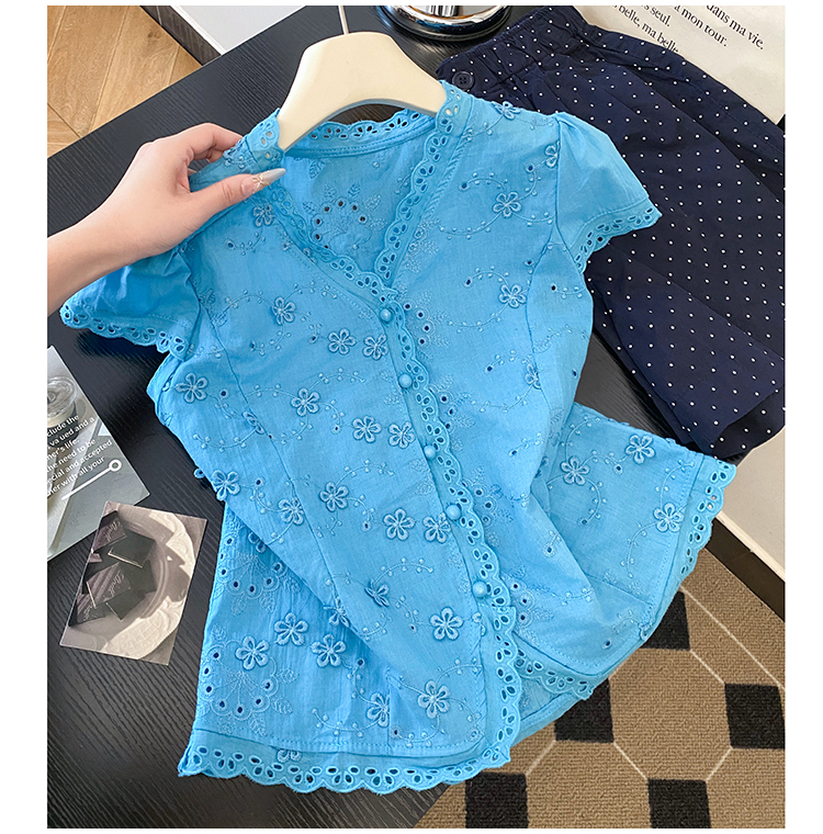 RY70148# 韩系蕾丝碎花刺绣短袖衬衫女夏季新款小众设计感减龄短款上衣2025