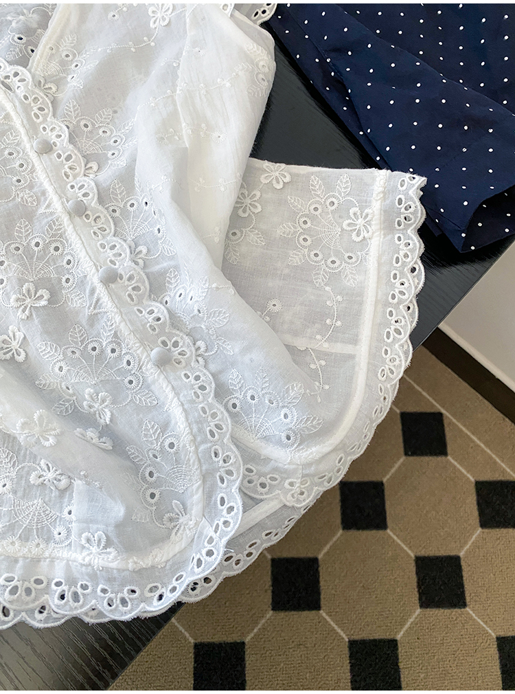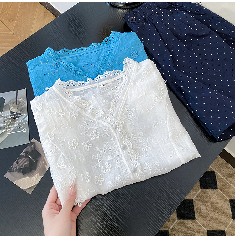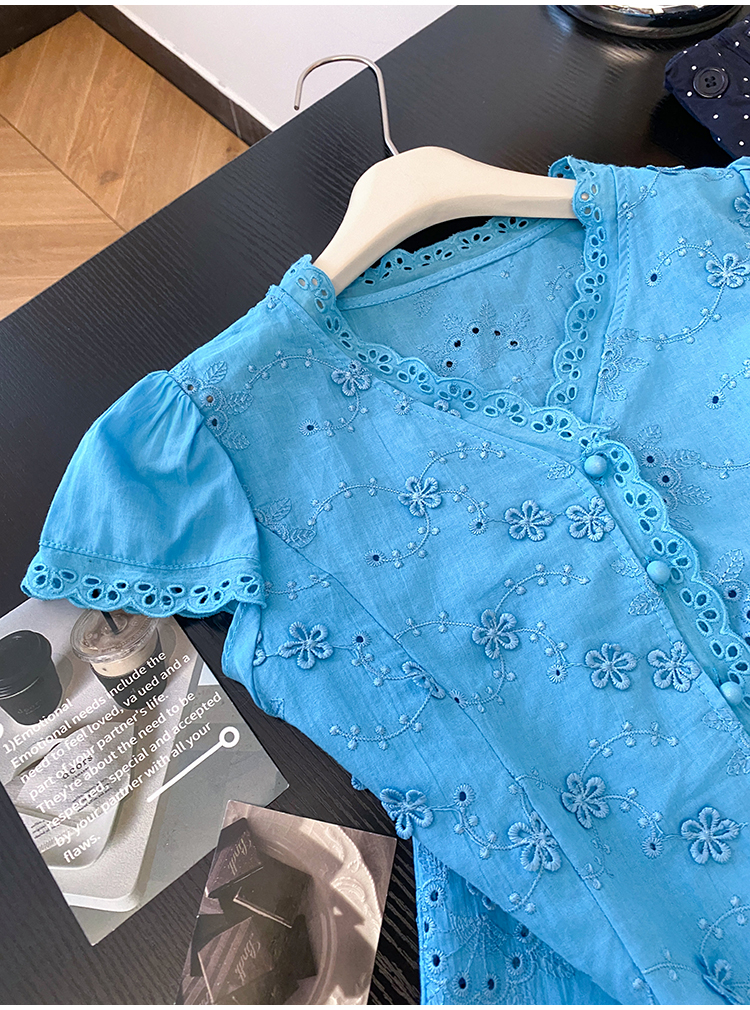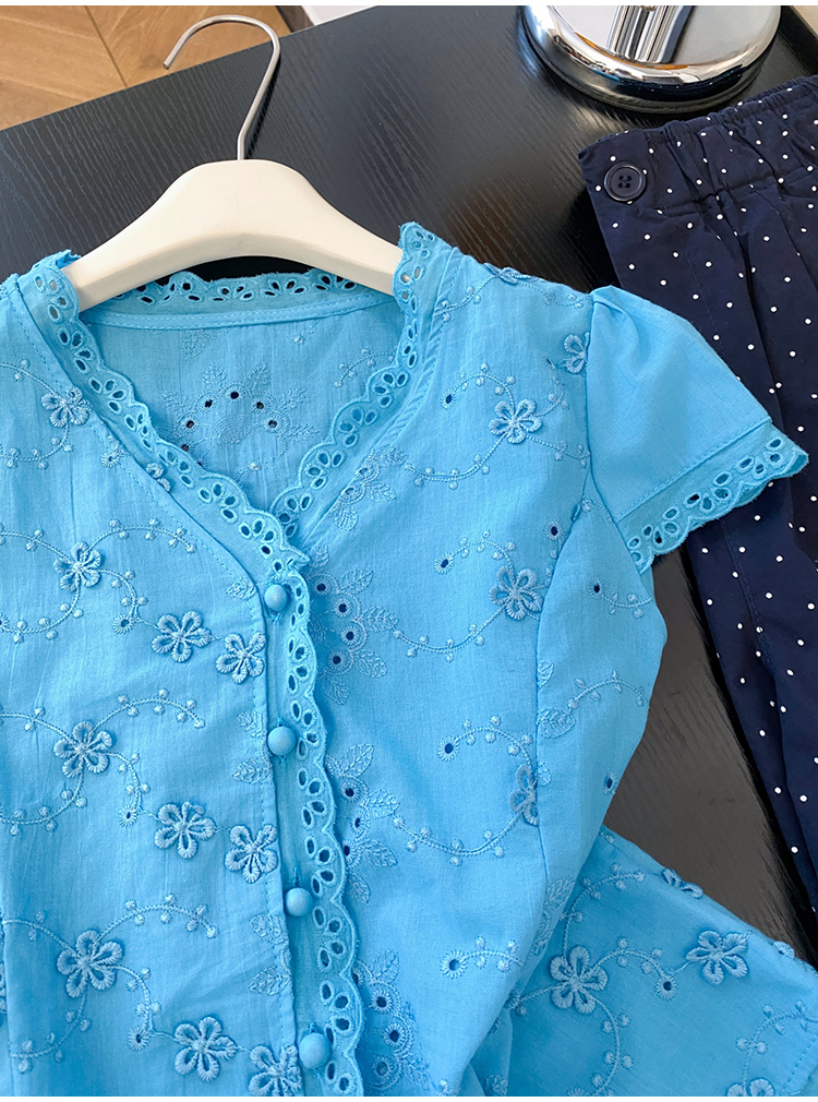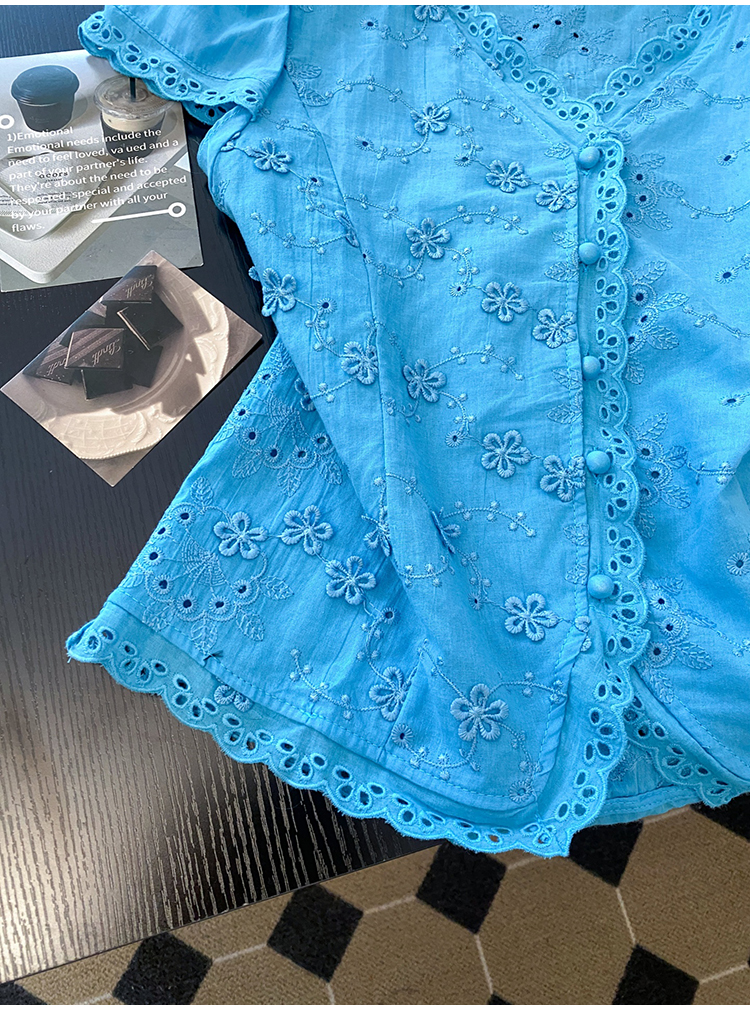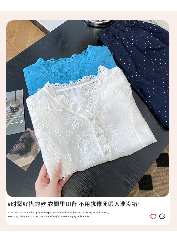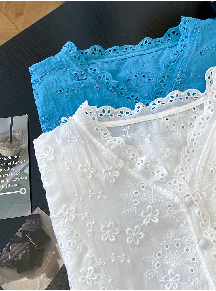 RY70148# 韩系蕾丝碎花刺绣短袖衬衫女夏季新款小众设计感减龄短款上衣2025