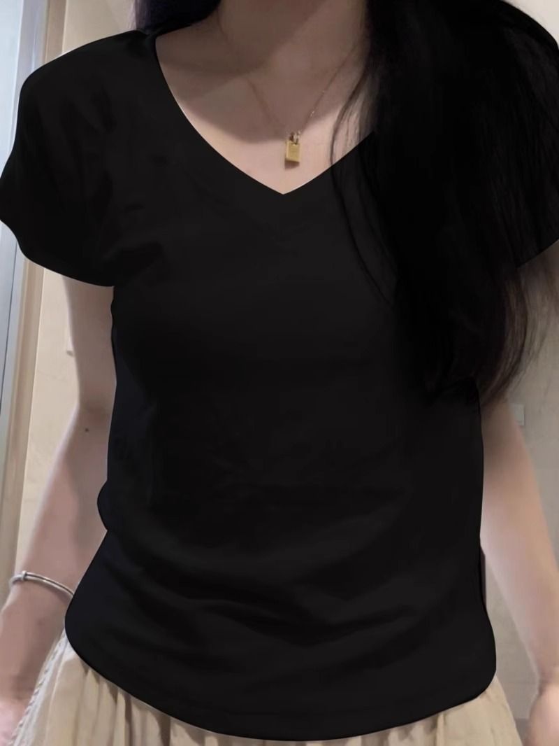 RY70156# 纯棉 夏季短袖修身纯色T恤女