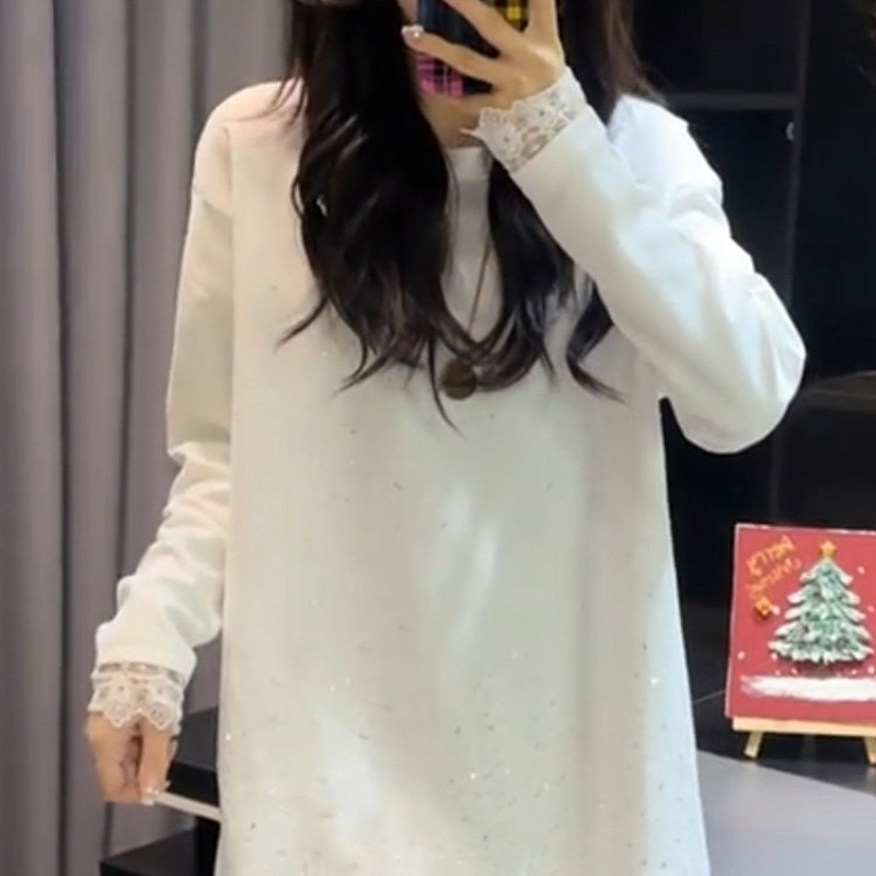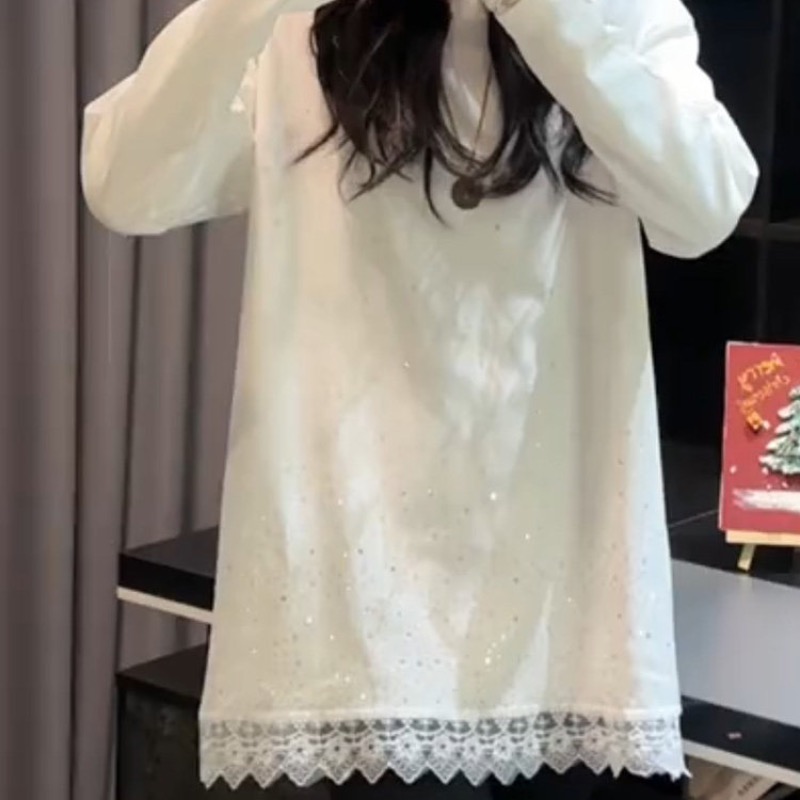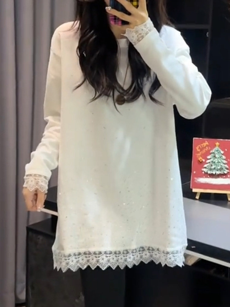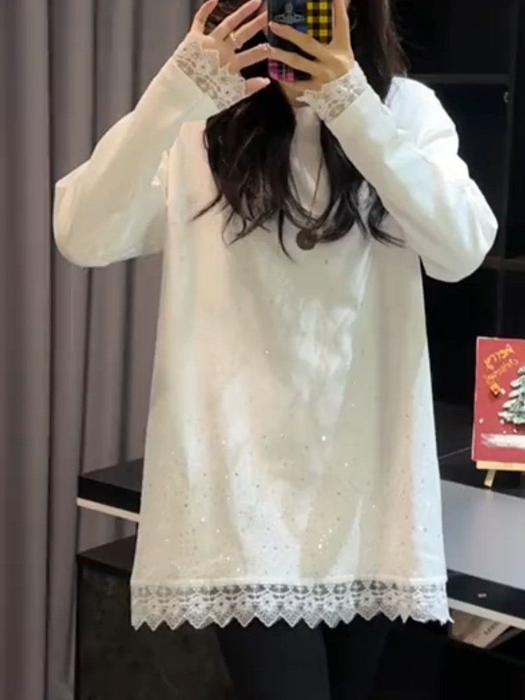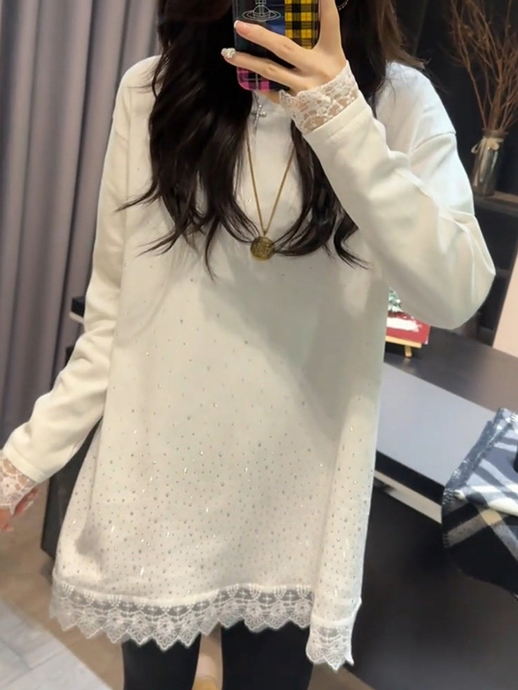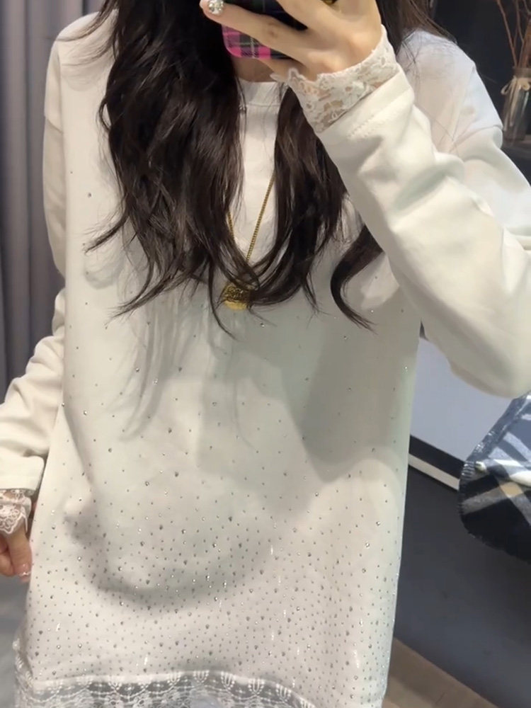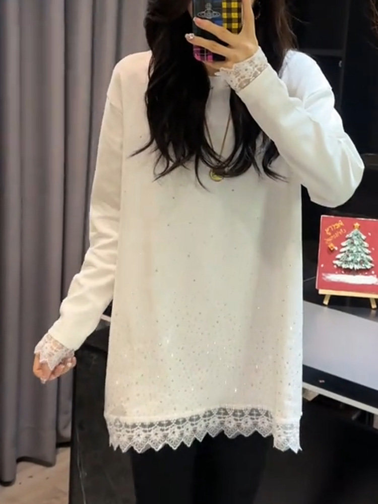 RY73# 欧货重工镶钻蕾丝拼接针织衫秋冬新款宽松中长款打底衫
