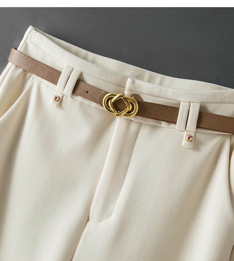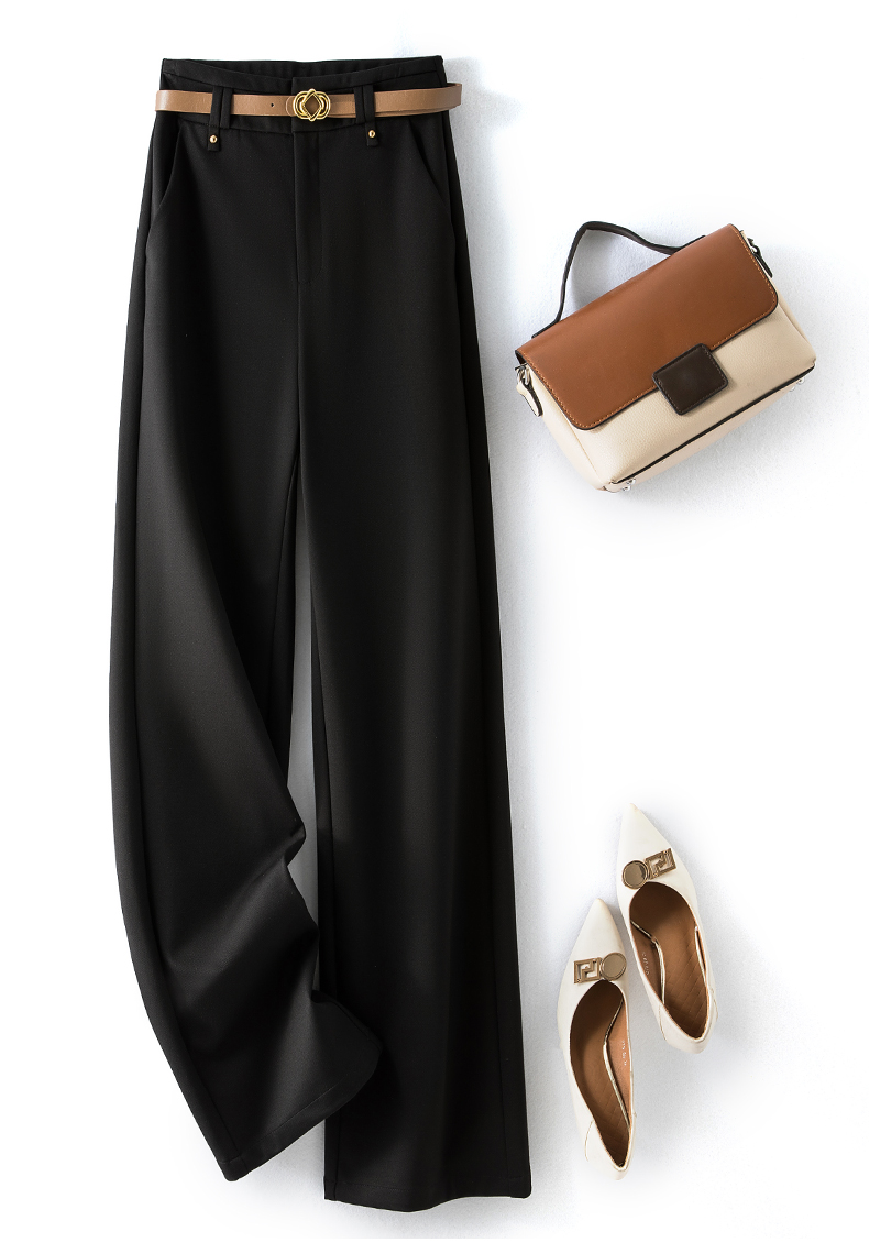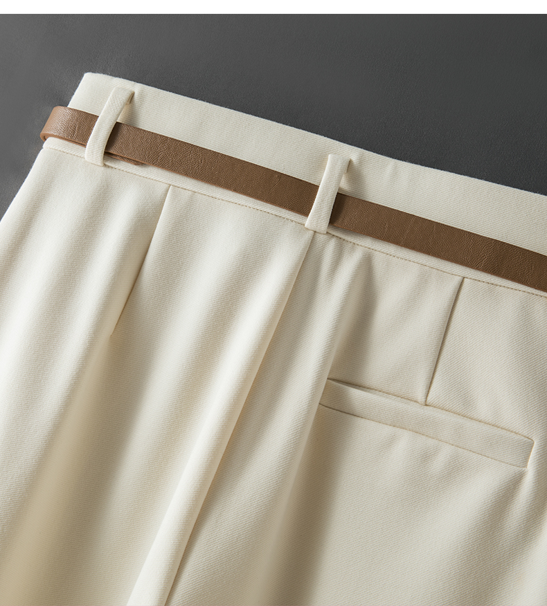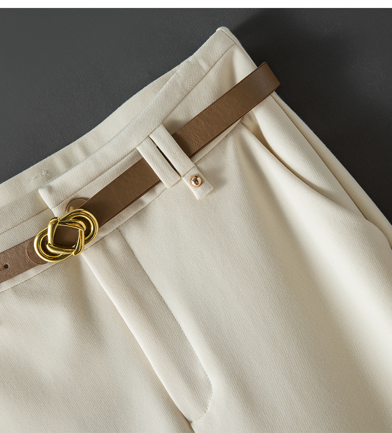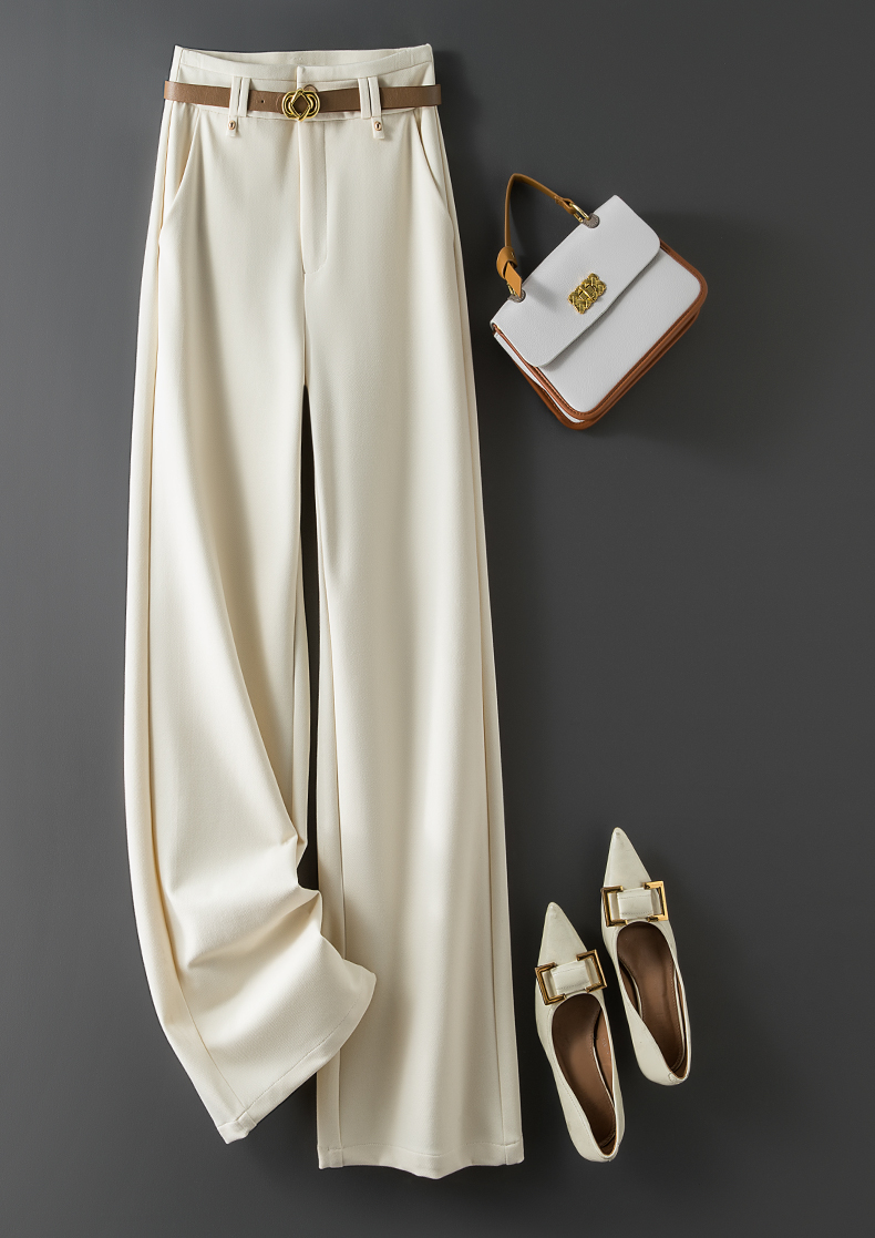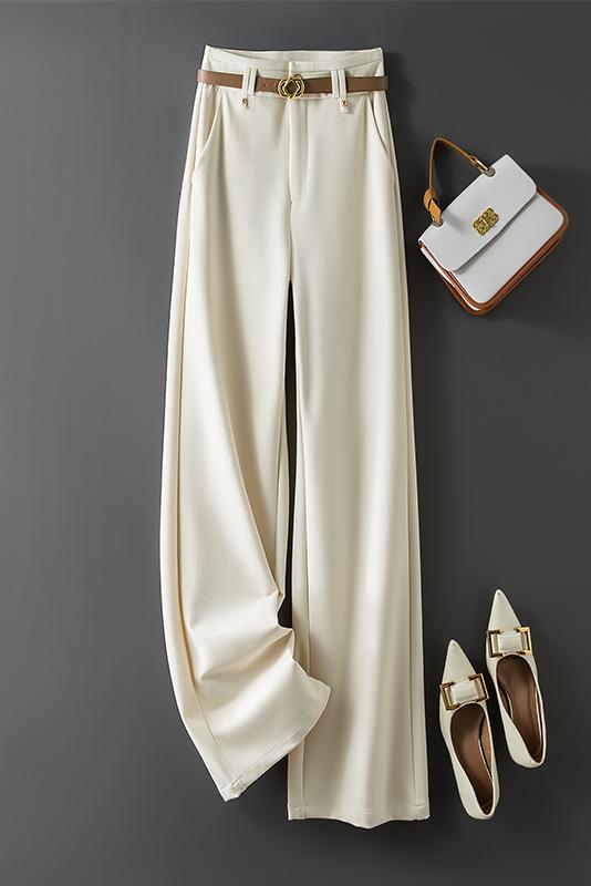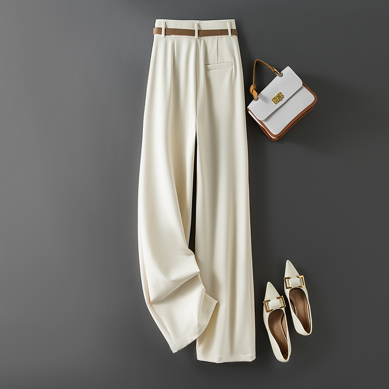 RY95# 米白色窄版阔腿裤女春秋新款高腰垂坠感直筒宽松休闲西装裤长裤