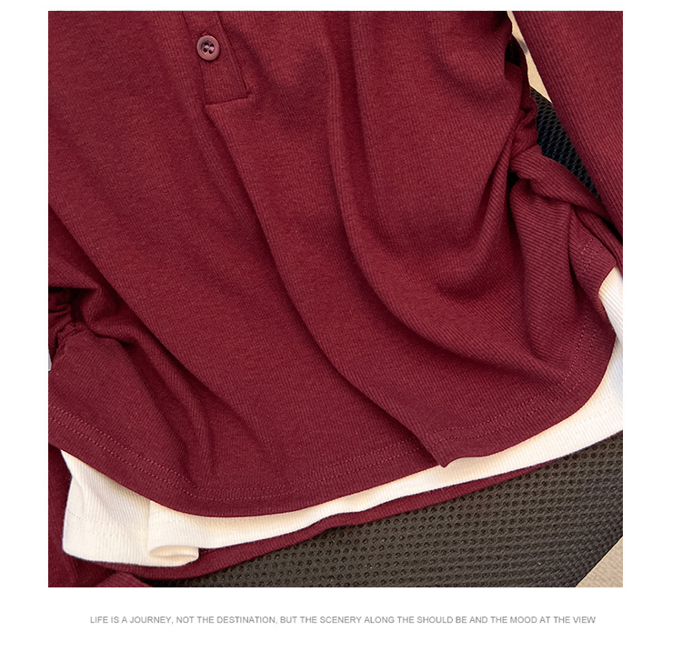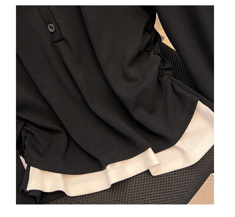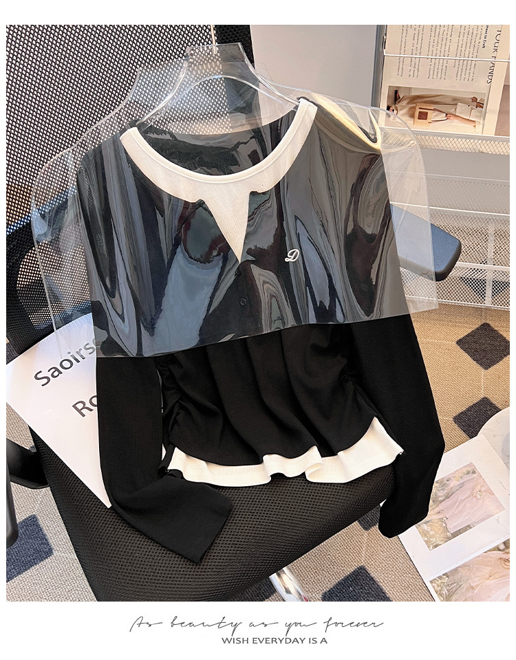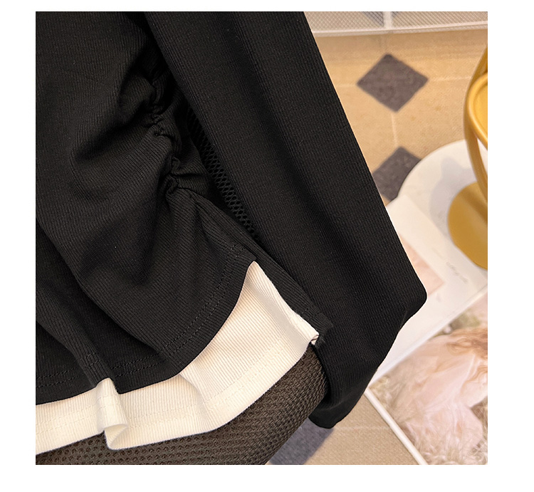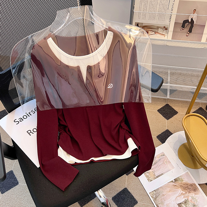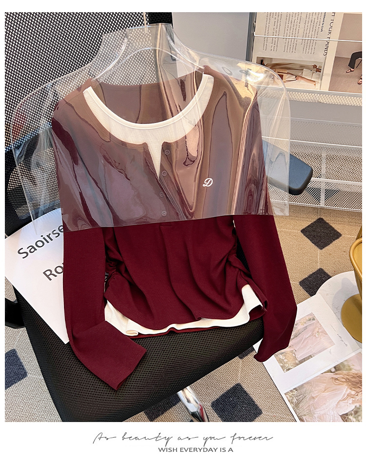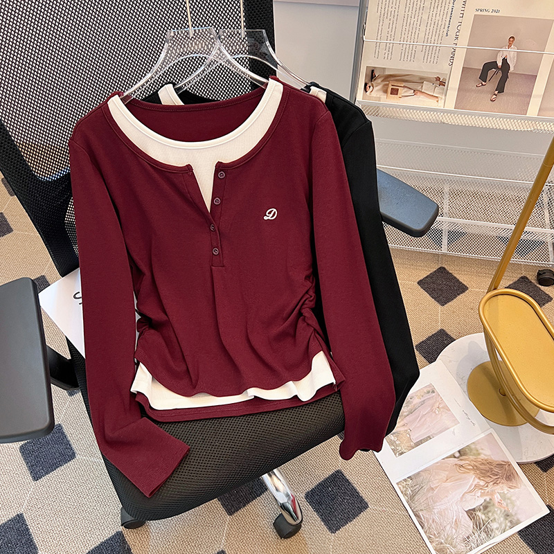 RY200# 实拍2026新款假两件撞色长袖T恤女收腰百搭圆领标准上衣