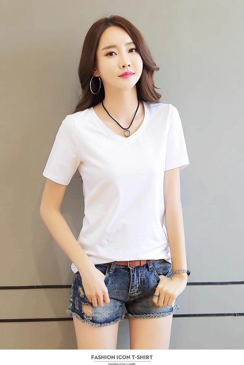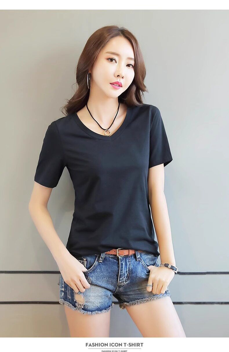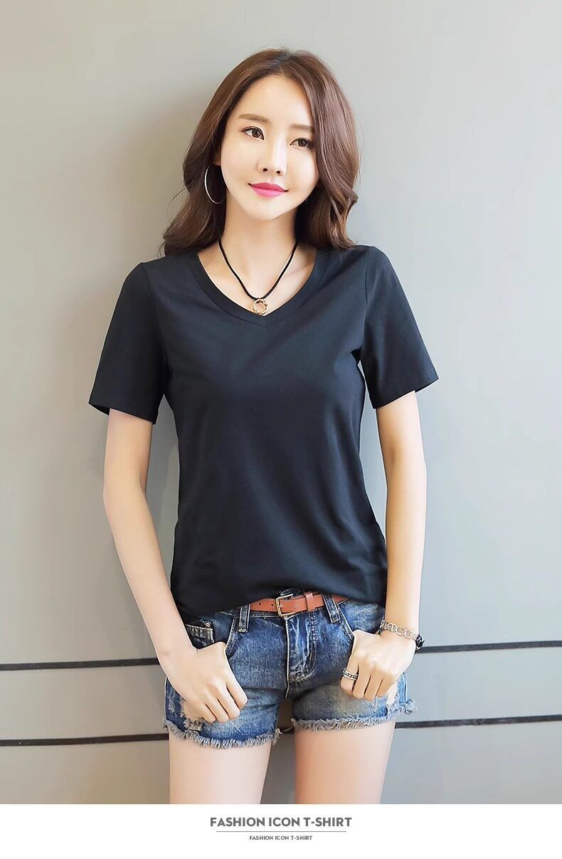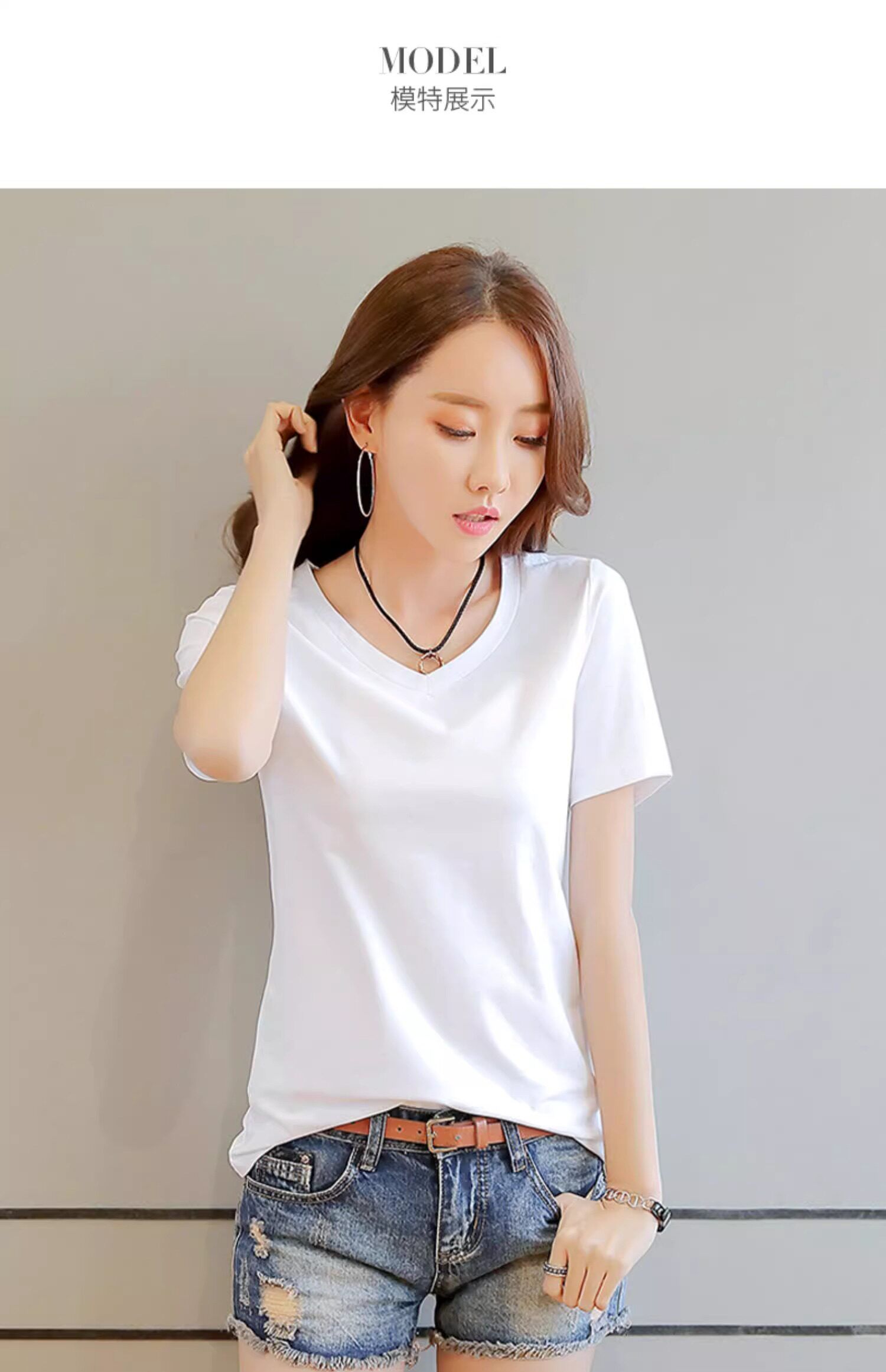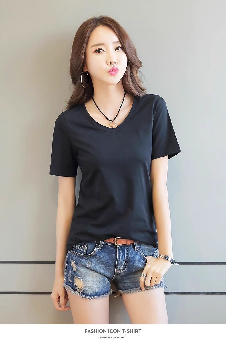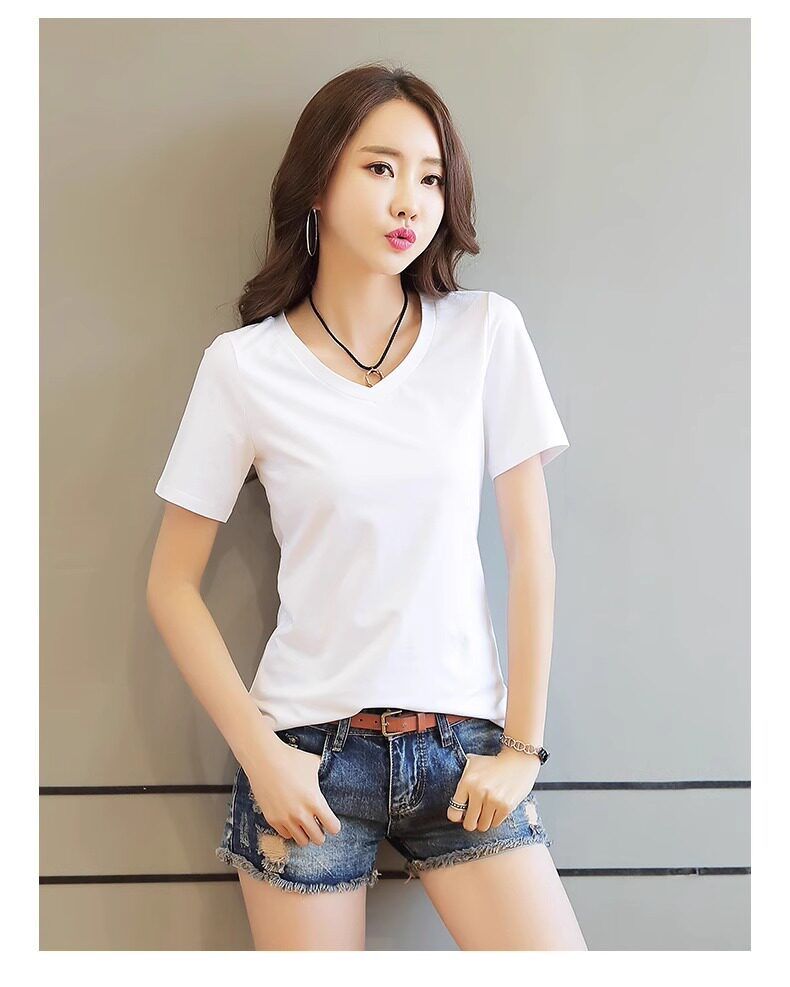 RY348# 韩版 纯棉正肩短袖t恤女夏季新款v领打底衫内搭时尚上衣