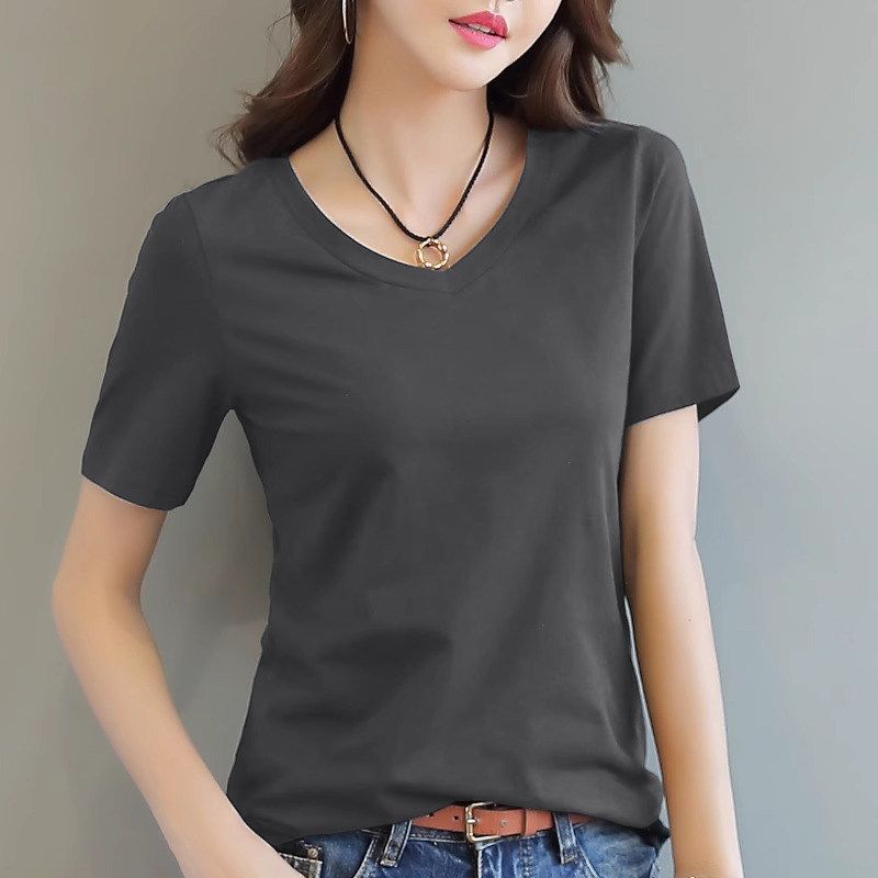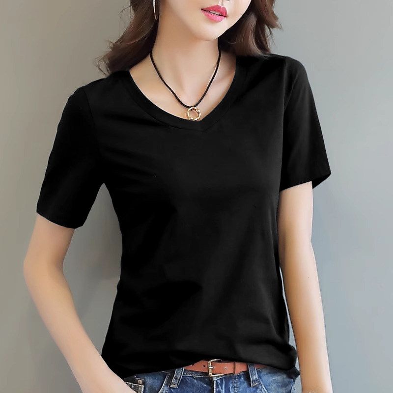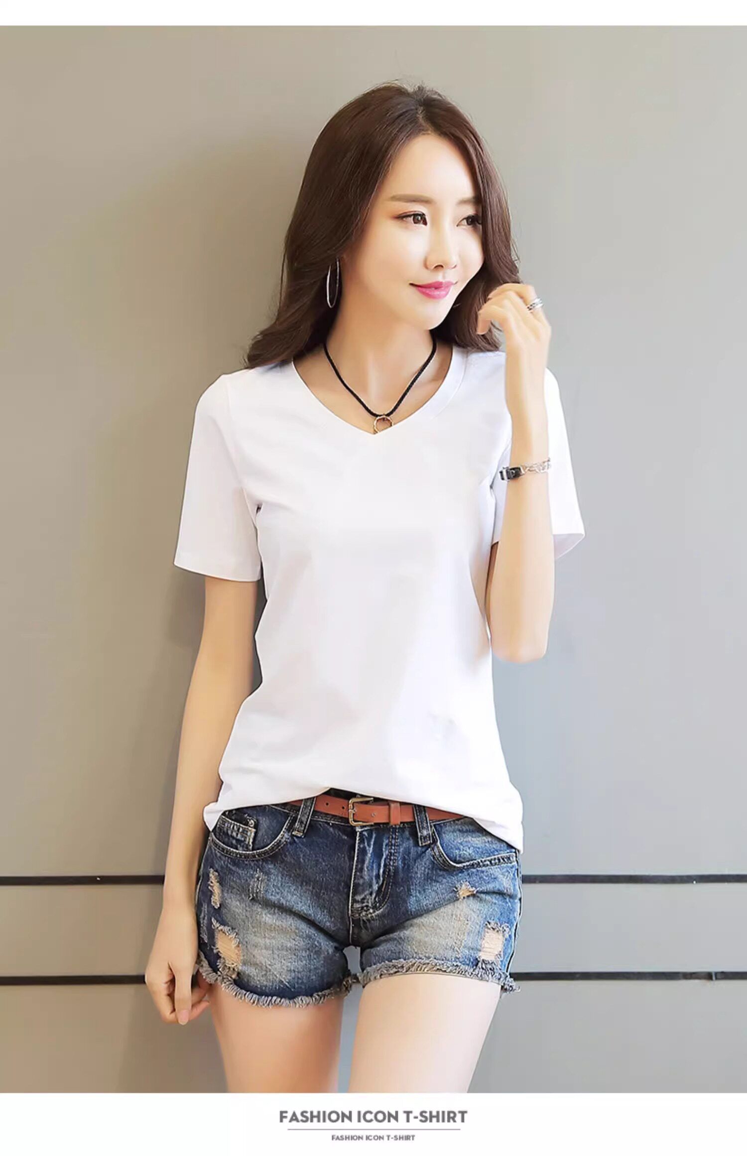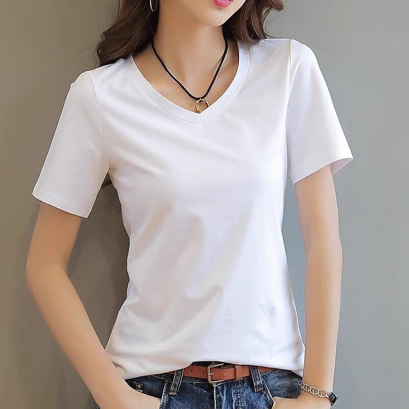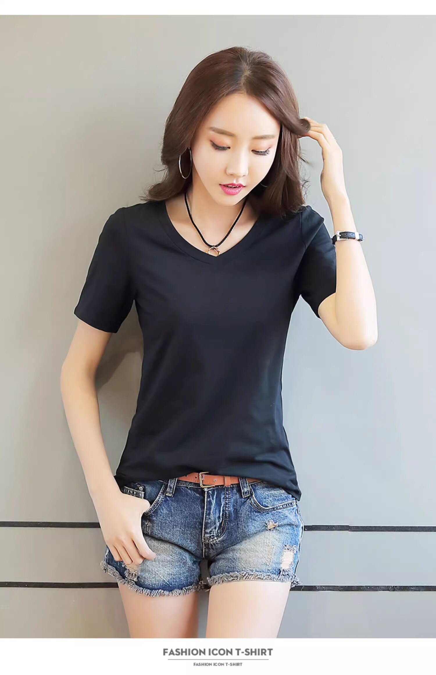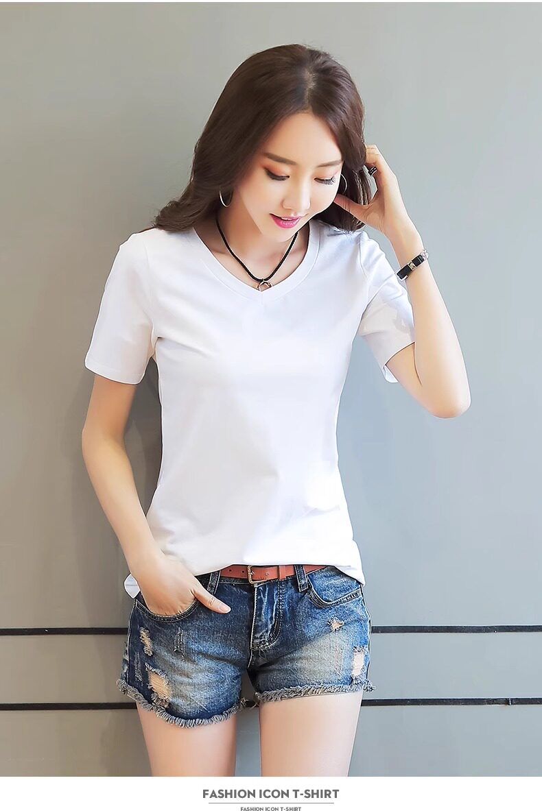 RY348# 韩版 纯棉正肩短袖t恤女夏季新款v领打底衫内搭时尚上衣