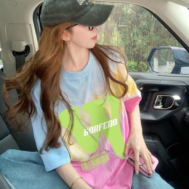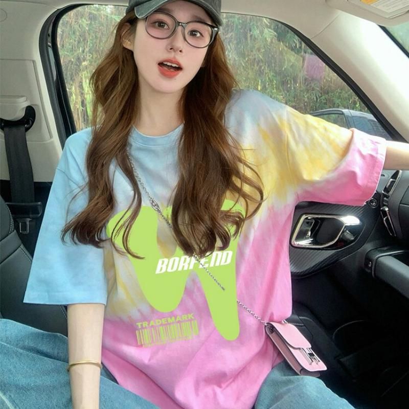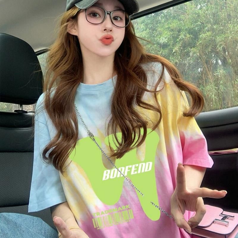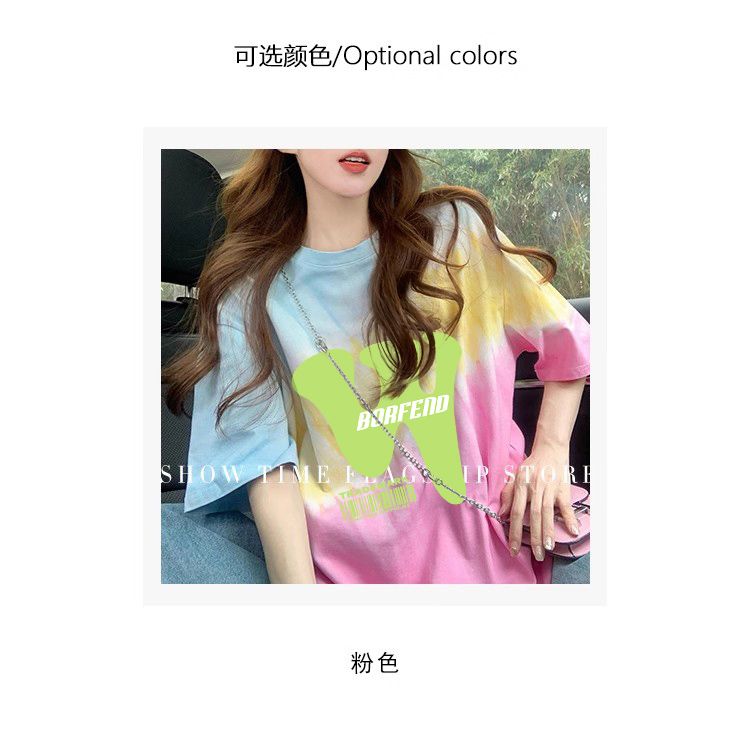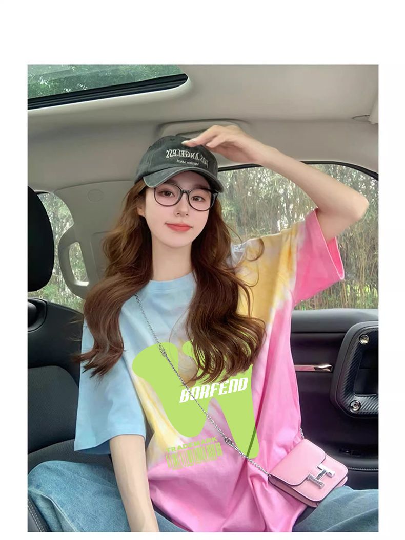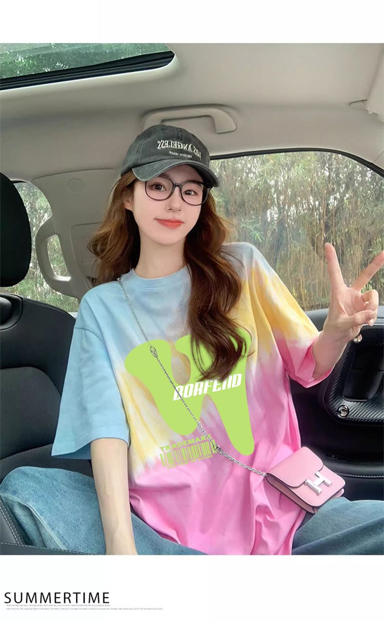 RY351# 纯棉/后包领宽松短袖t恤女原宿风中长款减龄显瘦上衣ins