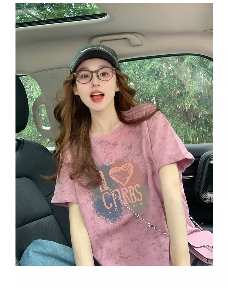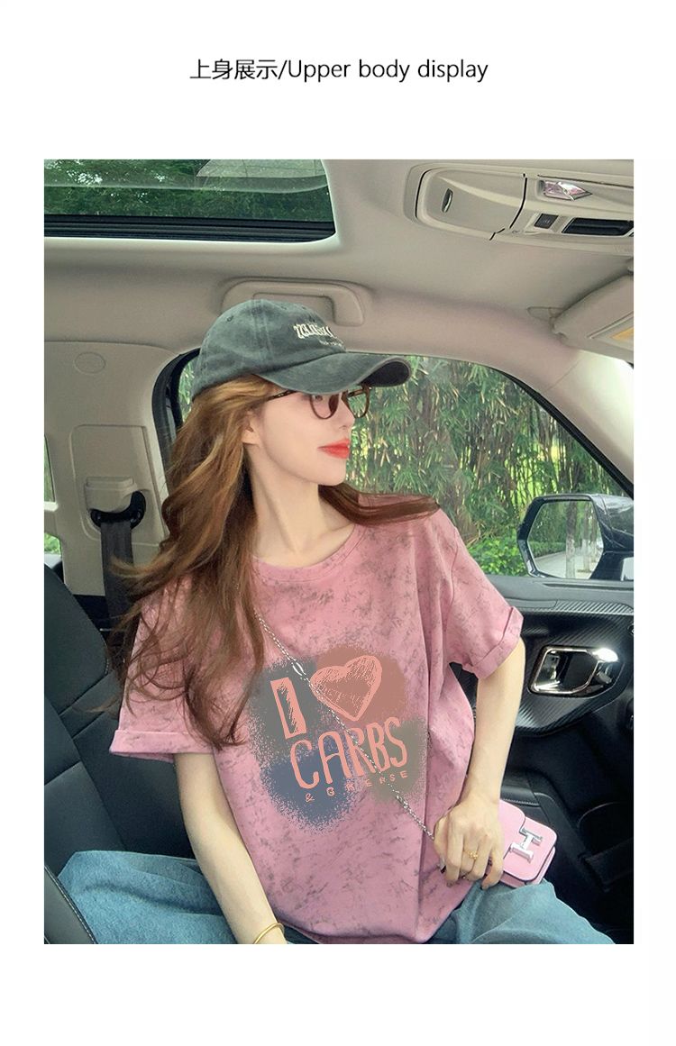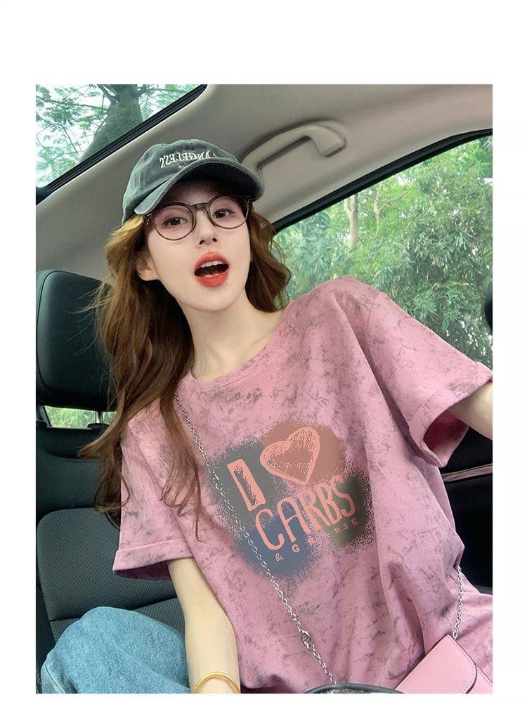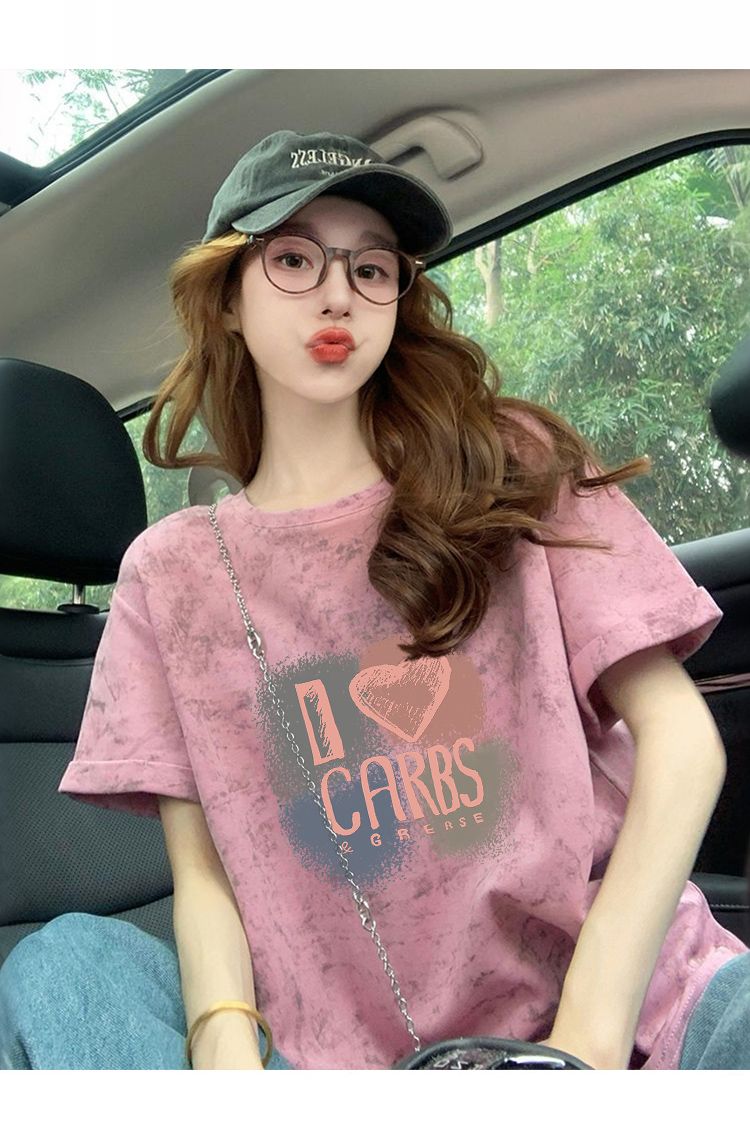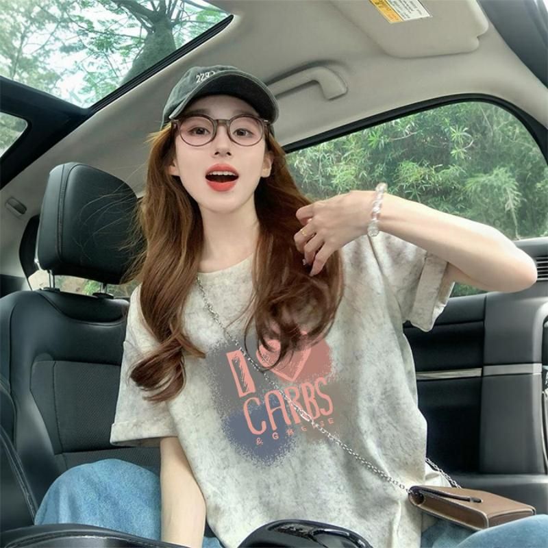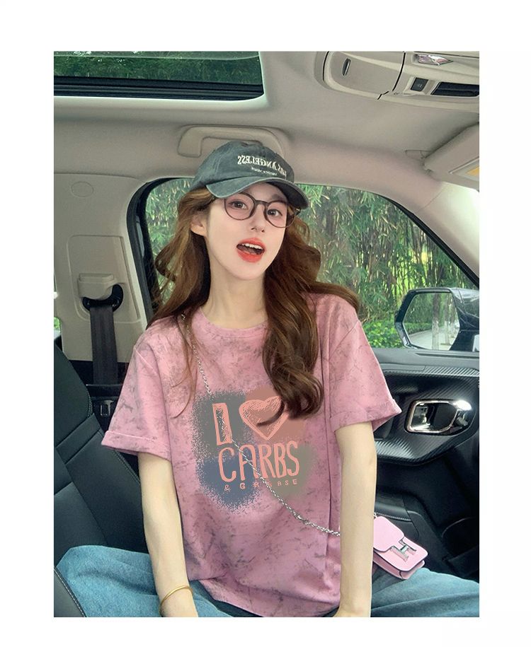RY352# 后包领宽松扎染T恤女夏季新款泼墨减龄显瘦百搭上衣潮