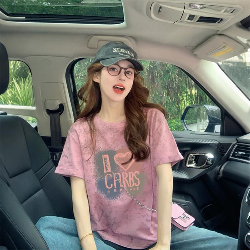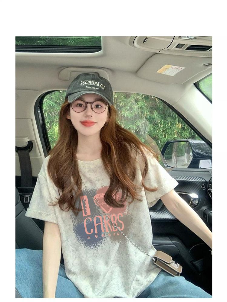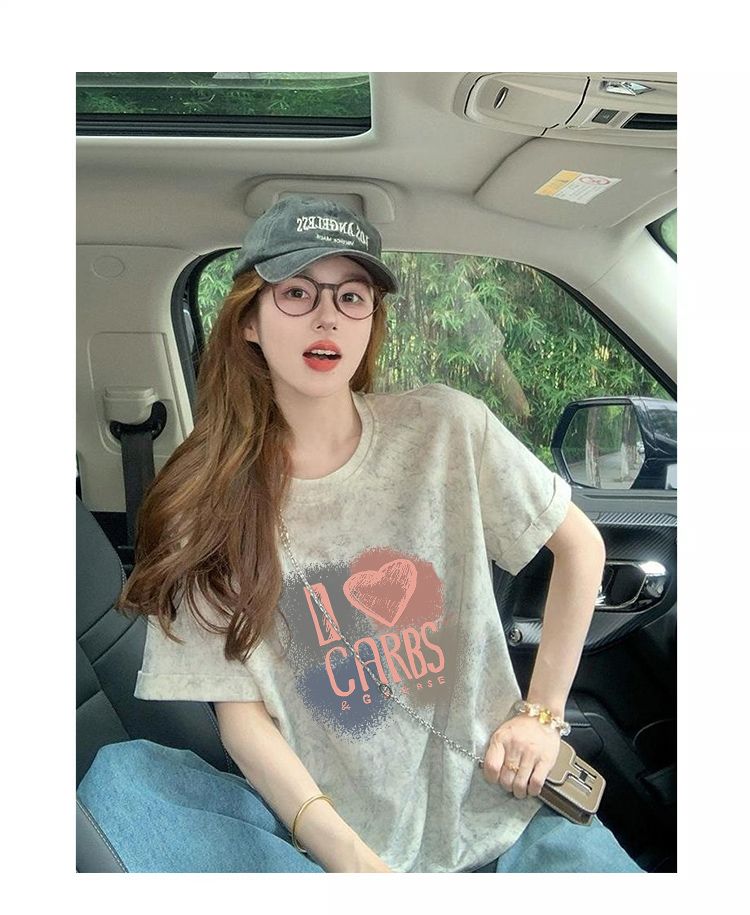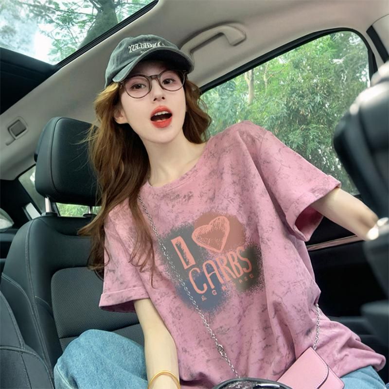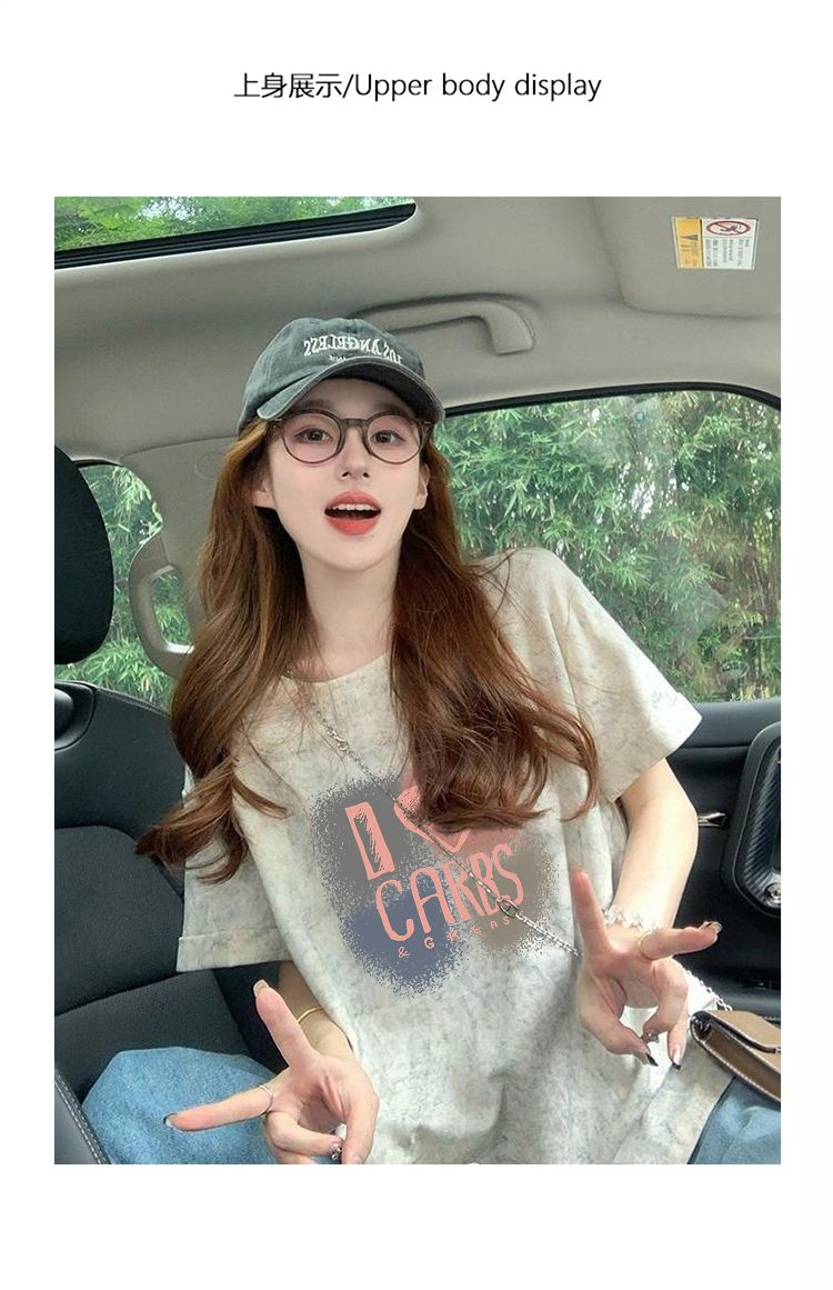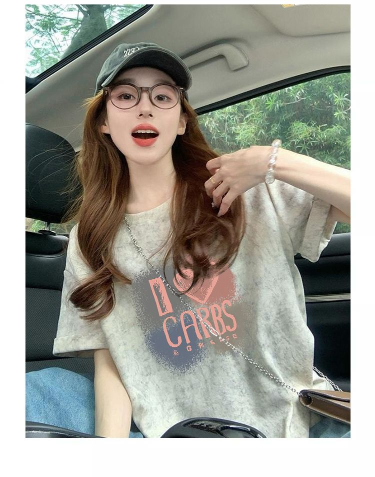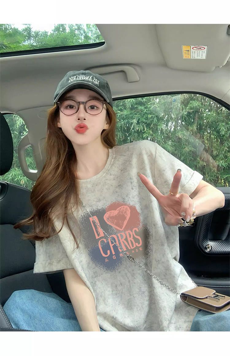 RY352# 后包领宽松扎染T恤女夏季新款泼墨减龄显瘦百搭上衣潮