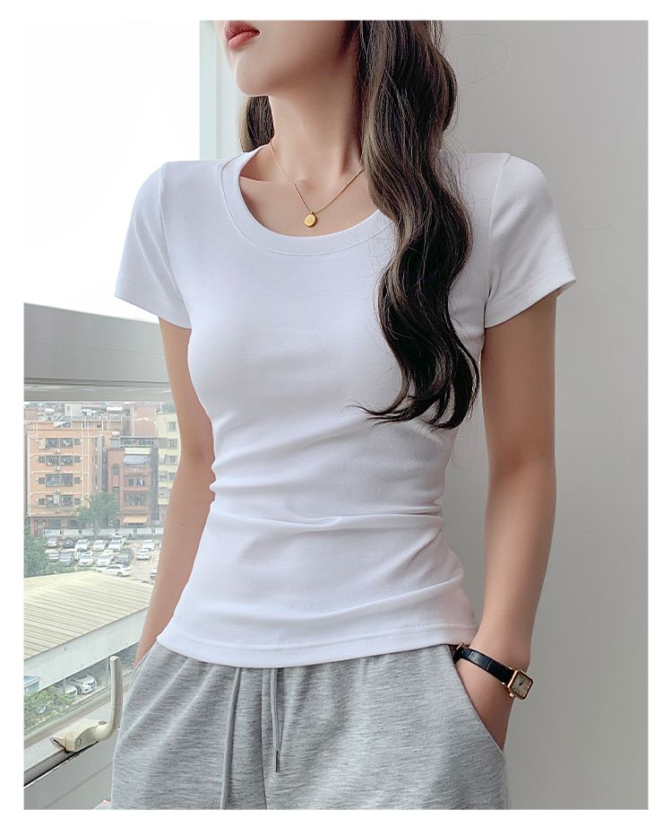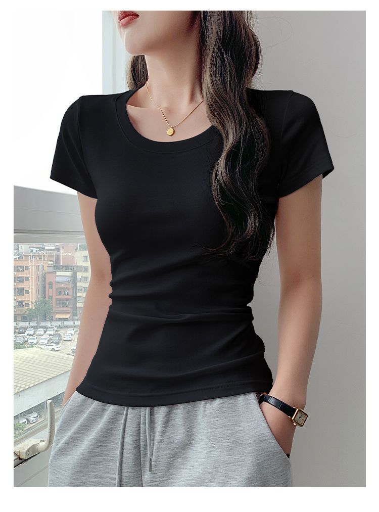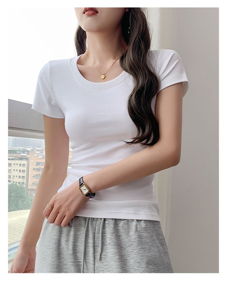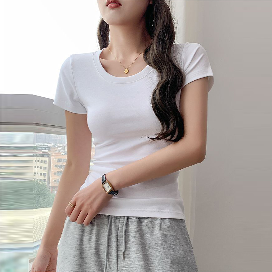 RY357# 韩版 短袖t恤女夏季修身显瘦半袖新款小个子辣妹百搭上衣