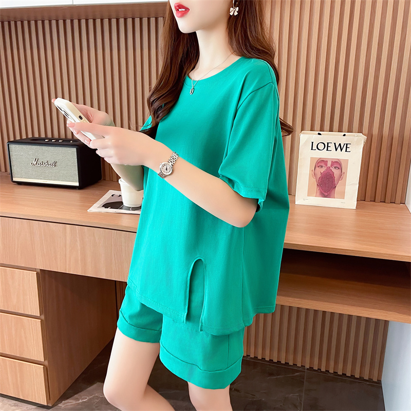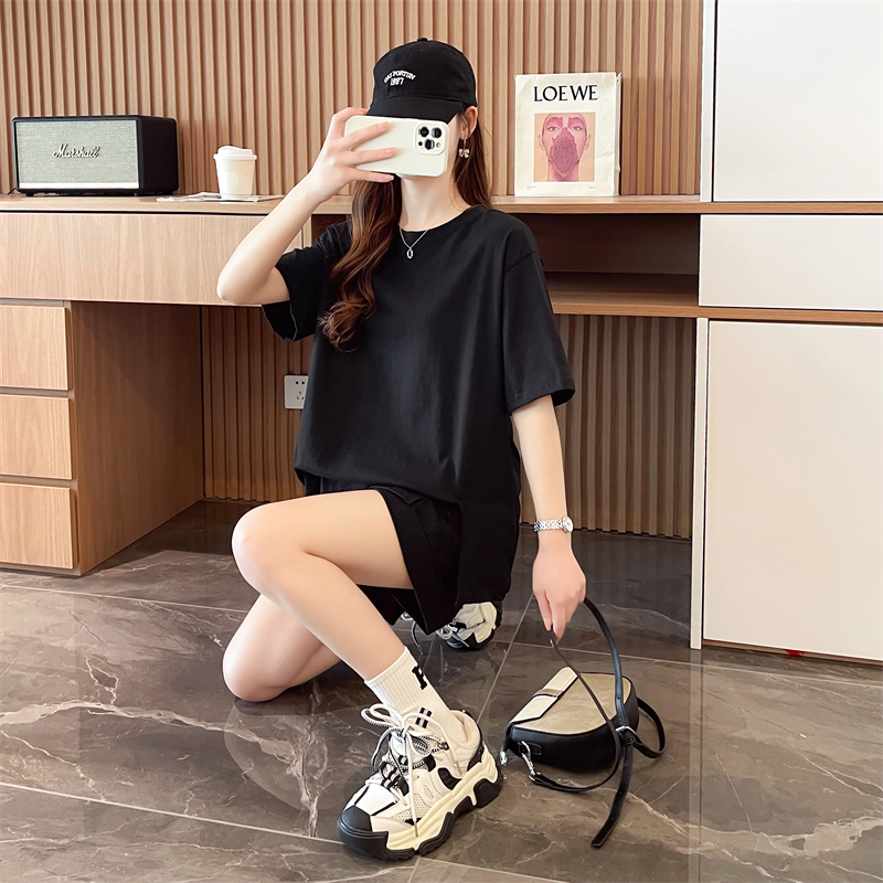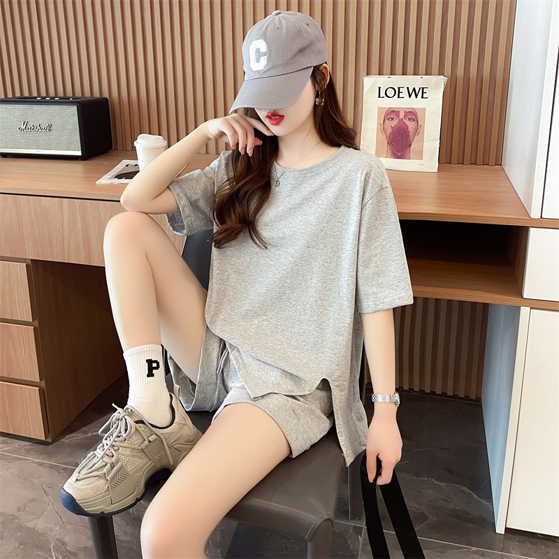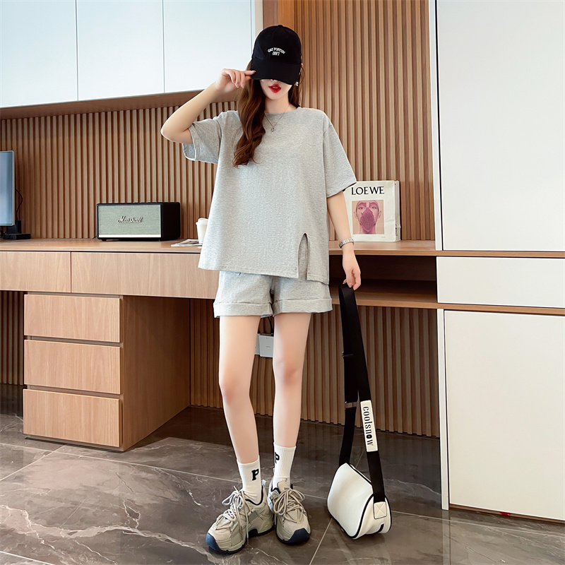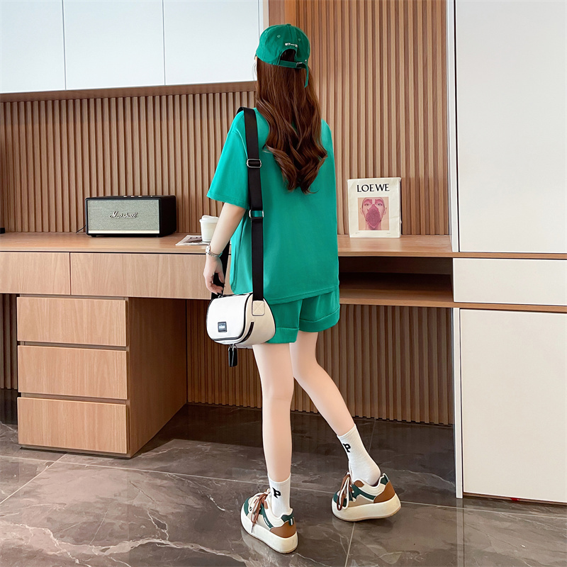 RY385# 纯棉/宽松洋气跑步运动服两件套
