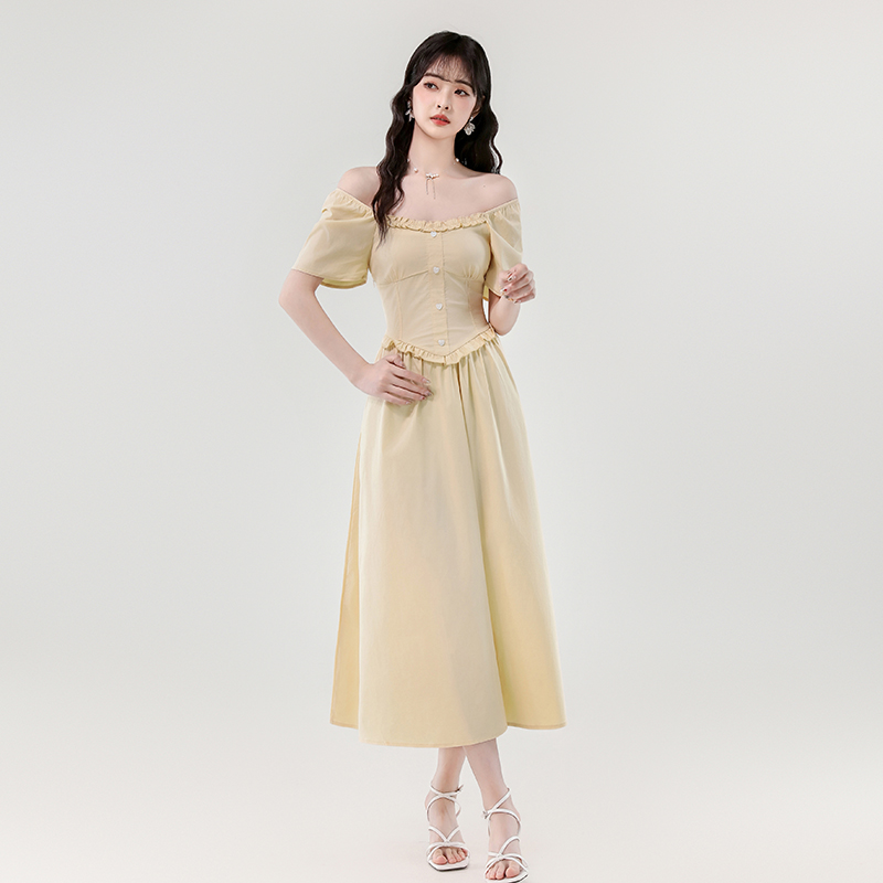 RY389# 实拍2026夏季新款法式温柔小女人气质优雅荷叶边小飞袖长款连...