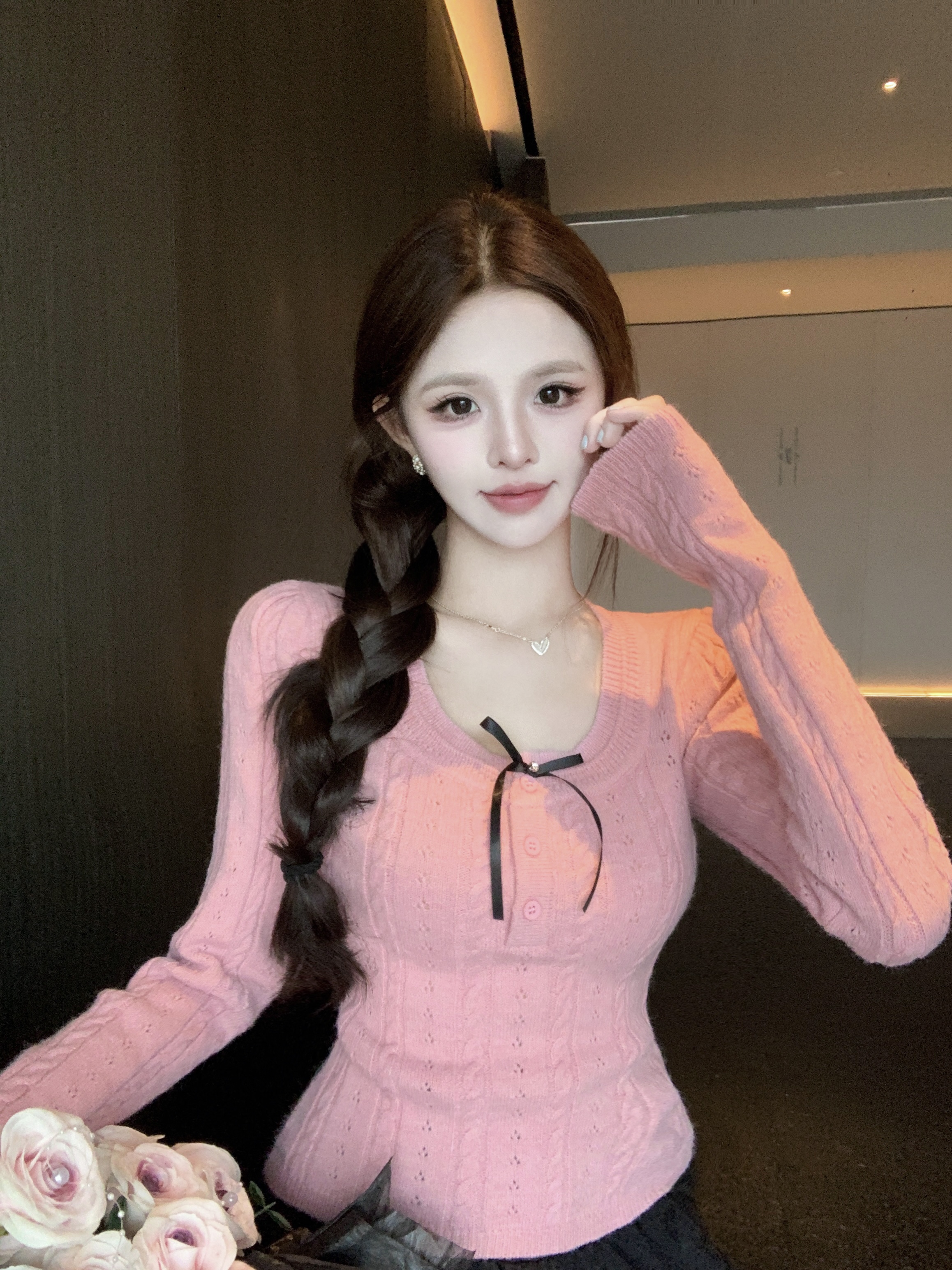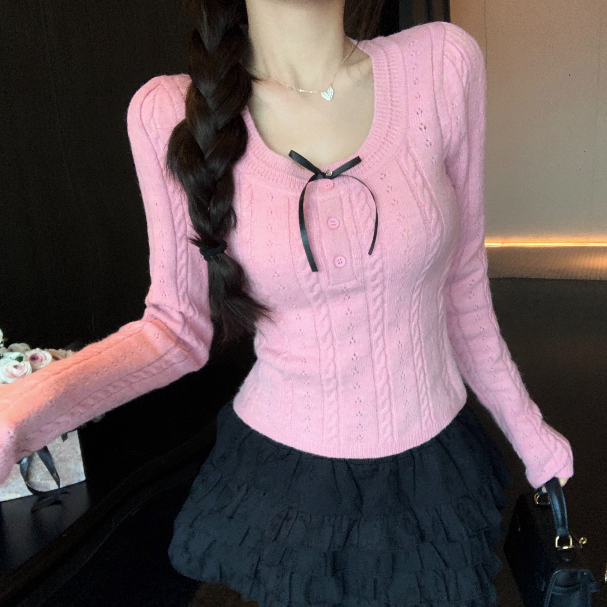 RY409# 春季新款洋气 圆领套头修身显瘦长袖针织衫毛衣女上衣新款