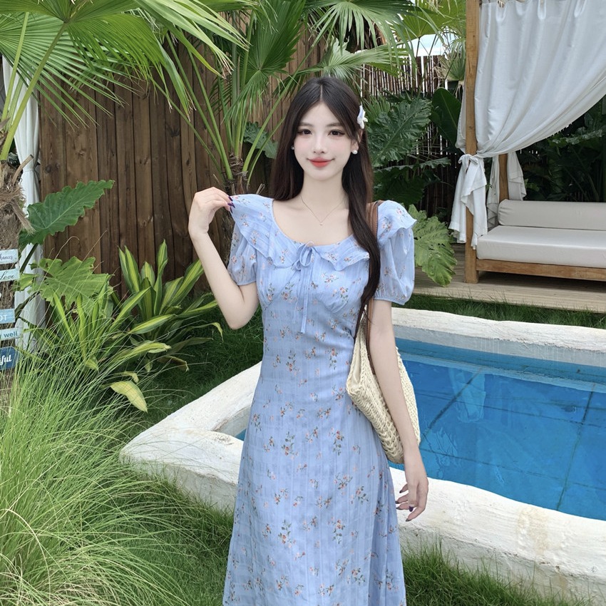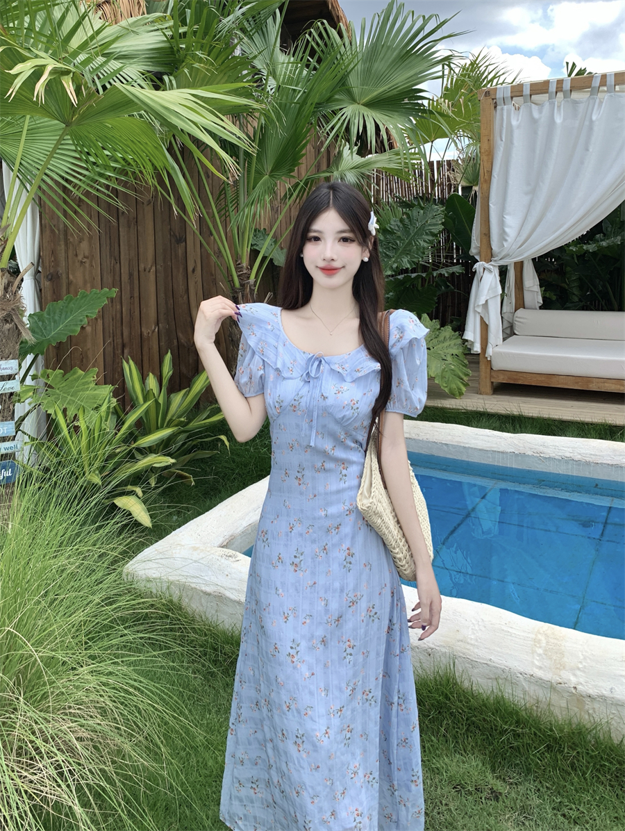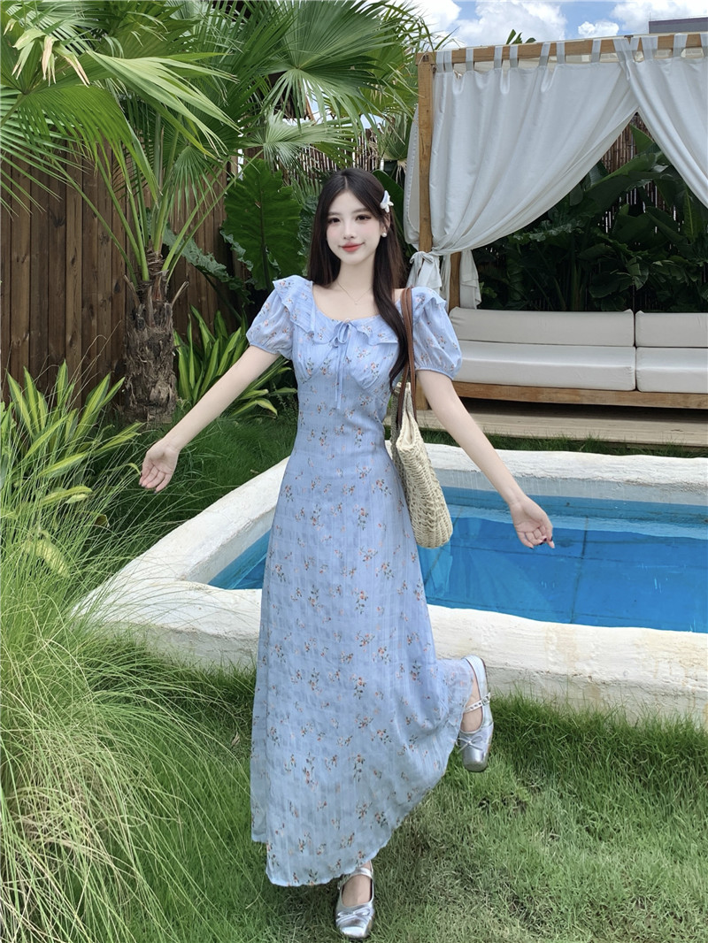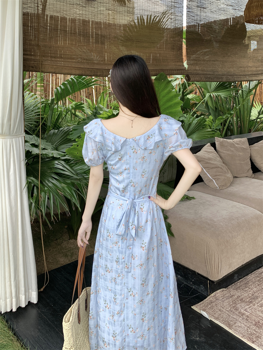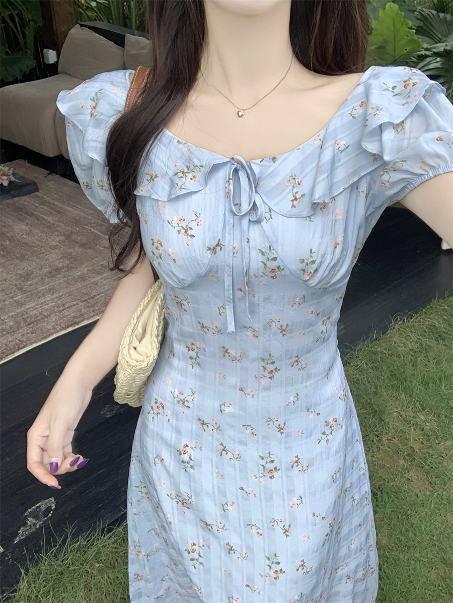 RY414# 大码荷叶领法式高级感连衣裙夏季2026新款爆款气质收腰绝美长裙