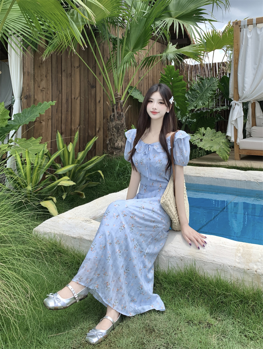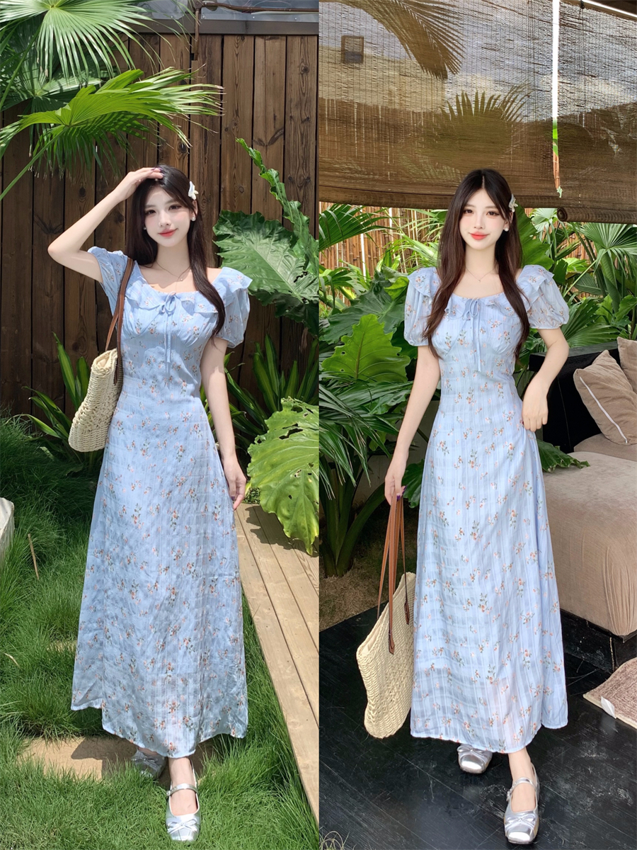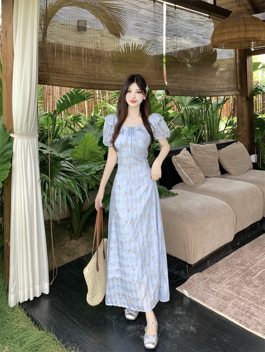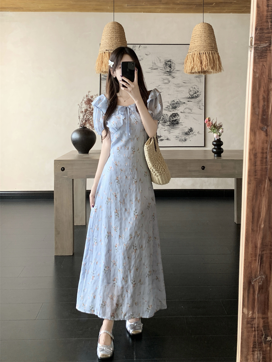 RY414# 大码荷叶领法式高级感连衣裙夏季2026新款爆款气质收腰绝美长裙