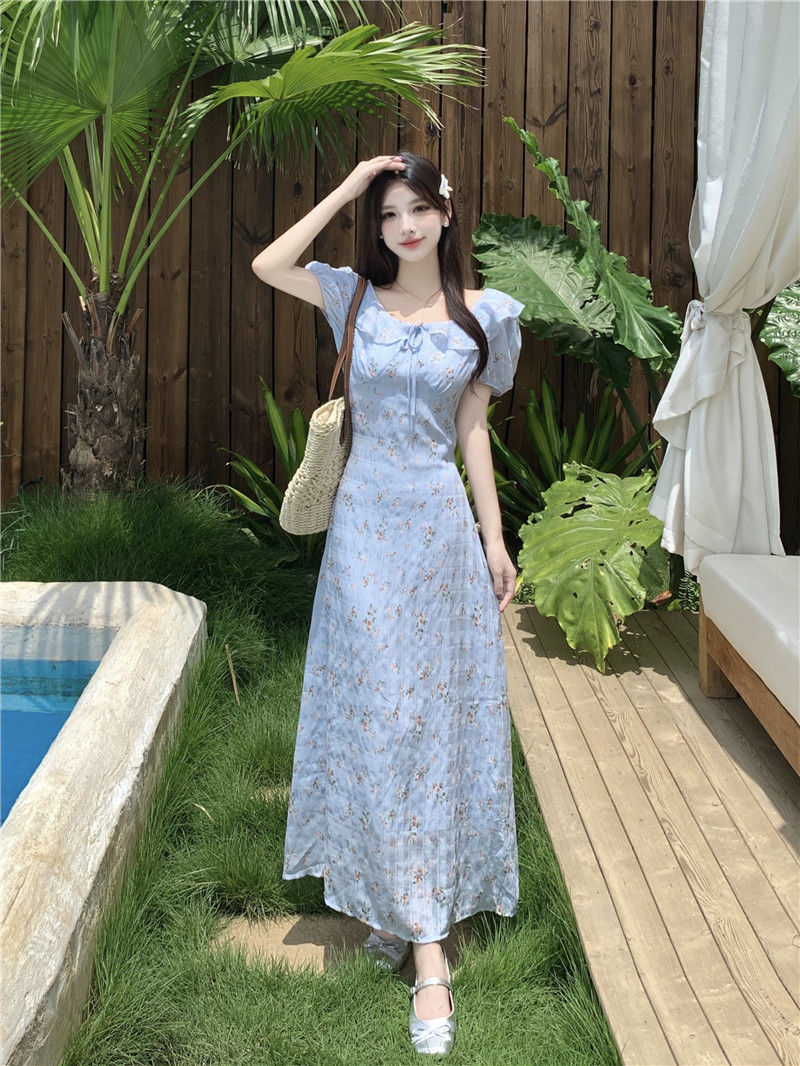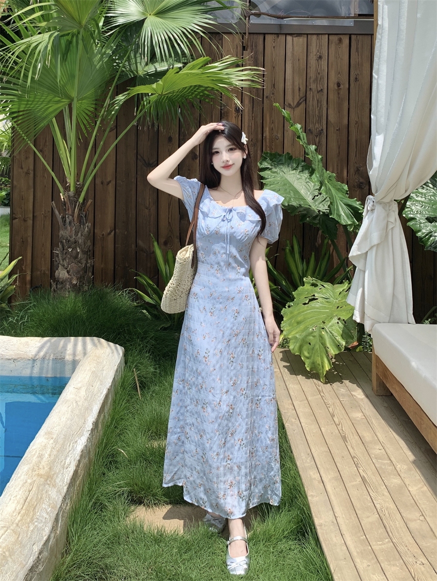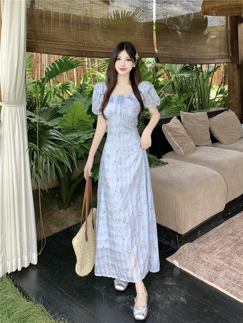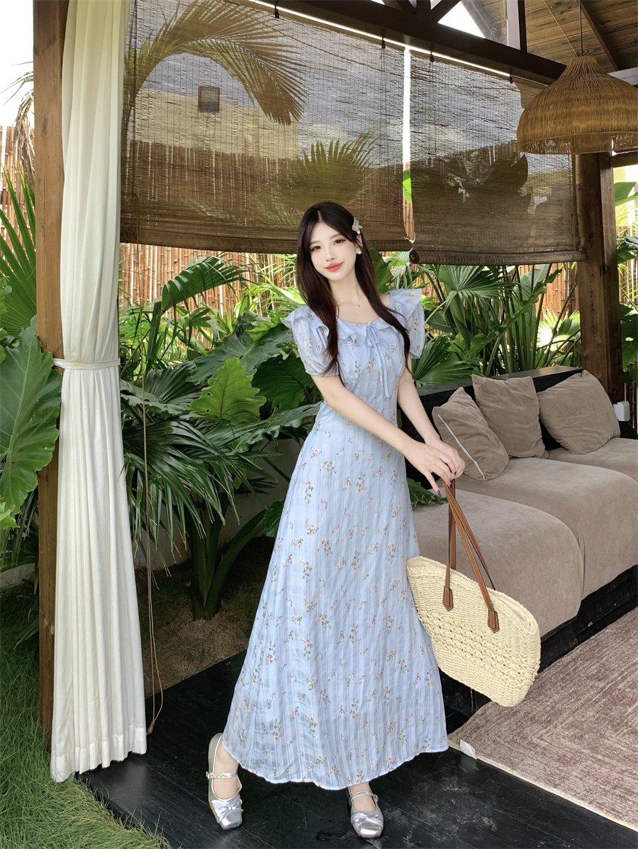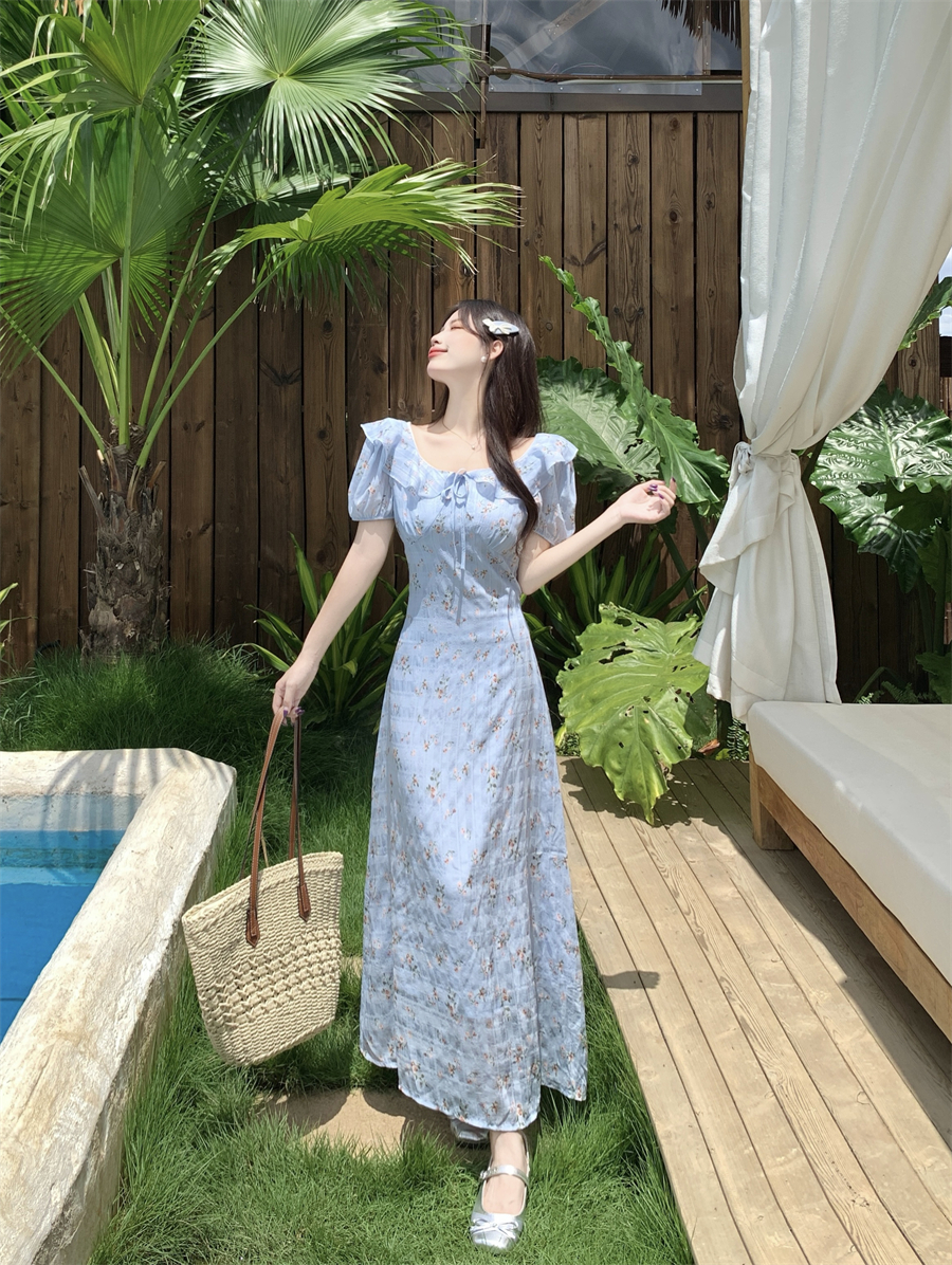 RY414# 大码荷叶领法式高级感连衣裙夏季2026新款爆款气质收腰绝美长裙