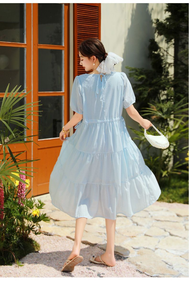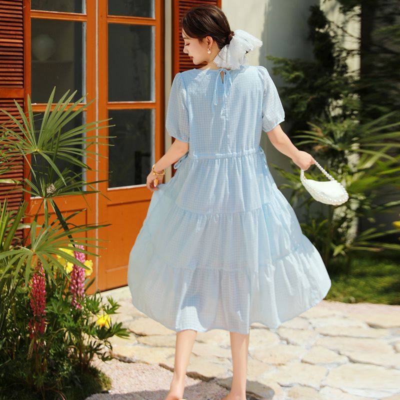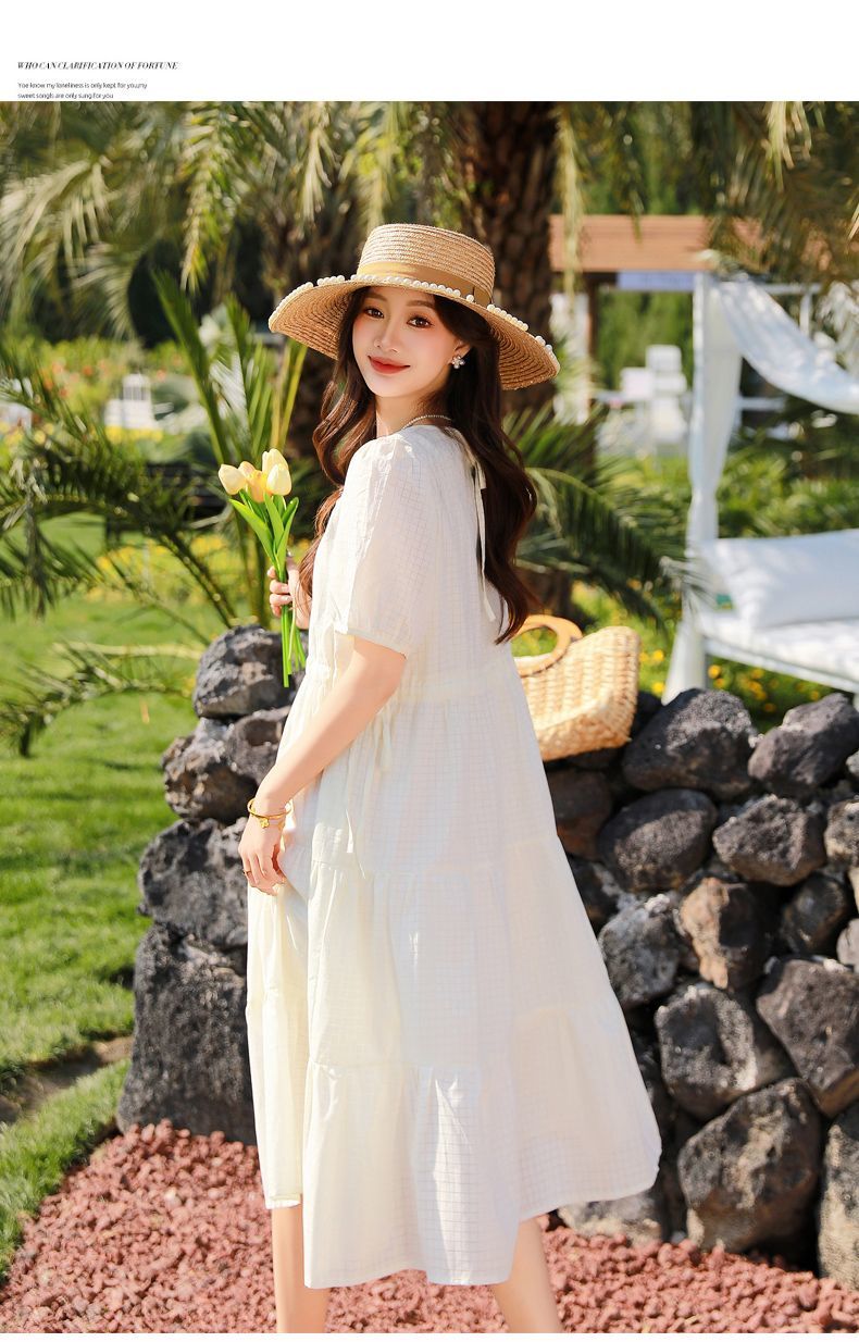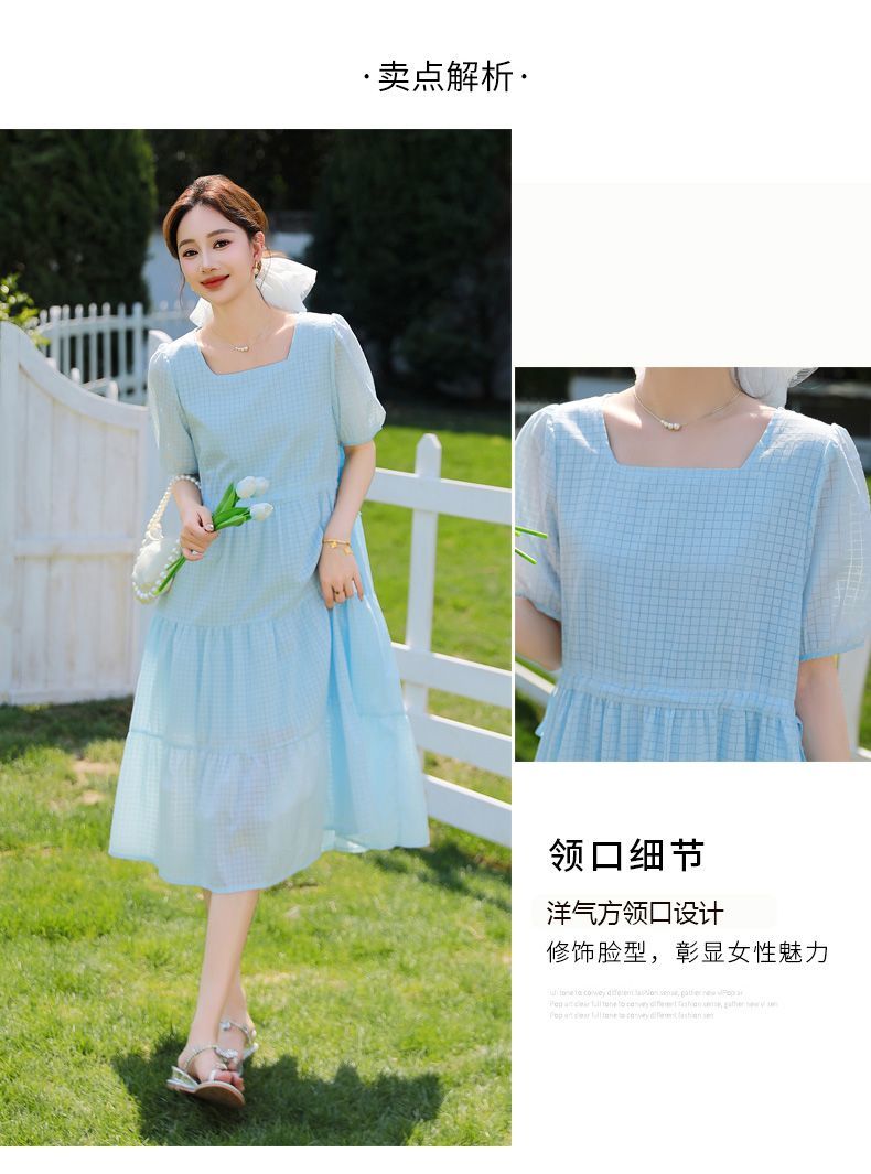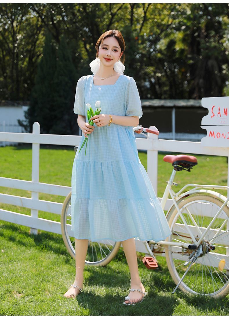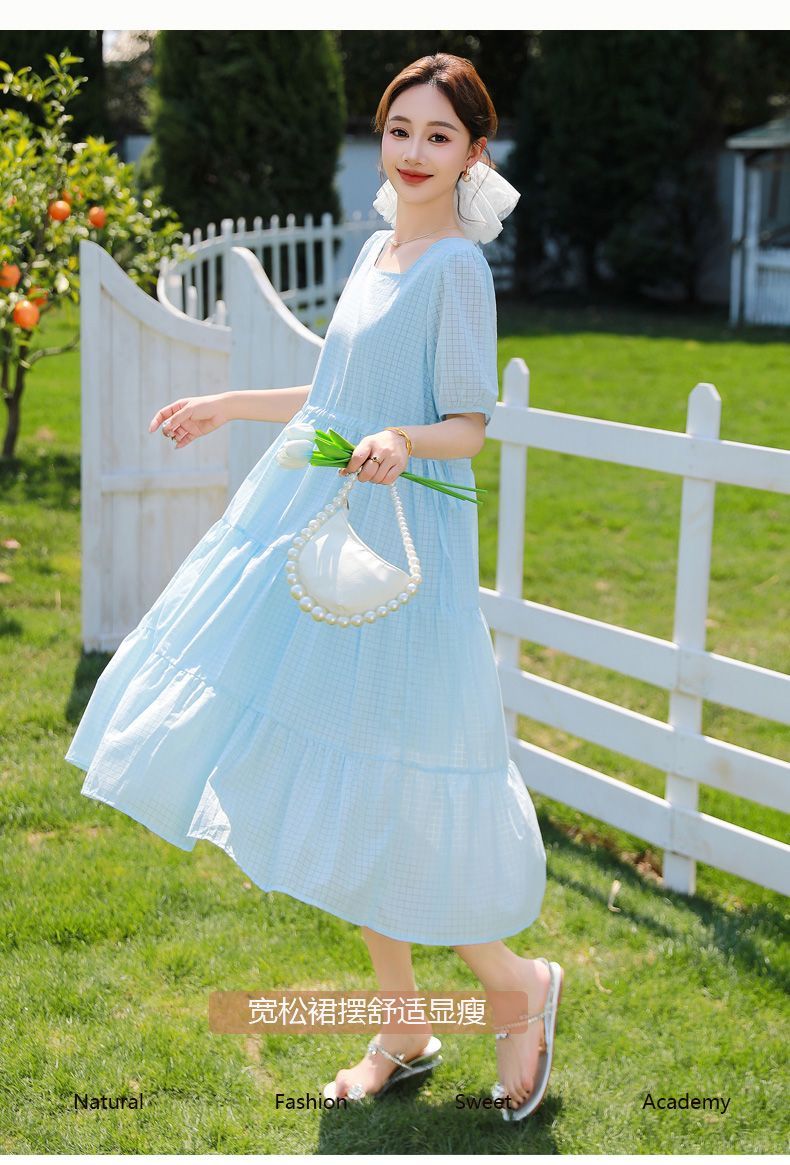 RY420# 夏季2026新款雪纺连衣裙韩版宽松遮肉外穿a字版裙子正肩洋气裙子