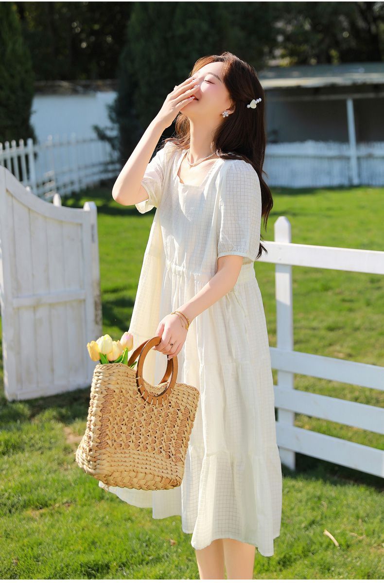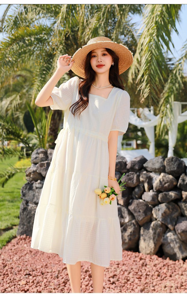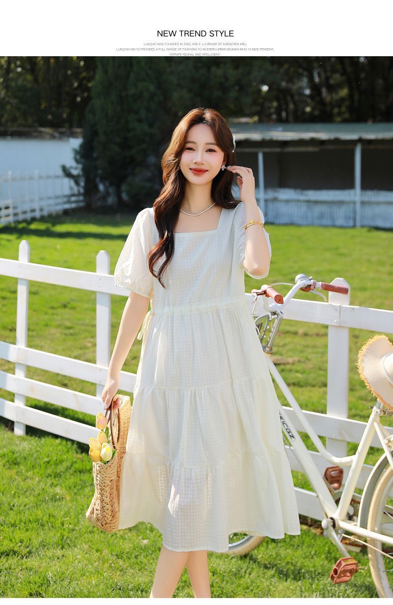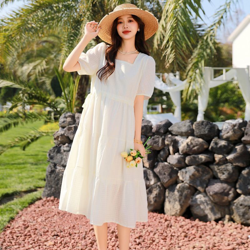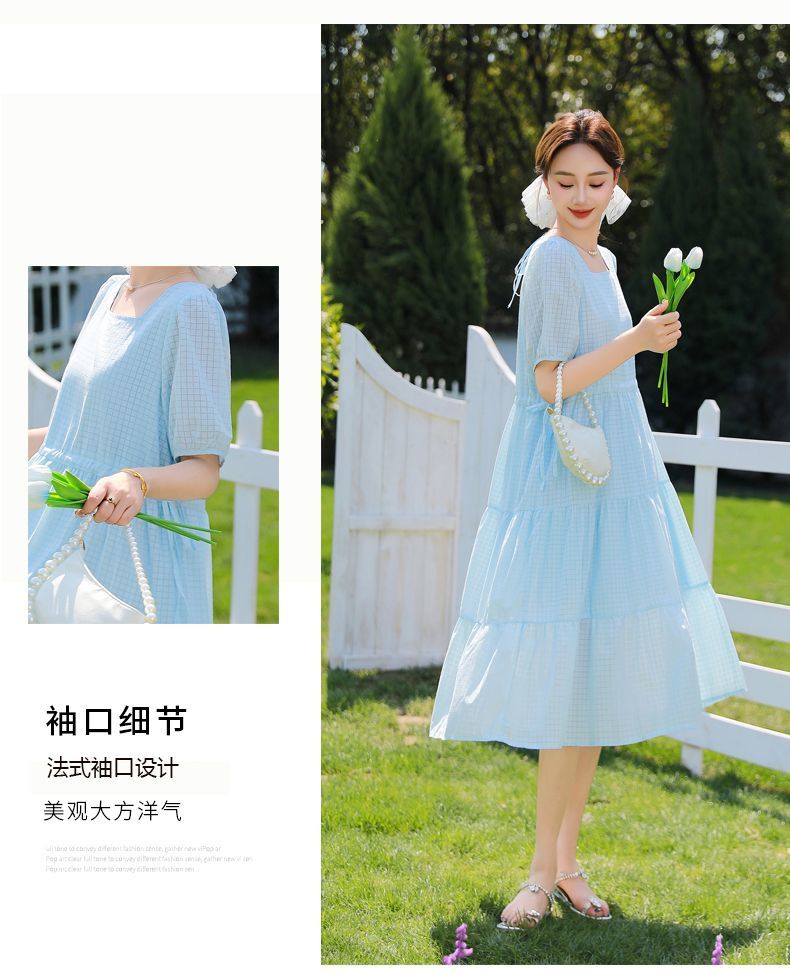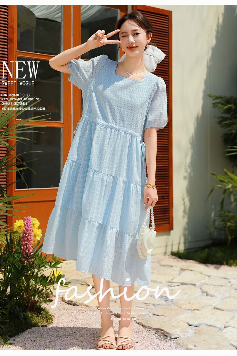 RY420# 夏季2026新款雪纺连衣裙韩版宽松遮肉外穿a字版裙子正肩洋气裙子