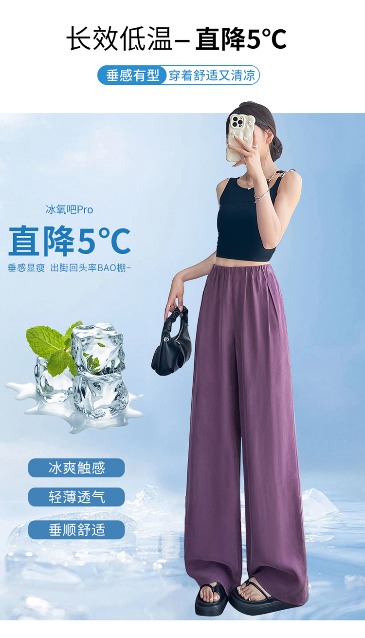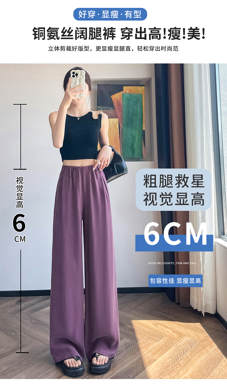 RY460# 实拍2026夏季新款铜氨丝冰丝裤高腰薄款高腰薄款休闲阔腿裤