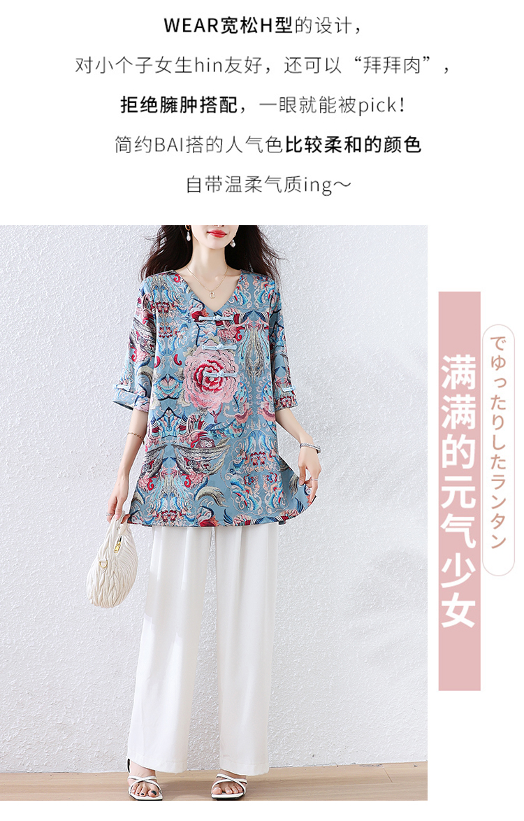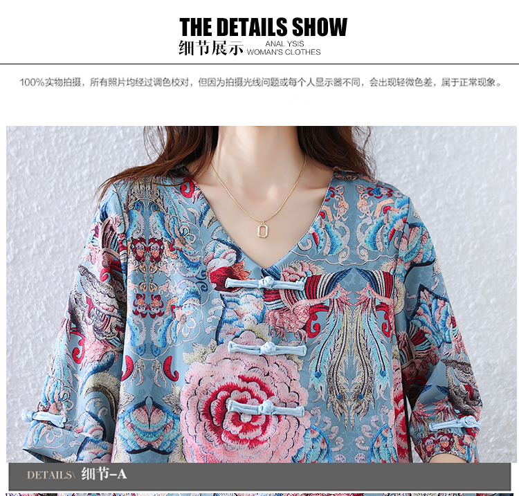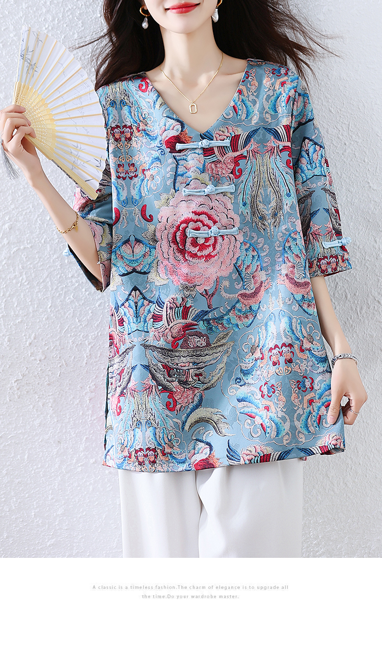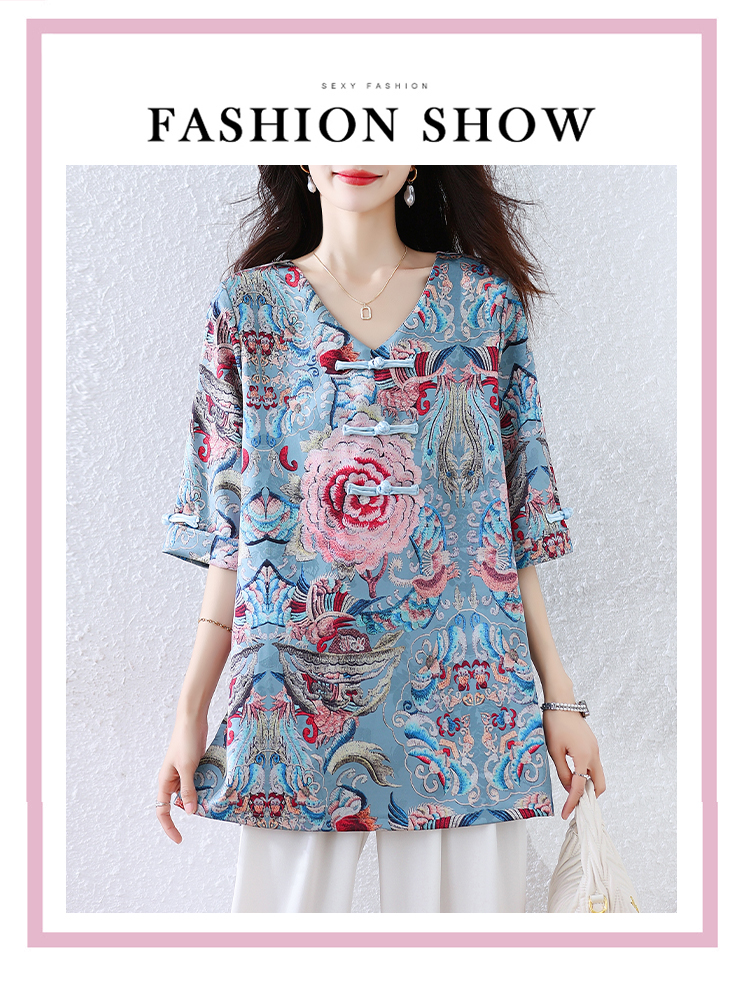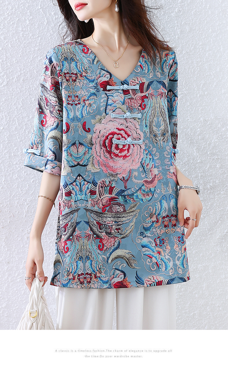 RY464# 实拍大码2026夏季气质百搭新中式盘扣提花复古遮肉短袖衬衫T恤女