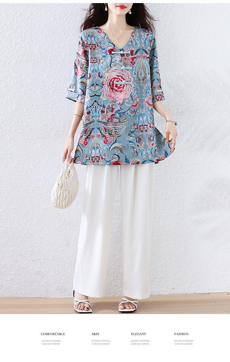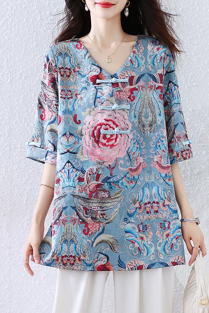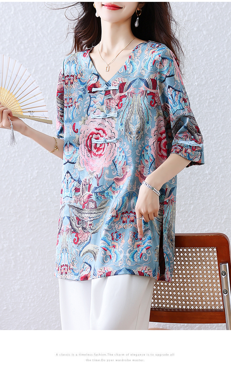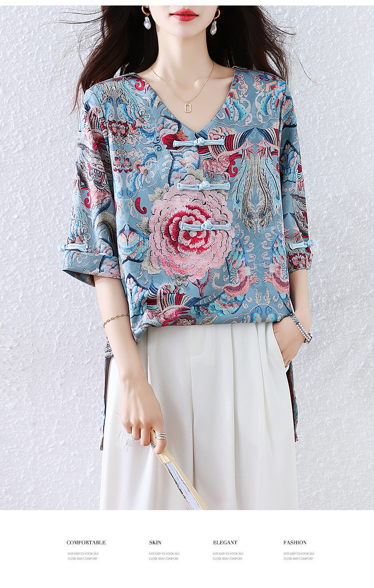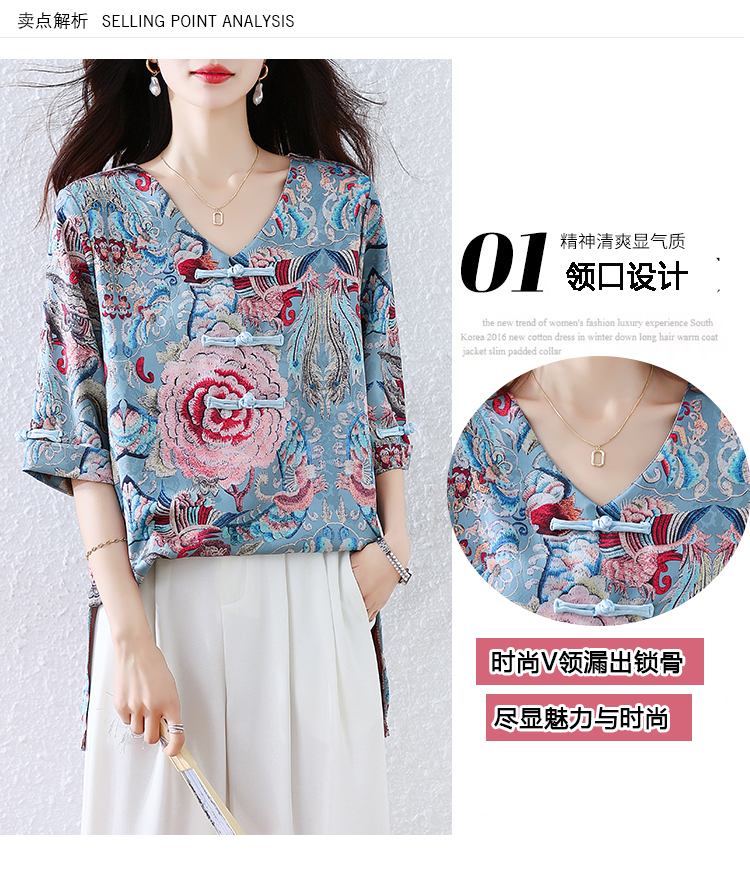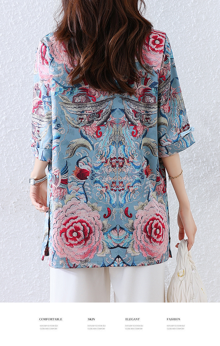 RY464# 实拍大码2026夏季气质百搭新中式盘扣提花复古遮肉短袖衬衫T恤女