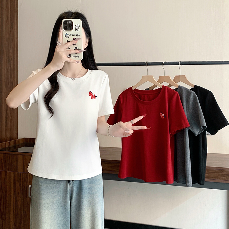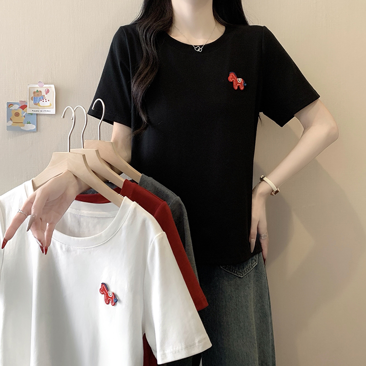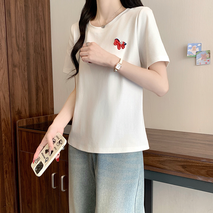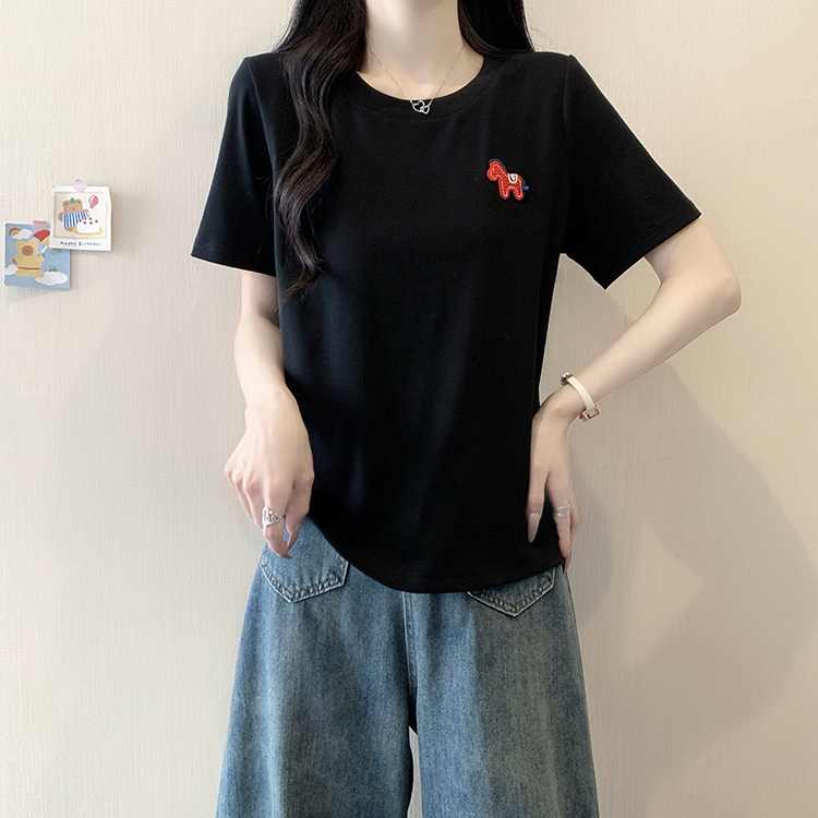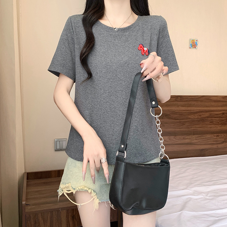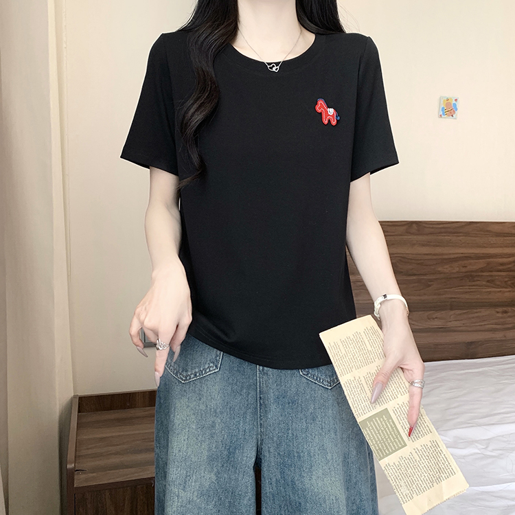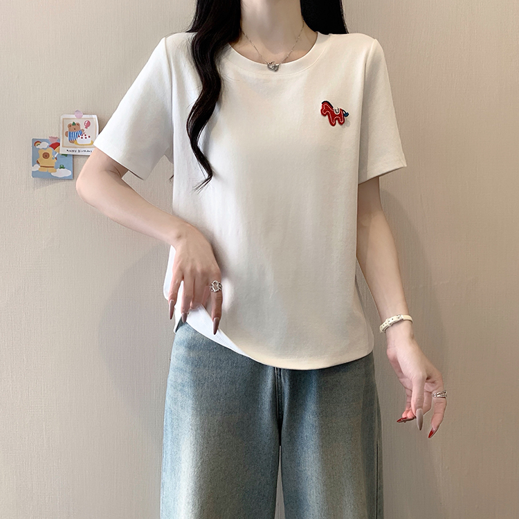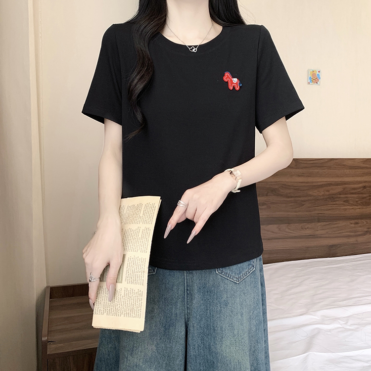 RY469# 实拍2026夏装新款胖mm大码女休闲百搭贴标红色小马设计感短袖T恤