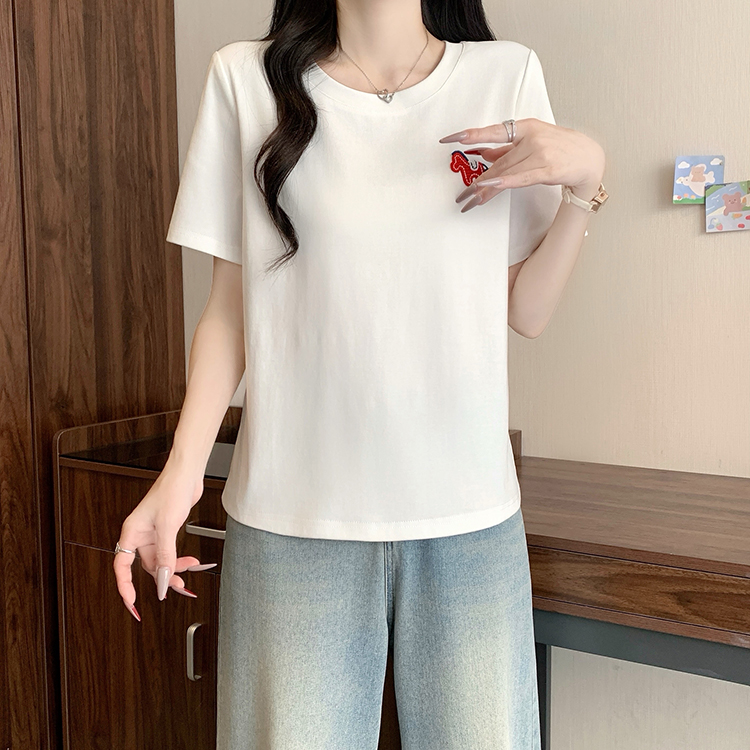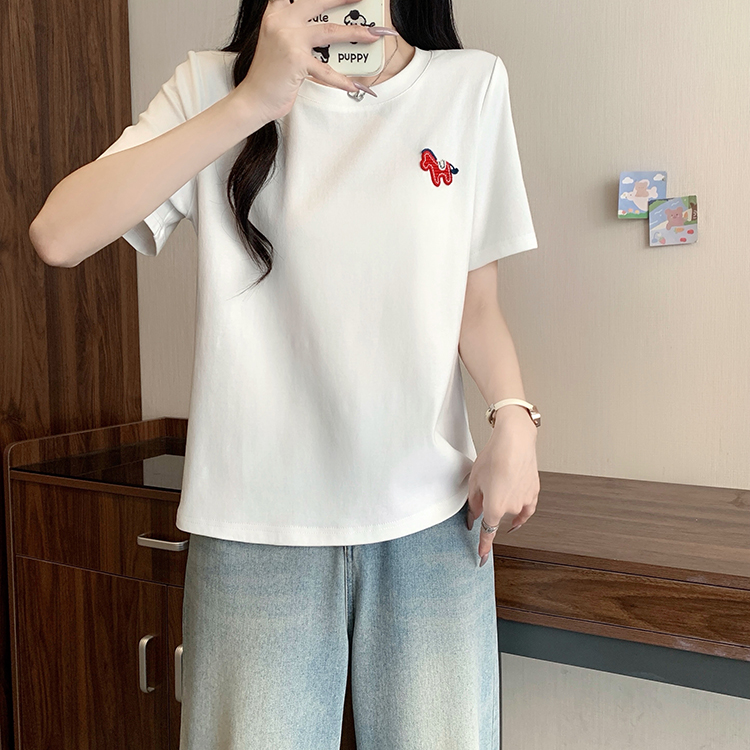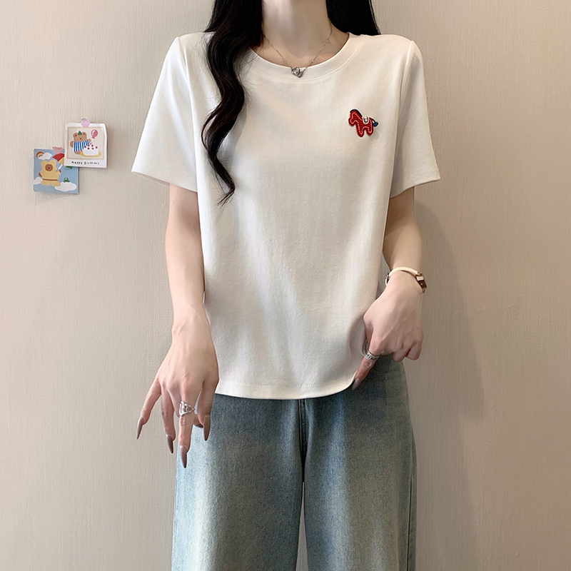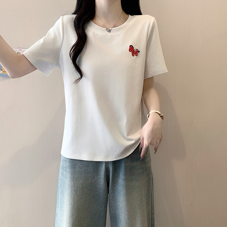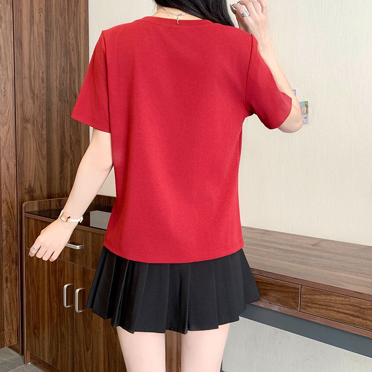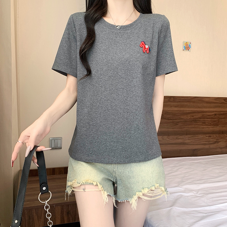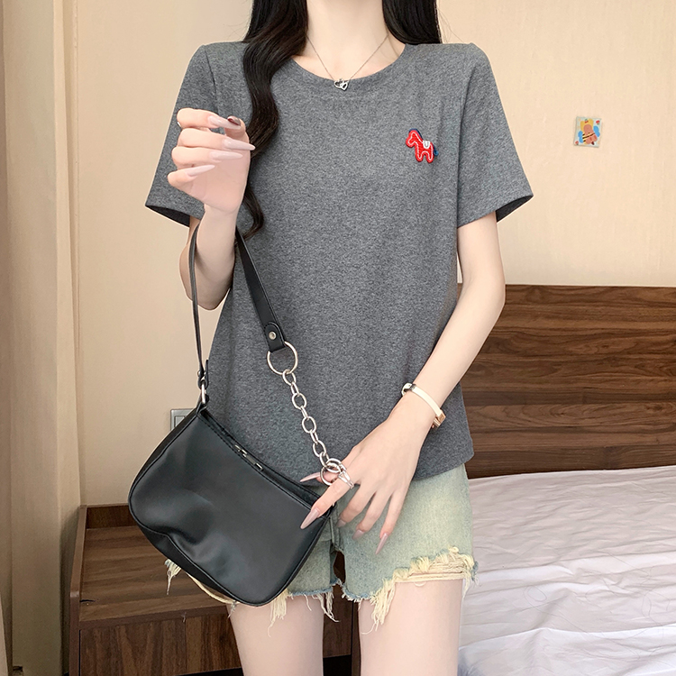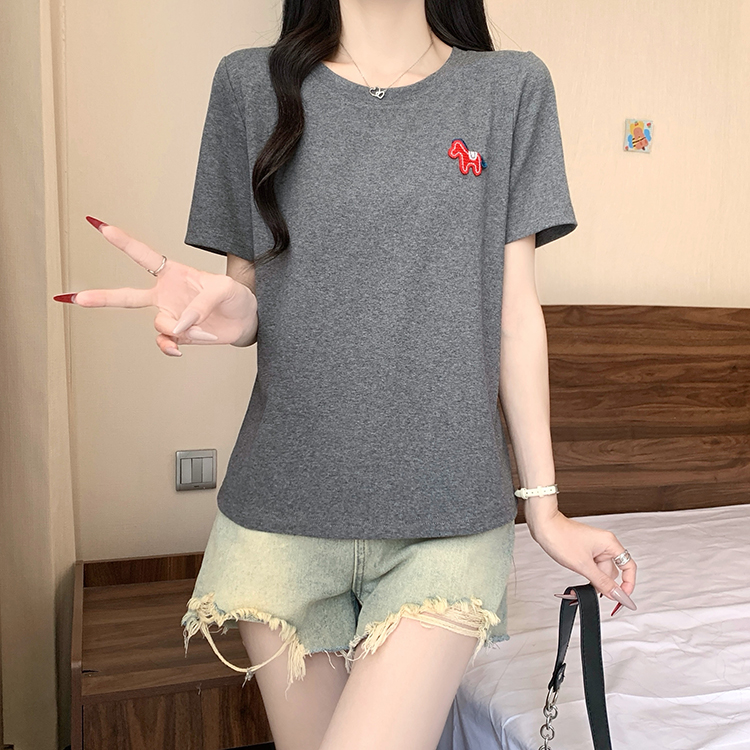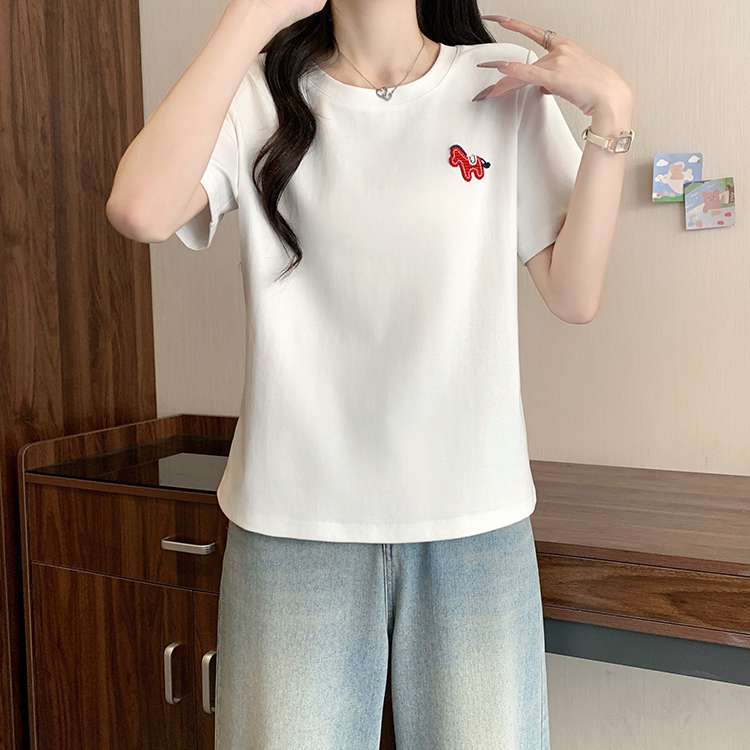 RY469# 实拍2026夏装新款胖mm大码女休闲百搭贴标红色小马设计感短袖T恤