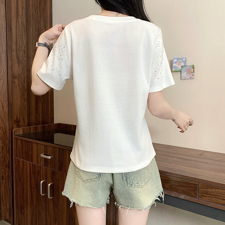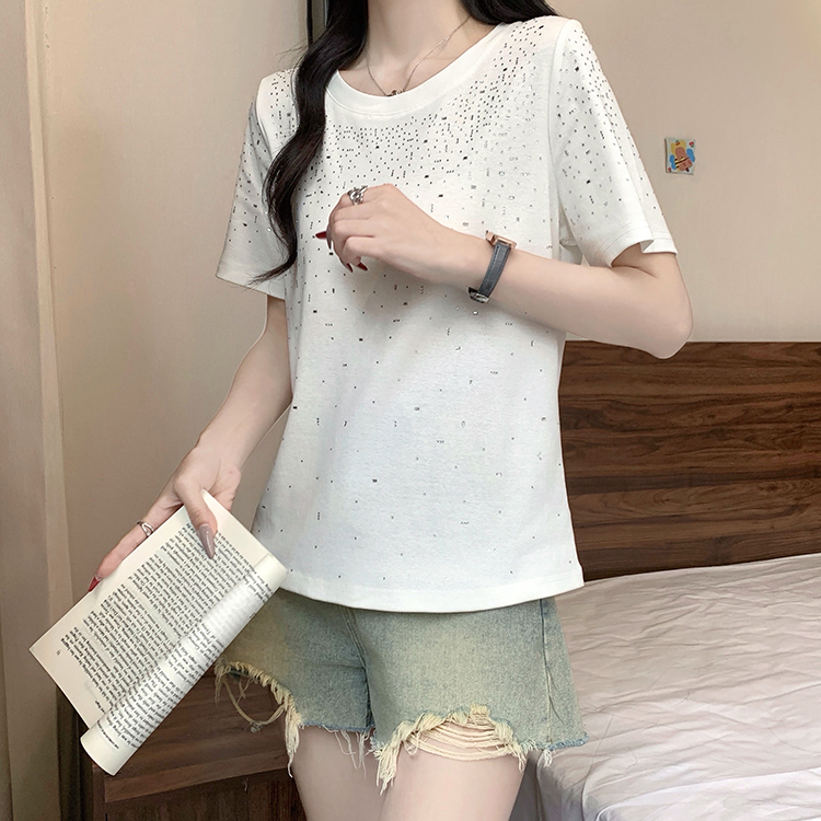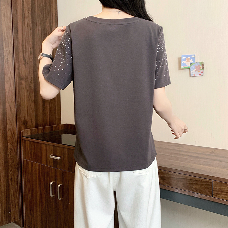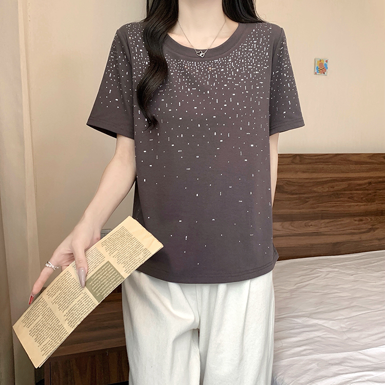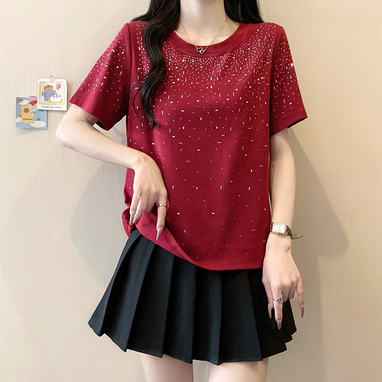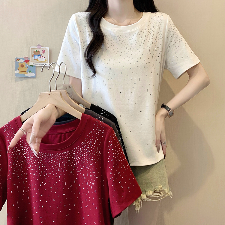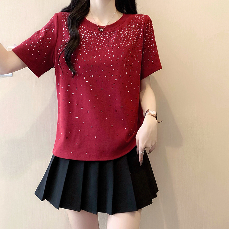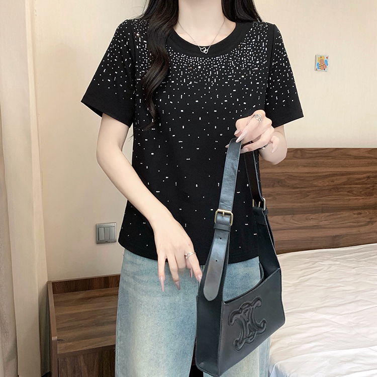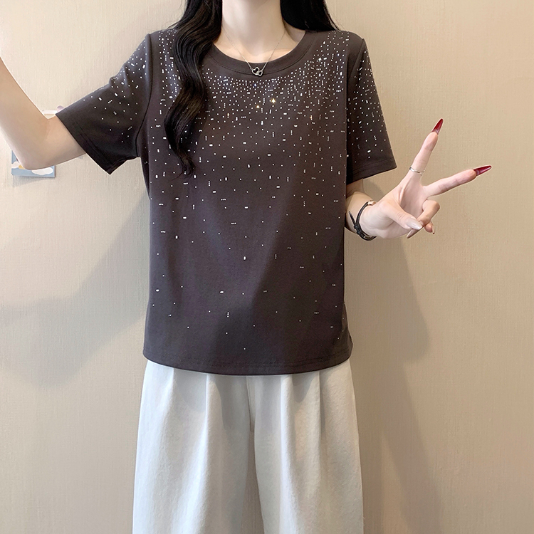 RY472# 实拍2026夏装新款胖mm大码女别致重工烫钻亮闪闪圆领正肩短袖T恤