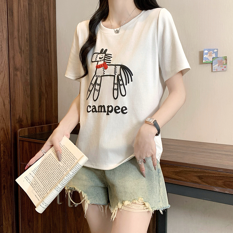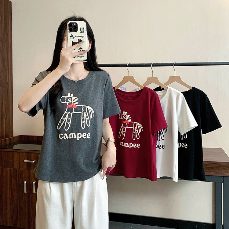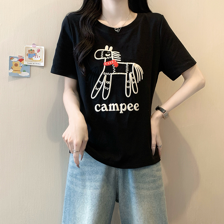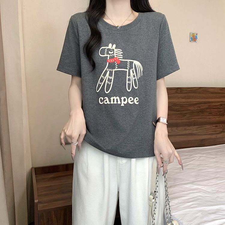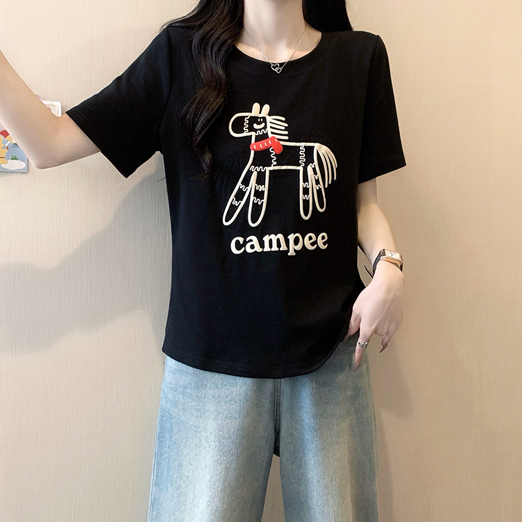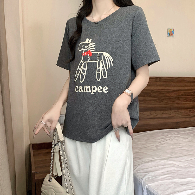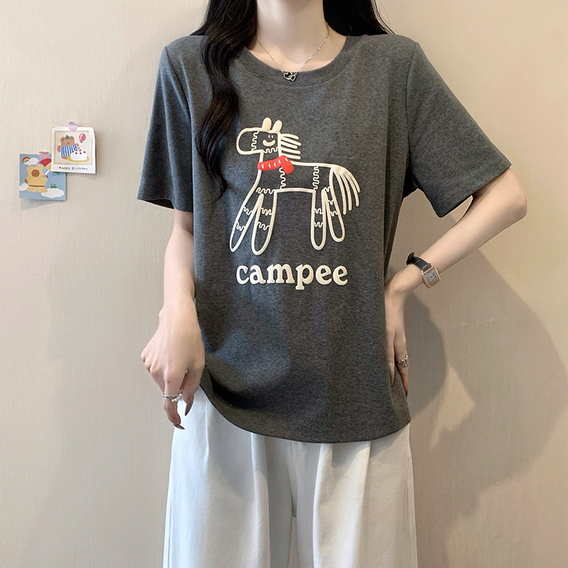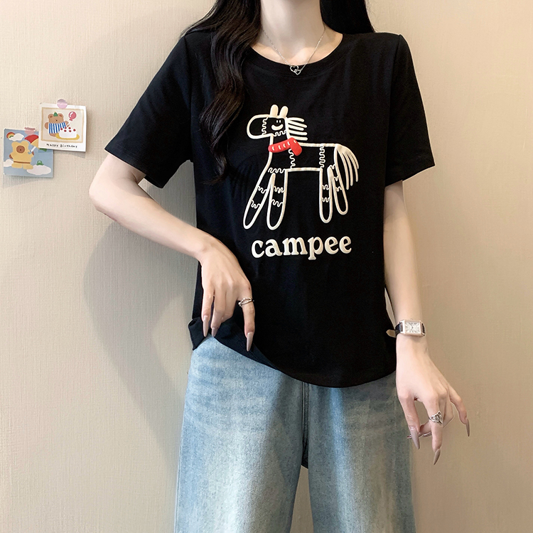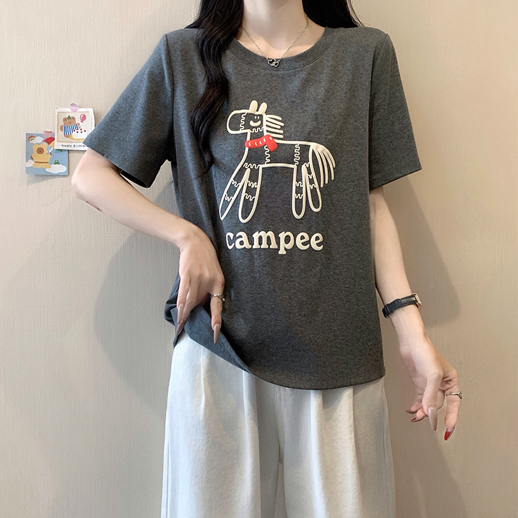 RY474# 实拍2026春夏新款胖mm大码女休闲百搭印花卡通圆领正肩短袖T恤