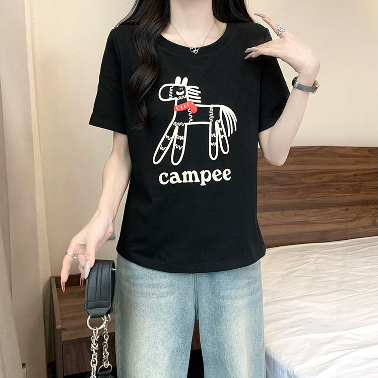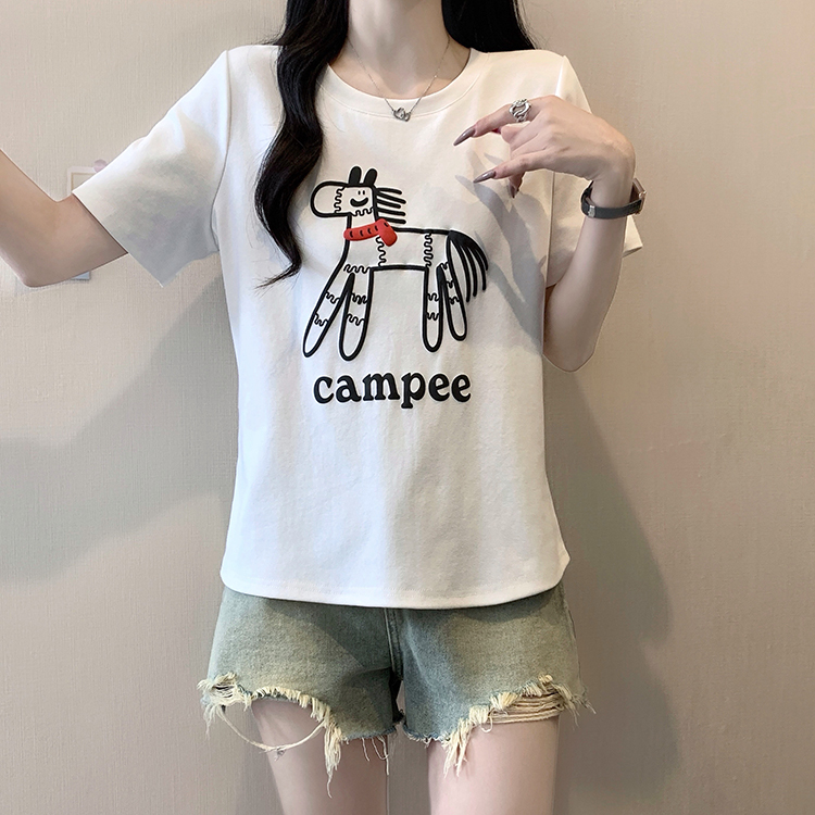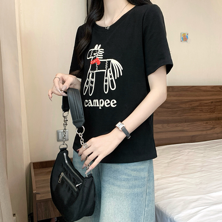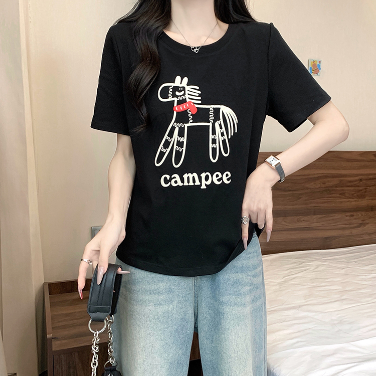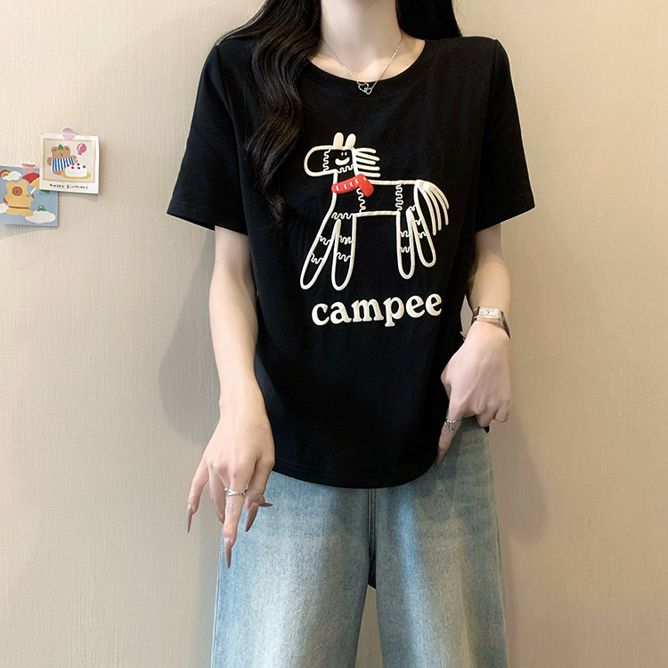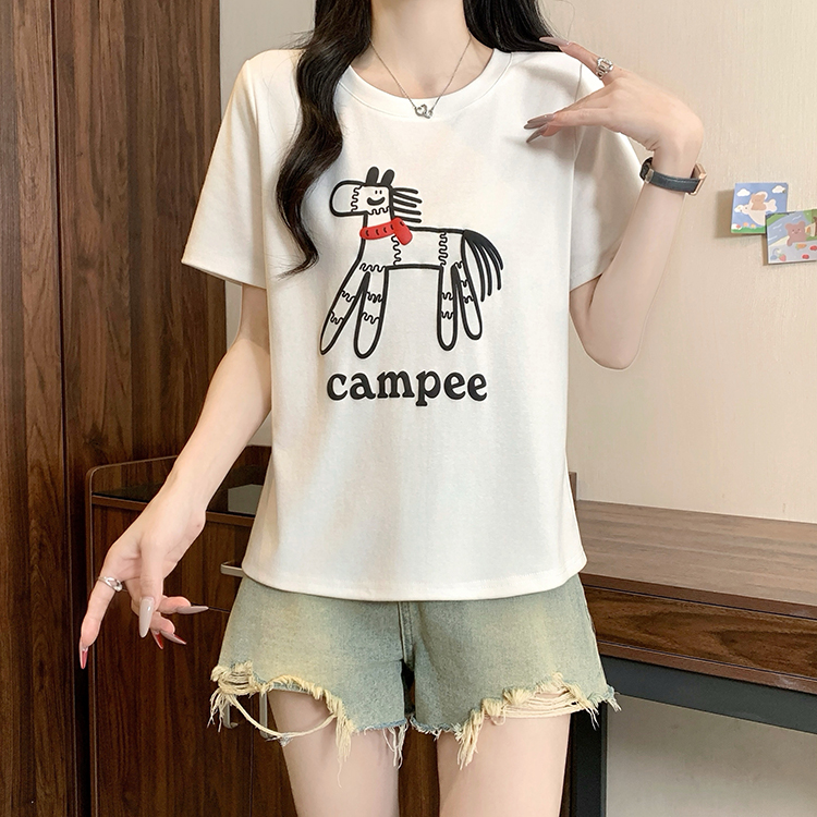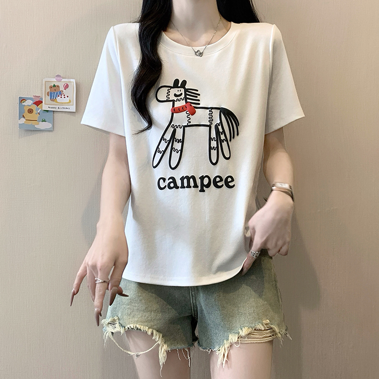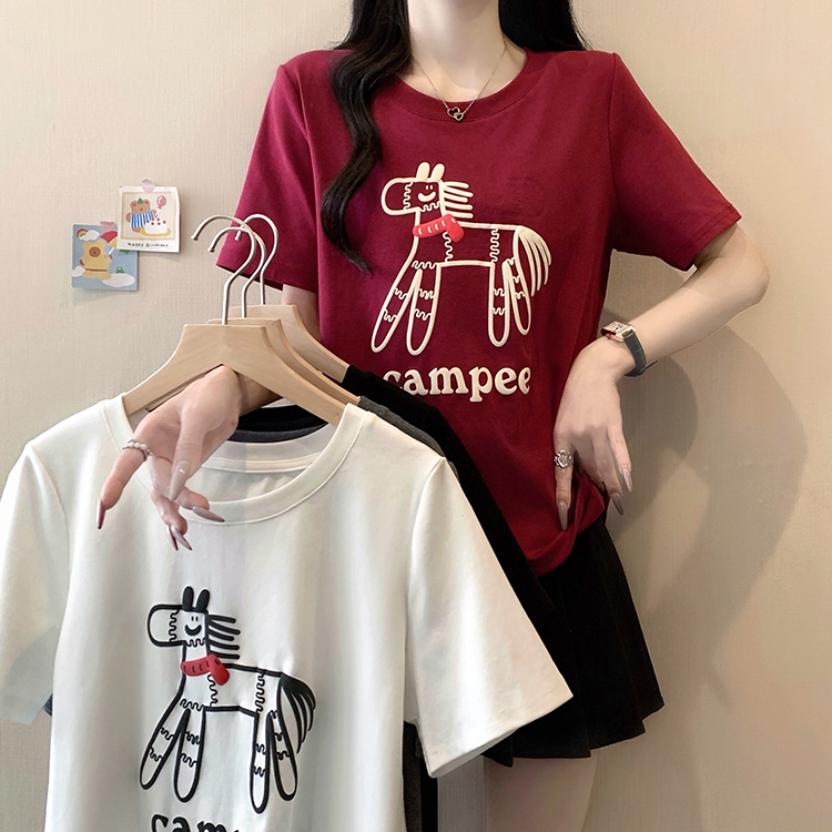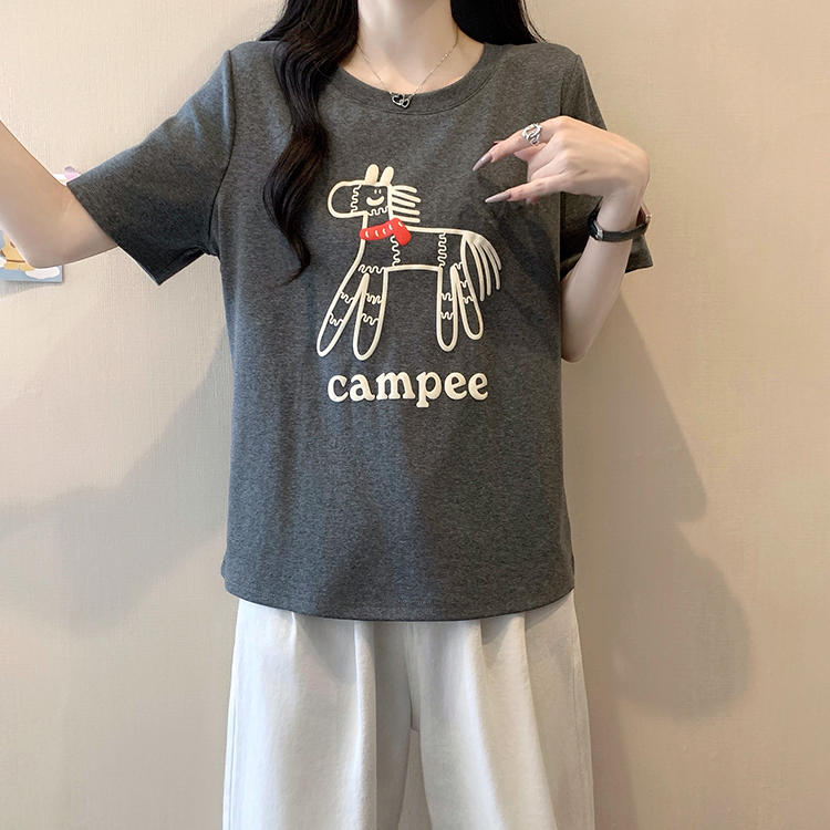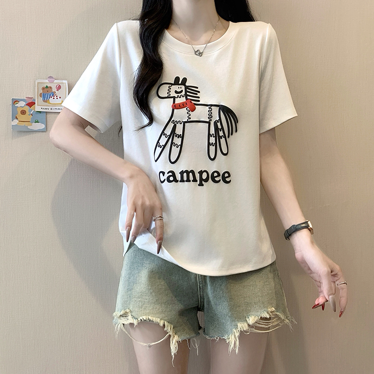 RY474# 实拍2026春夏新款胖mm大码女休闲百搭印花卡通圆领正肩短袖T恤