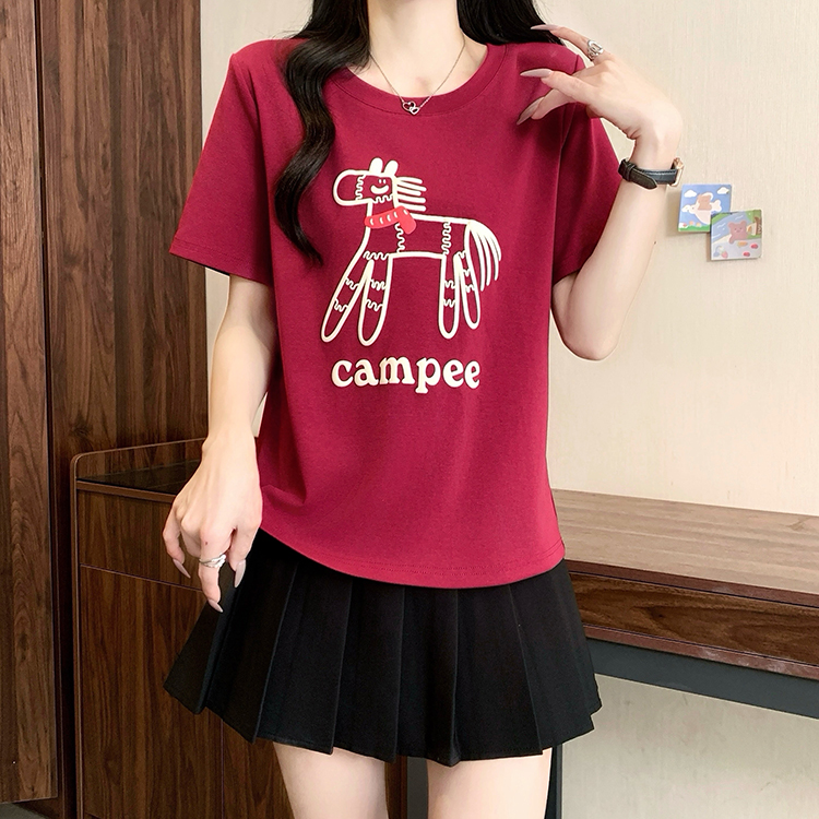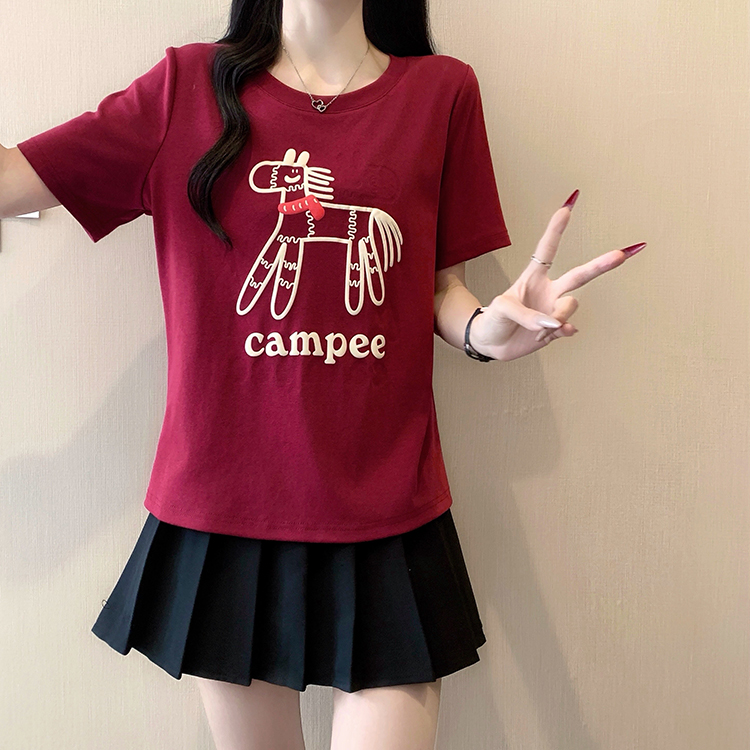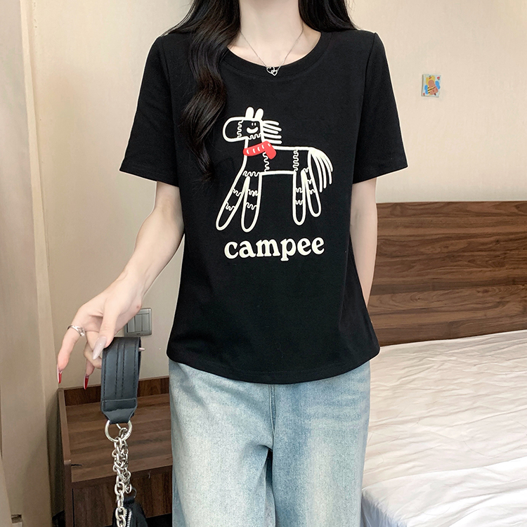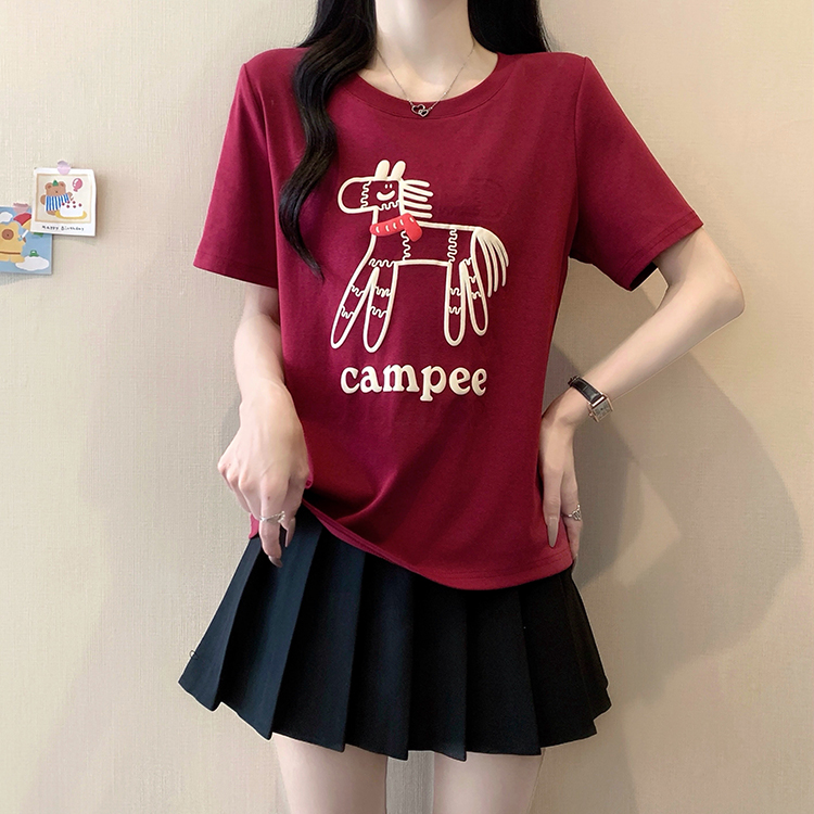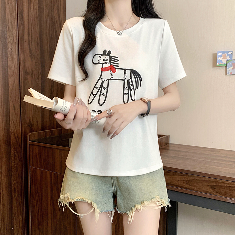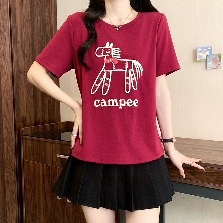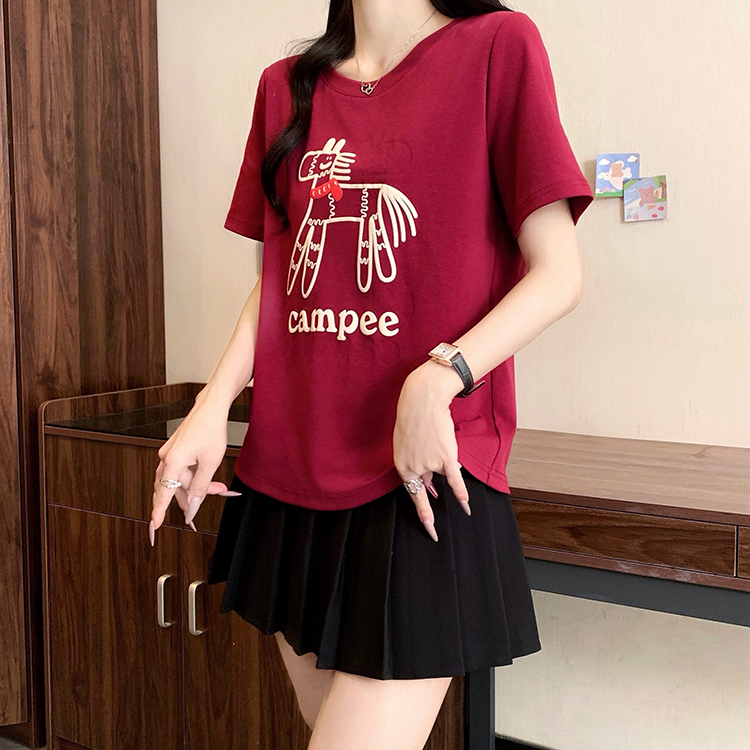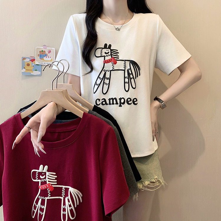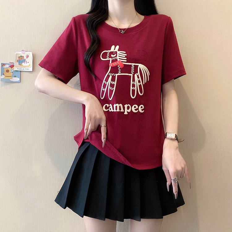 RY474# 实拍2026春夏新款胖mm大码女休闲百搭印花卡通圆领正肩短袖T恤